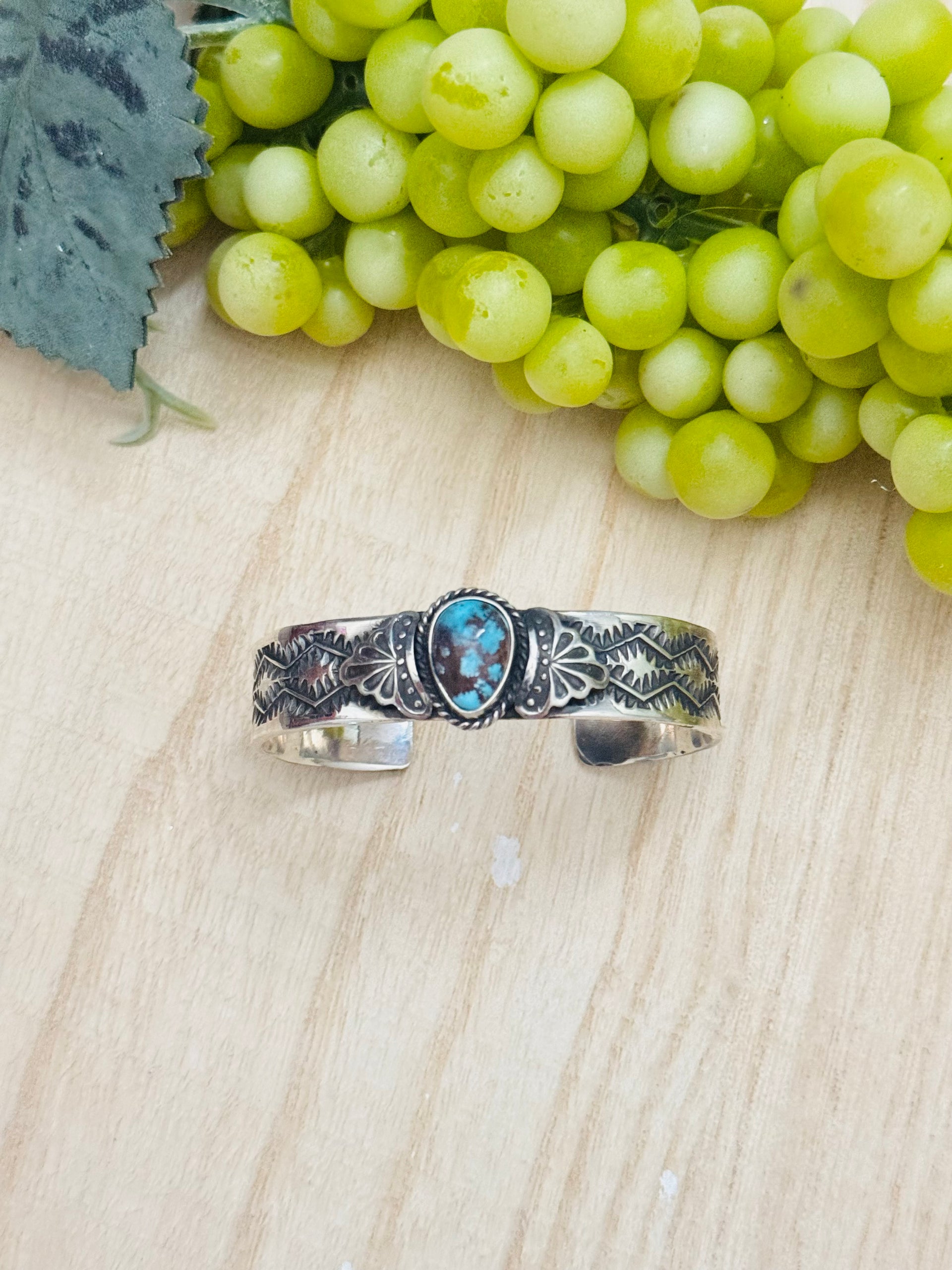 Navajo Made Sonoran Mountain Turquoise & Sterling Silver Cuff Bracelet