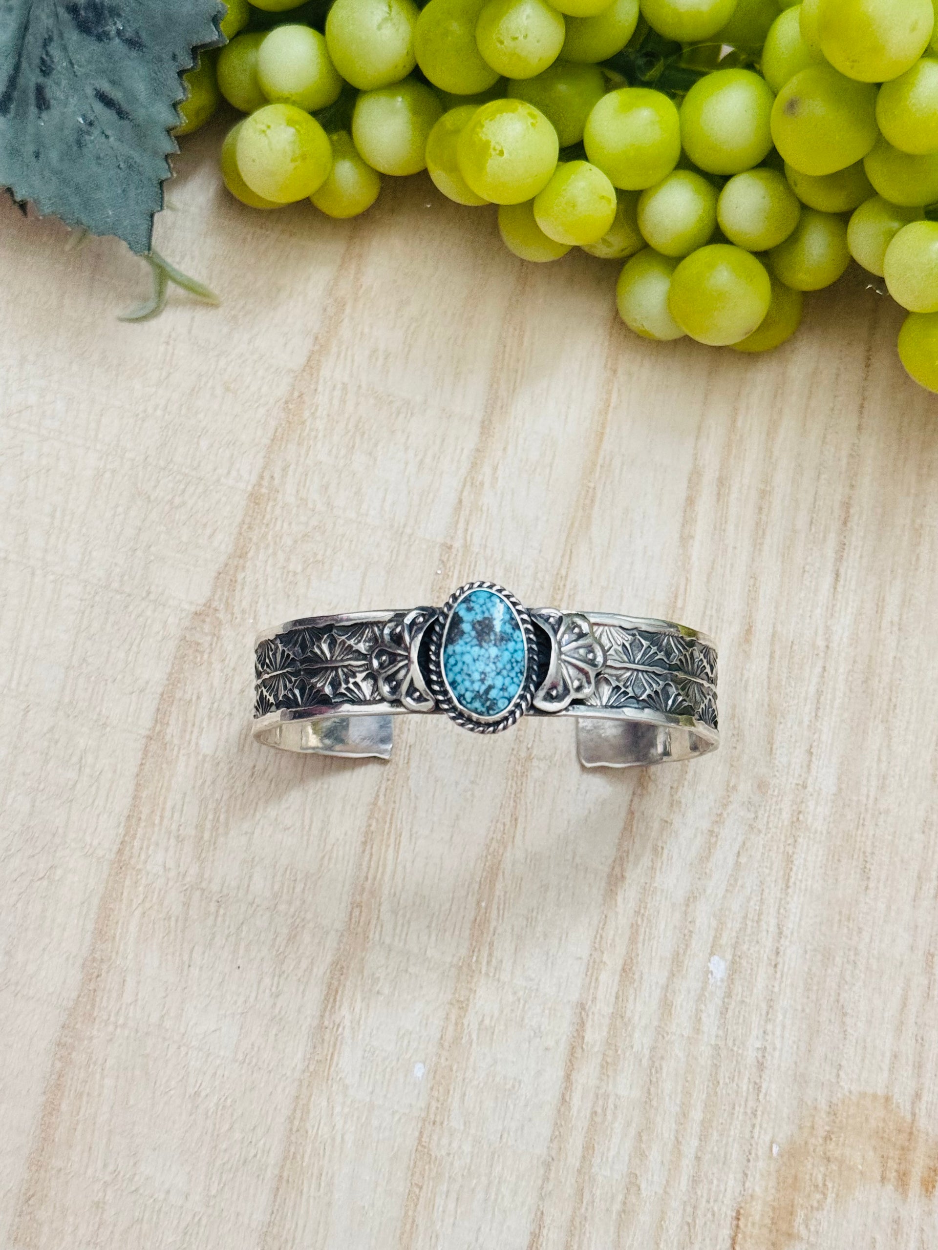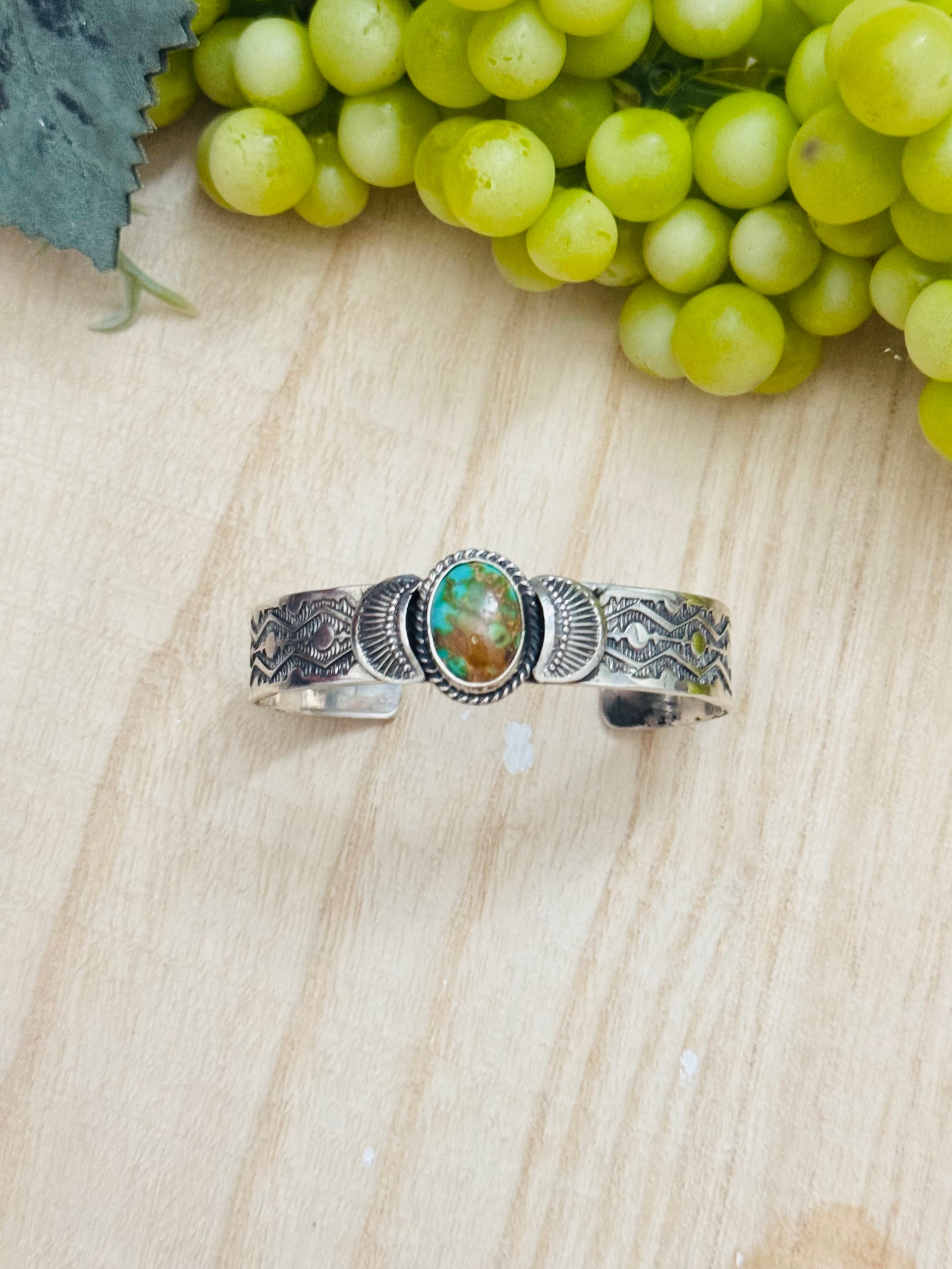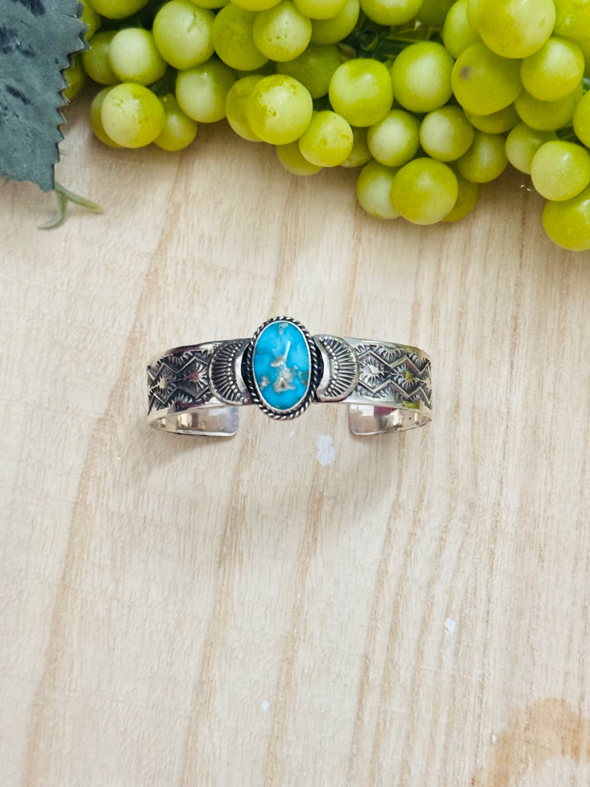 Navajo Made Kingman Turquoise & Sterling Silver Cuff Bracelet