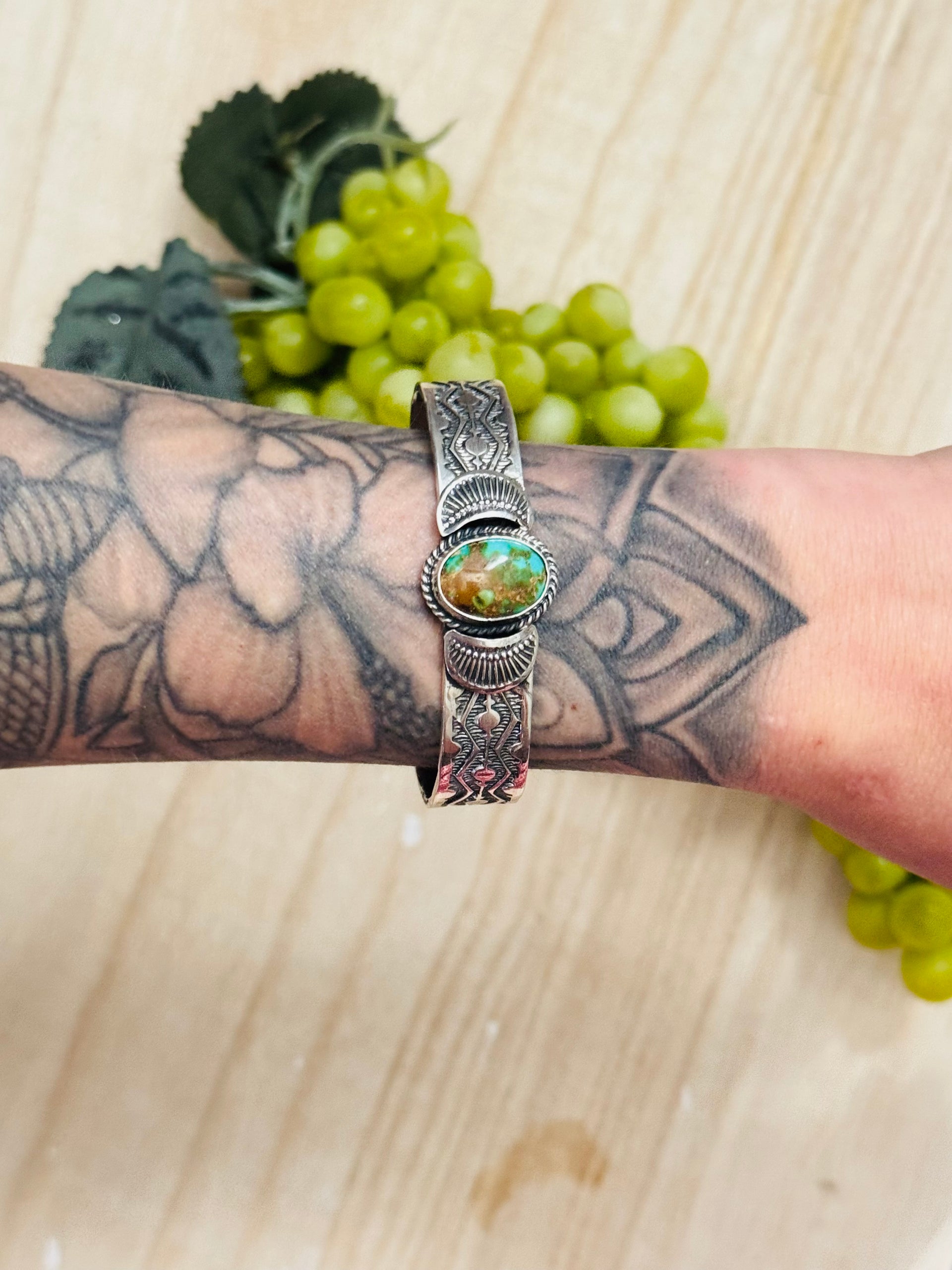 Bobby Johnson Sonoran Gold Turquoise & Sterling Silver Cluster Cuff Bracelet