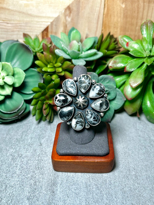 Rena Shelly White Buffalo & Sterling Silver Adjustable Ring