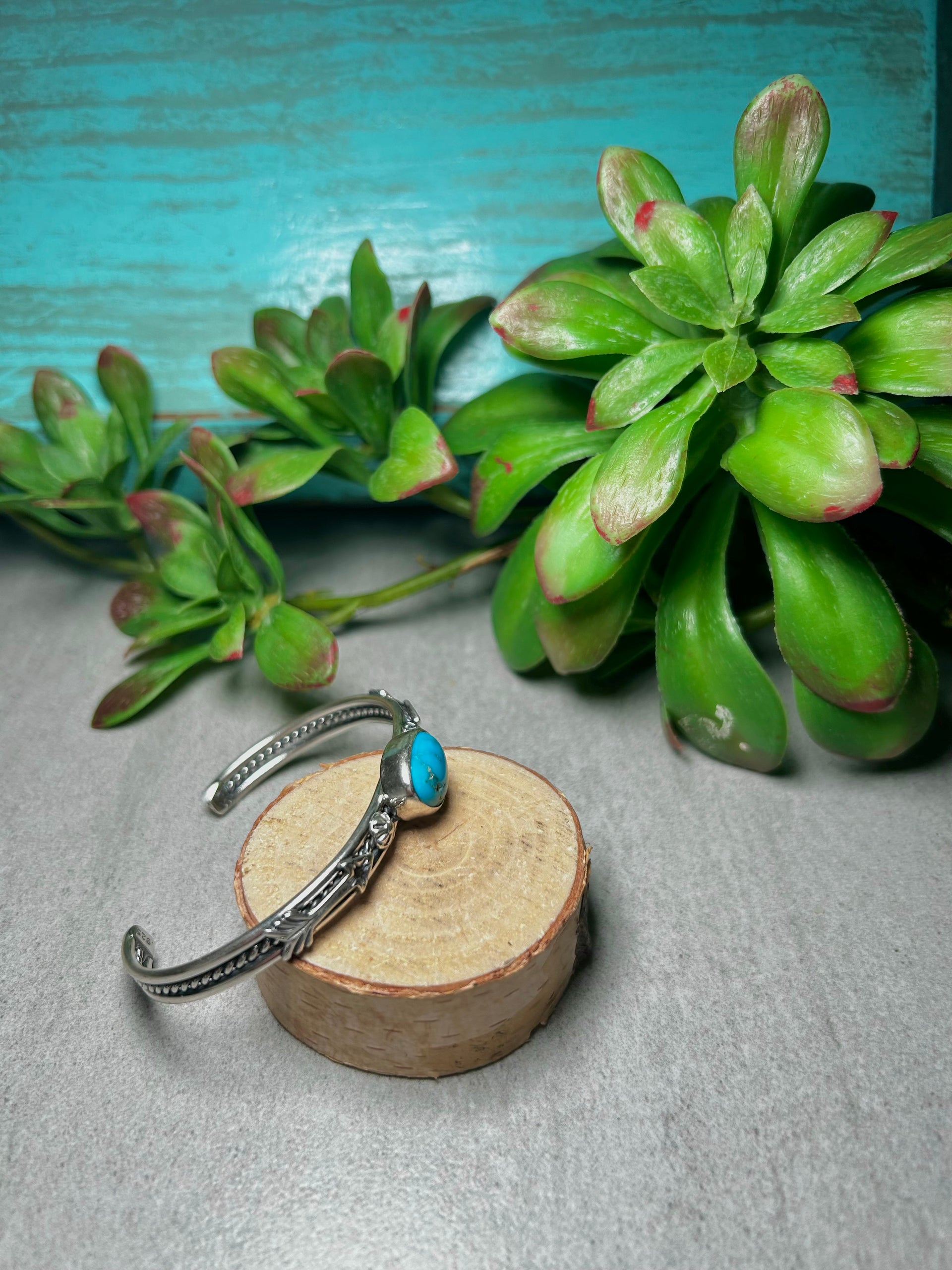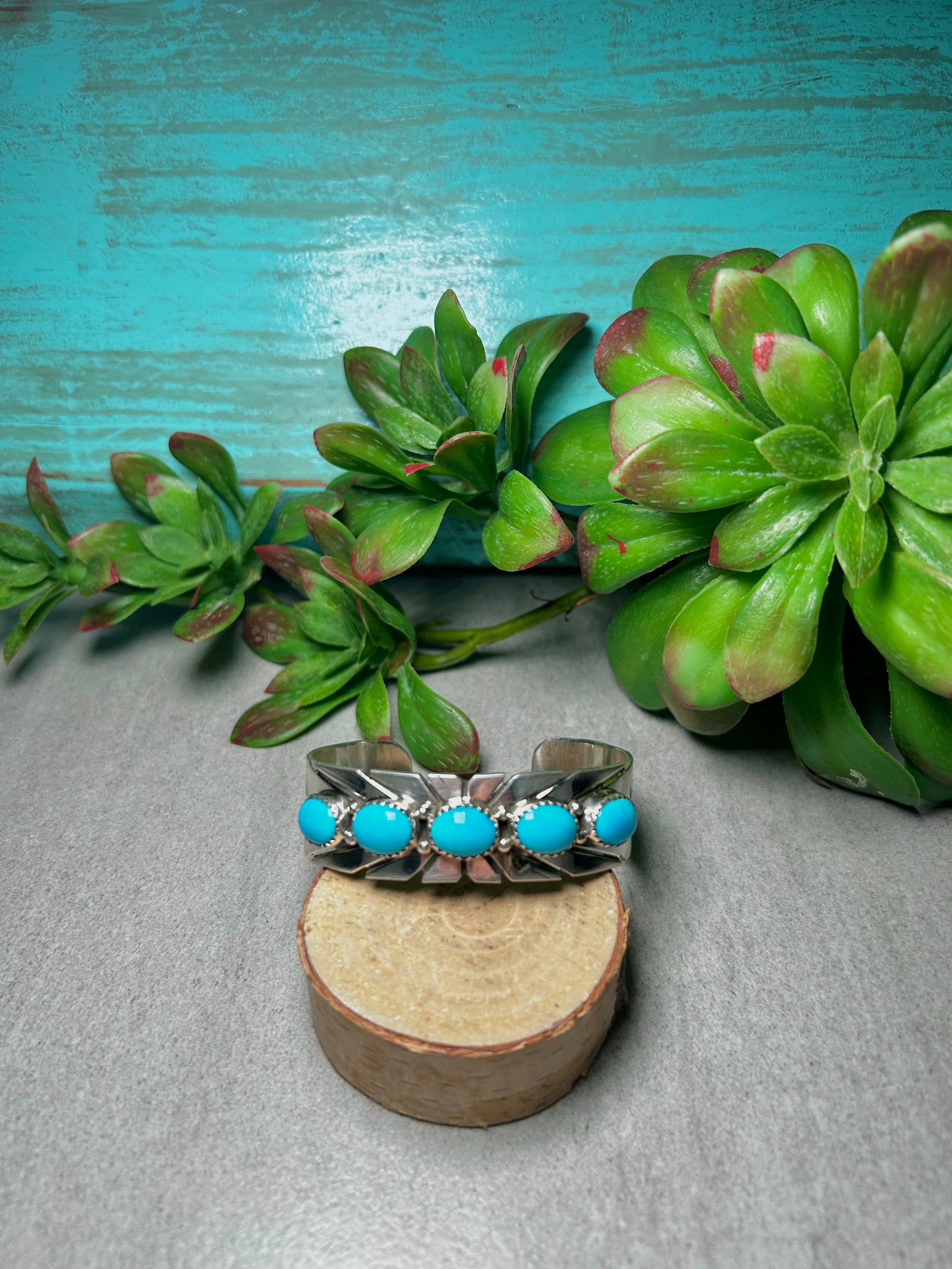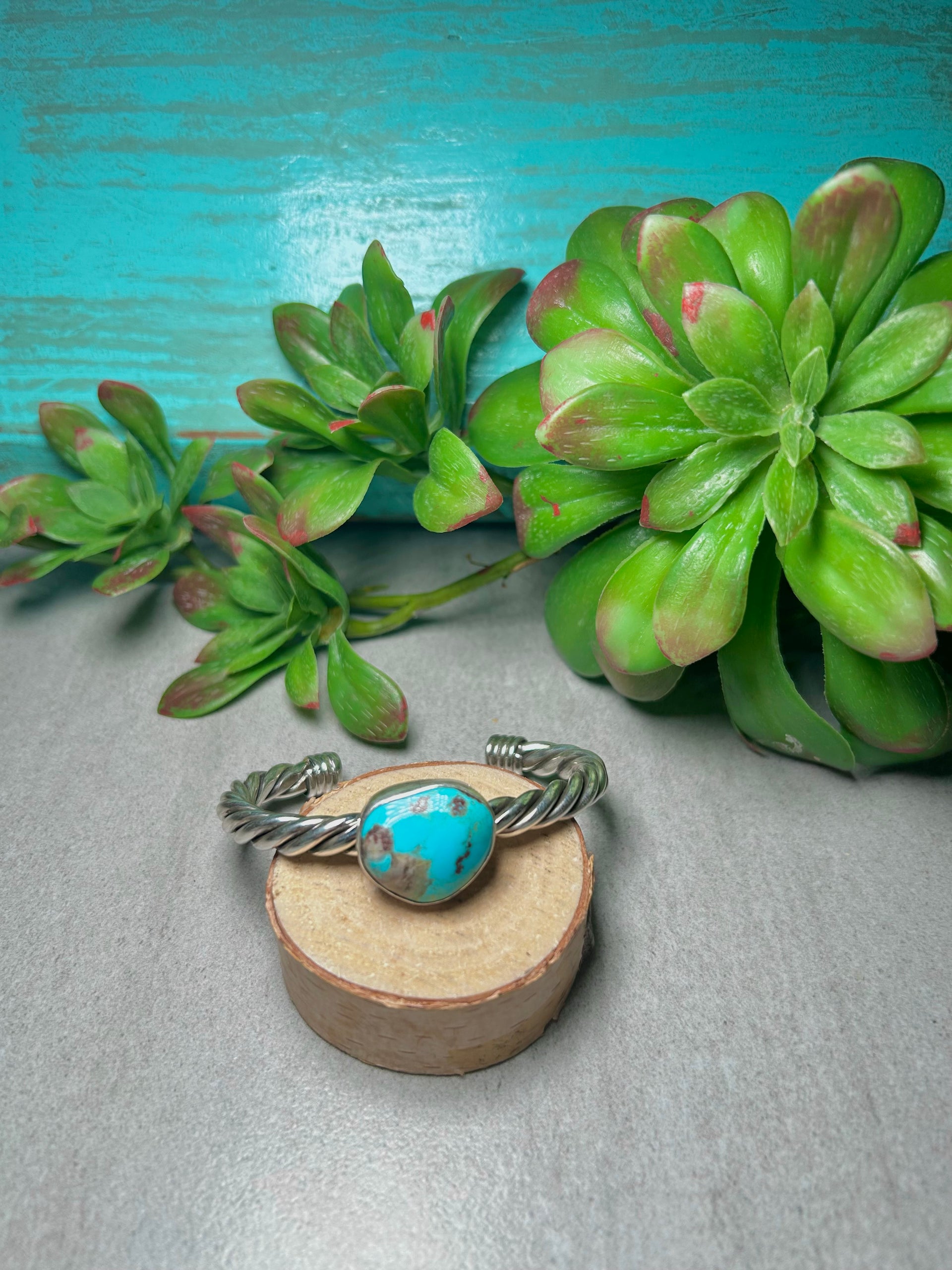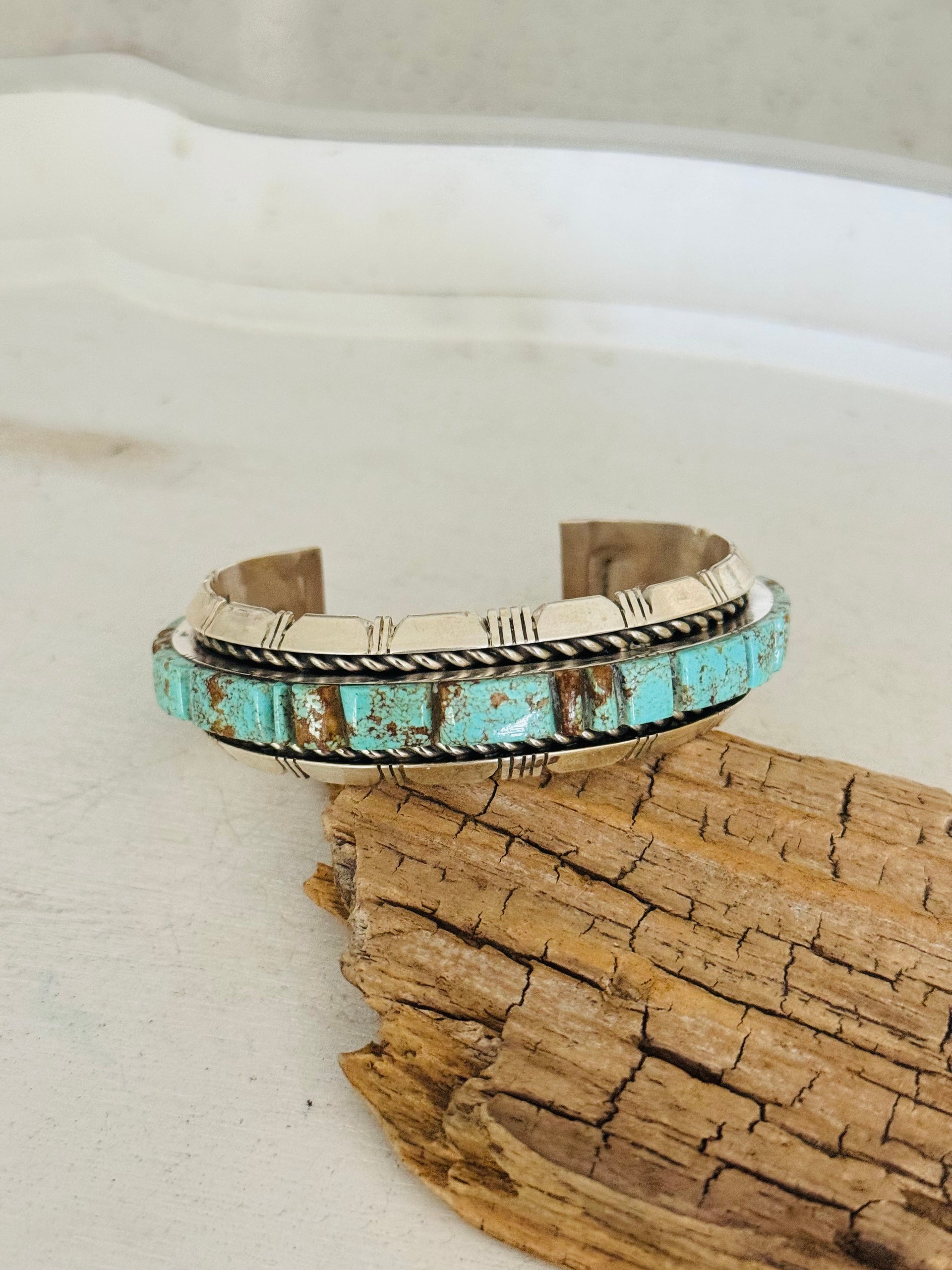Navajo Made Kingman Turquoise & Sterling Silver Cuff Bracelet