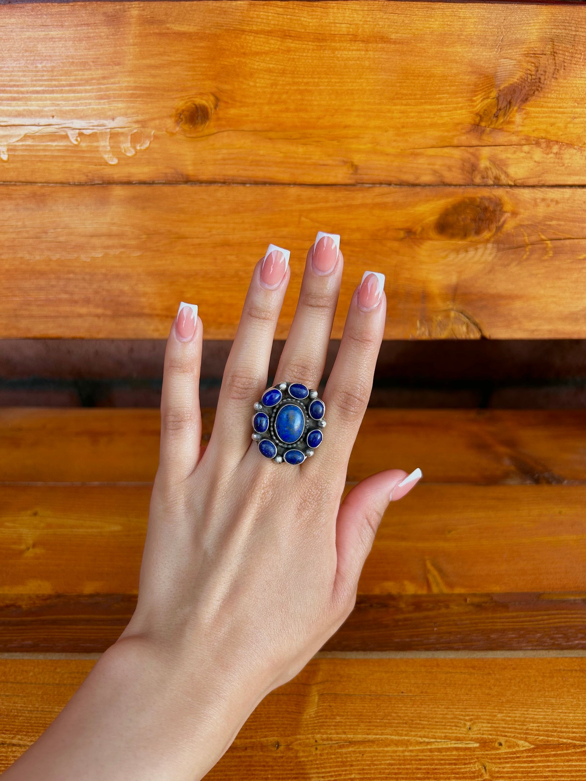 Navajo Made Lapis & Sterling Sliver Ring Size 6.75