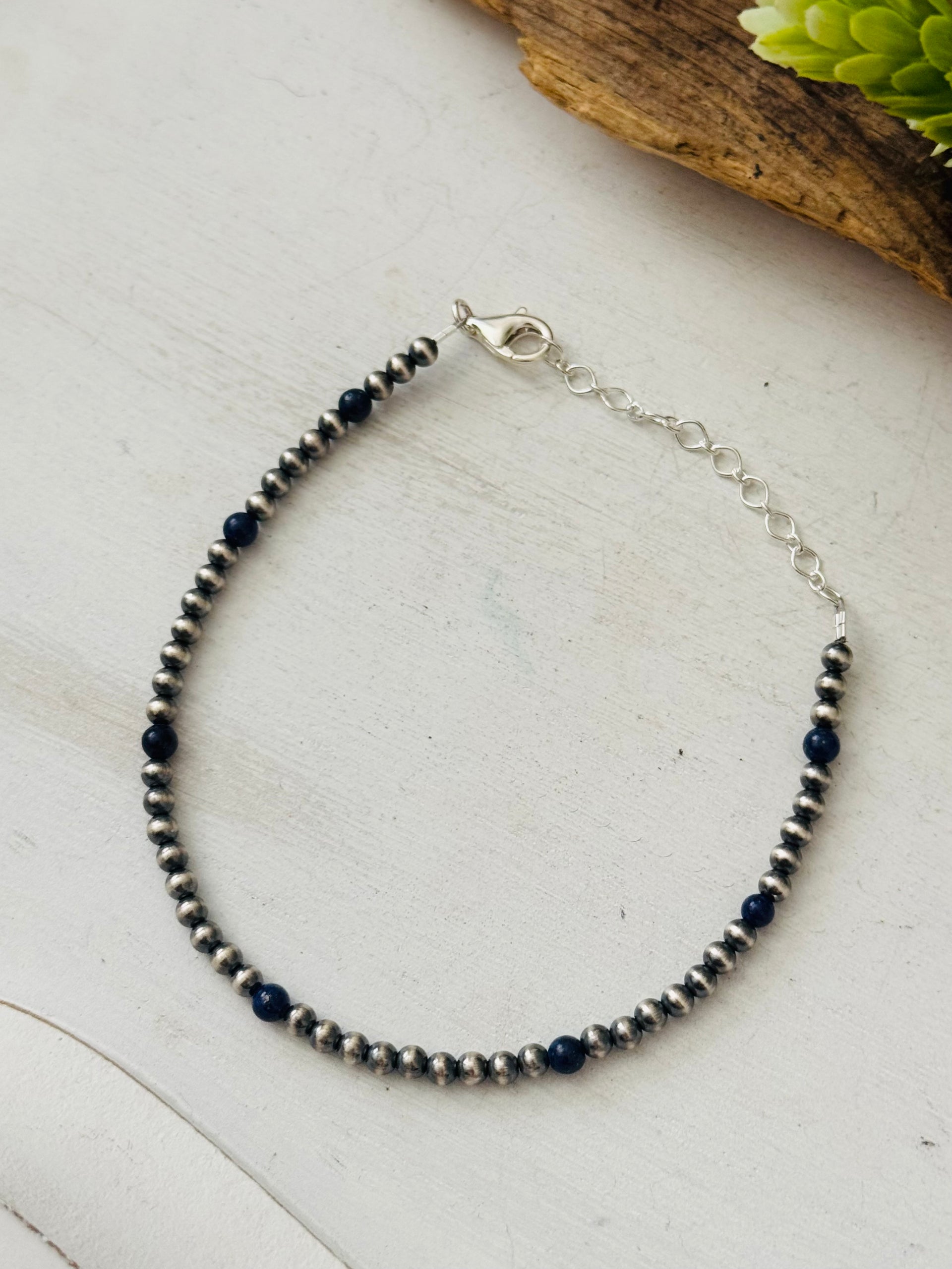 Navajo Strung Lapis & Sterling Silver Pearl Beaded Bracelet