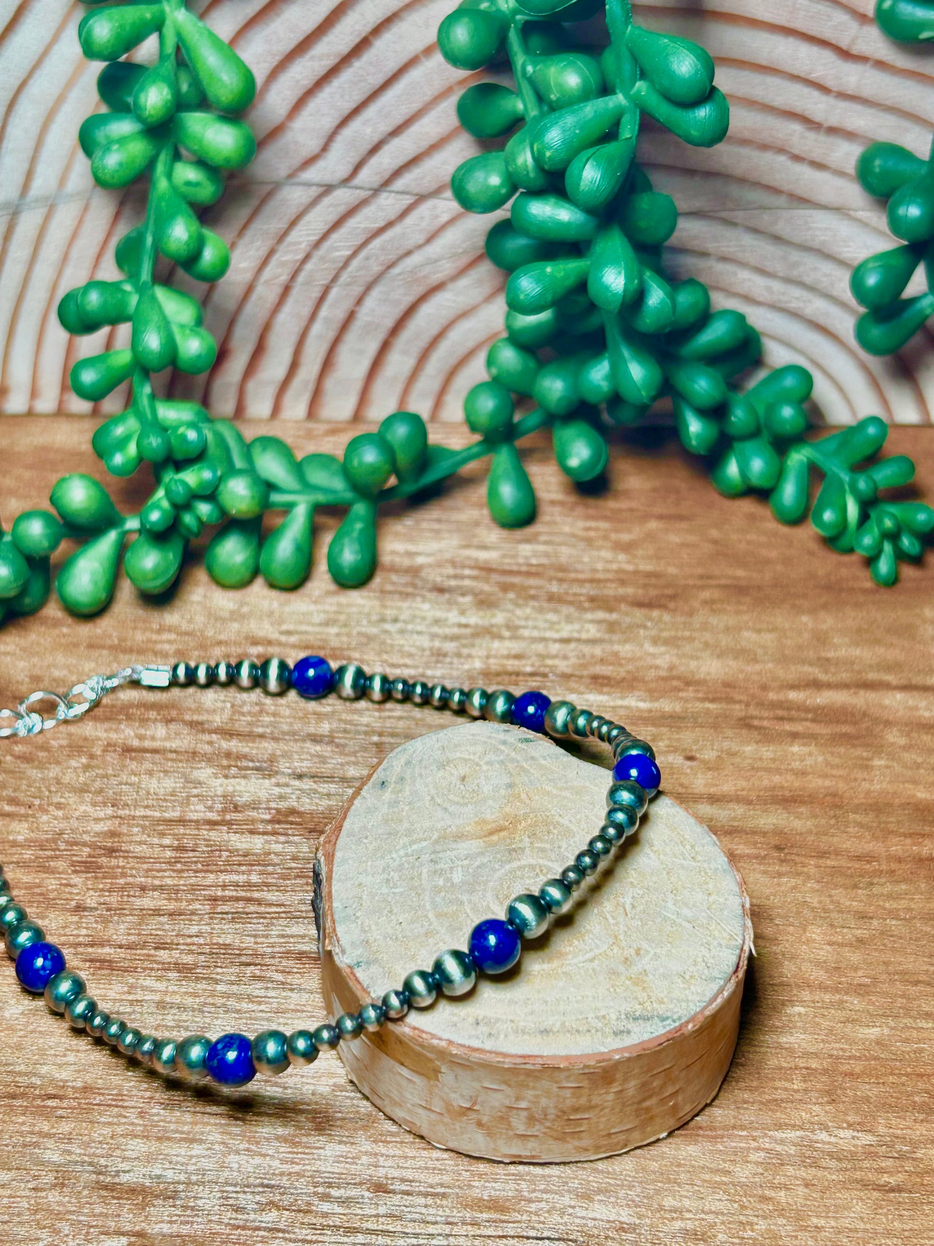 Navajo Made Lapis & Sterling Silver Necklace