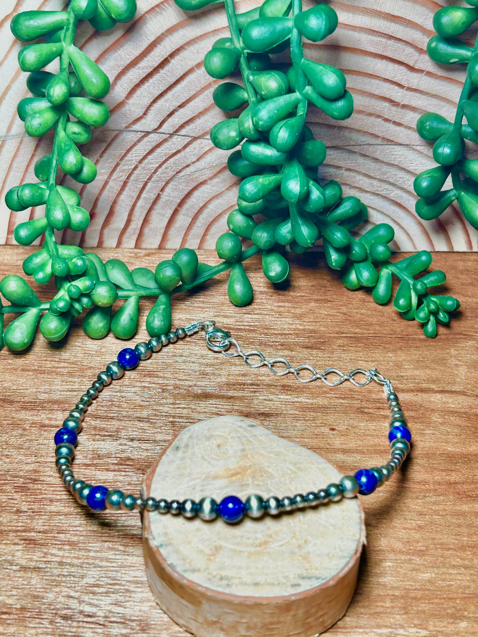 Navajo Made Lapis & Sterling Silver Pearl Bracelet