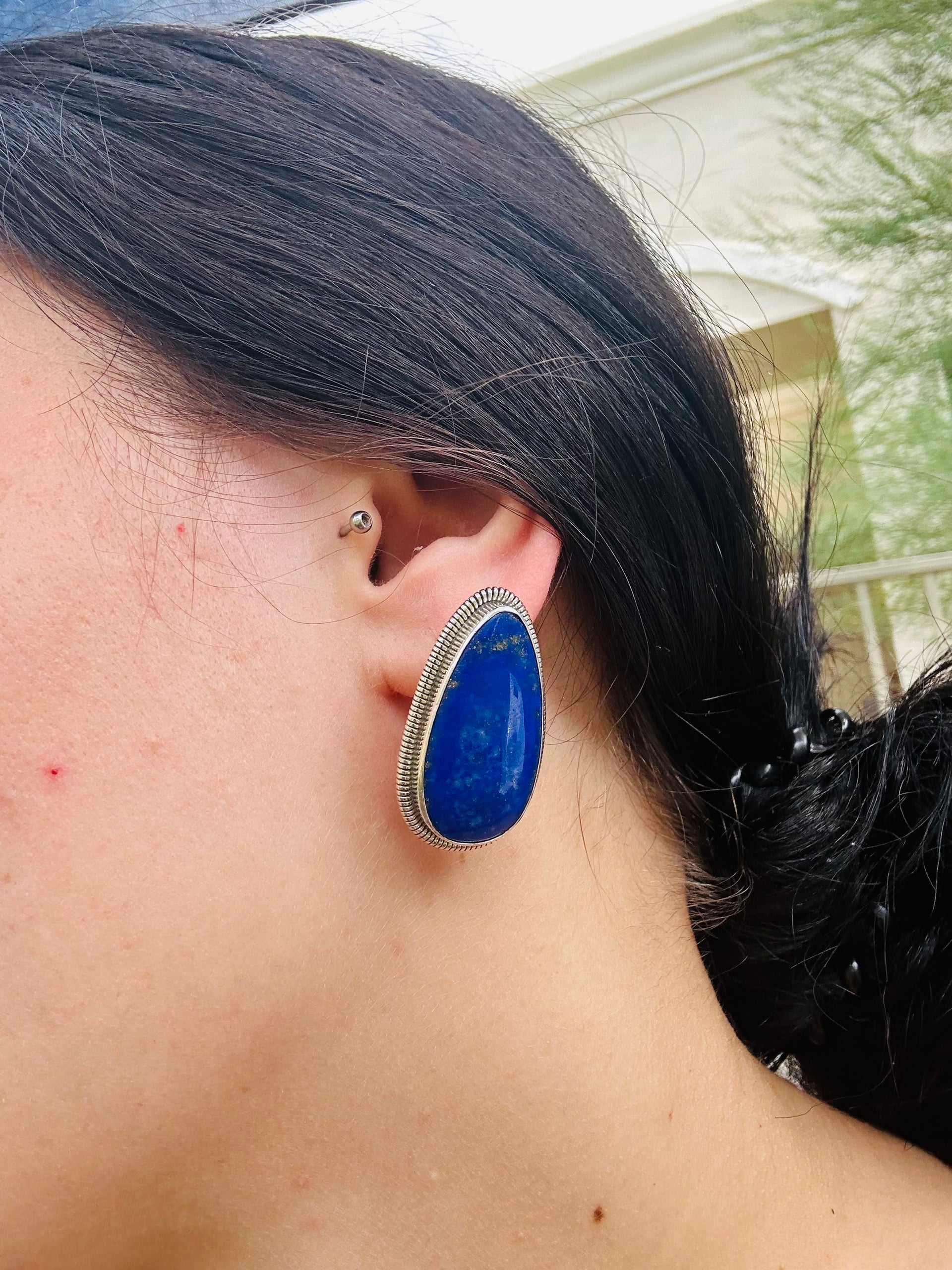 Southwest Made Lapis & Sterling Silver Post Earrings