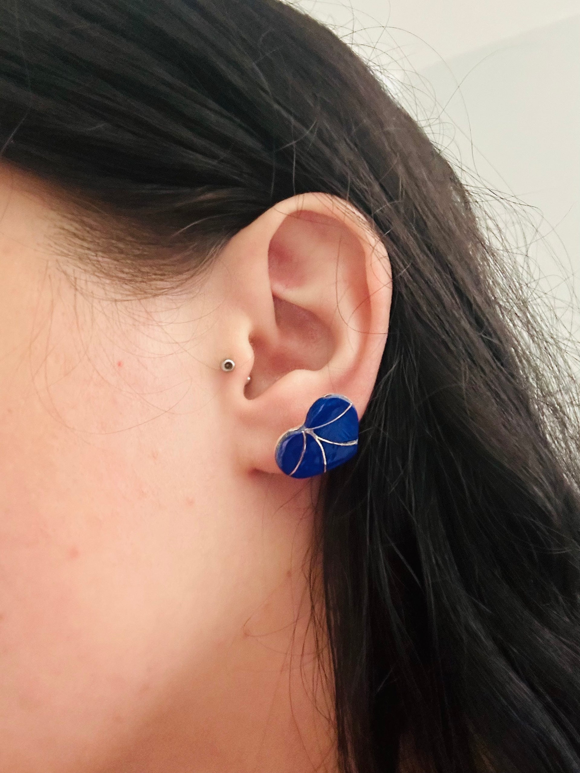 Southwest Made Lapis & Sterling Silver Post Heart Earrings
