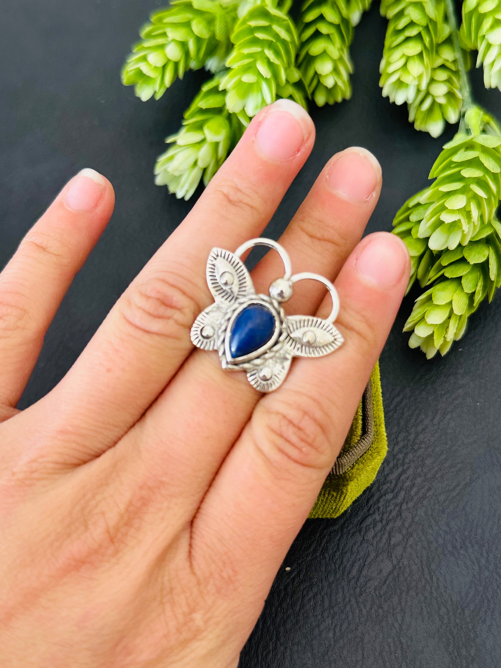 Navajo Handmade Lapis & Sterling Silver Adjustable Ring