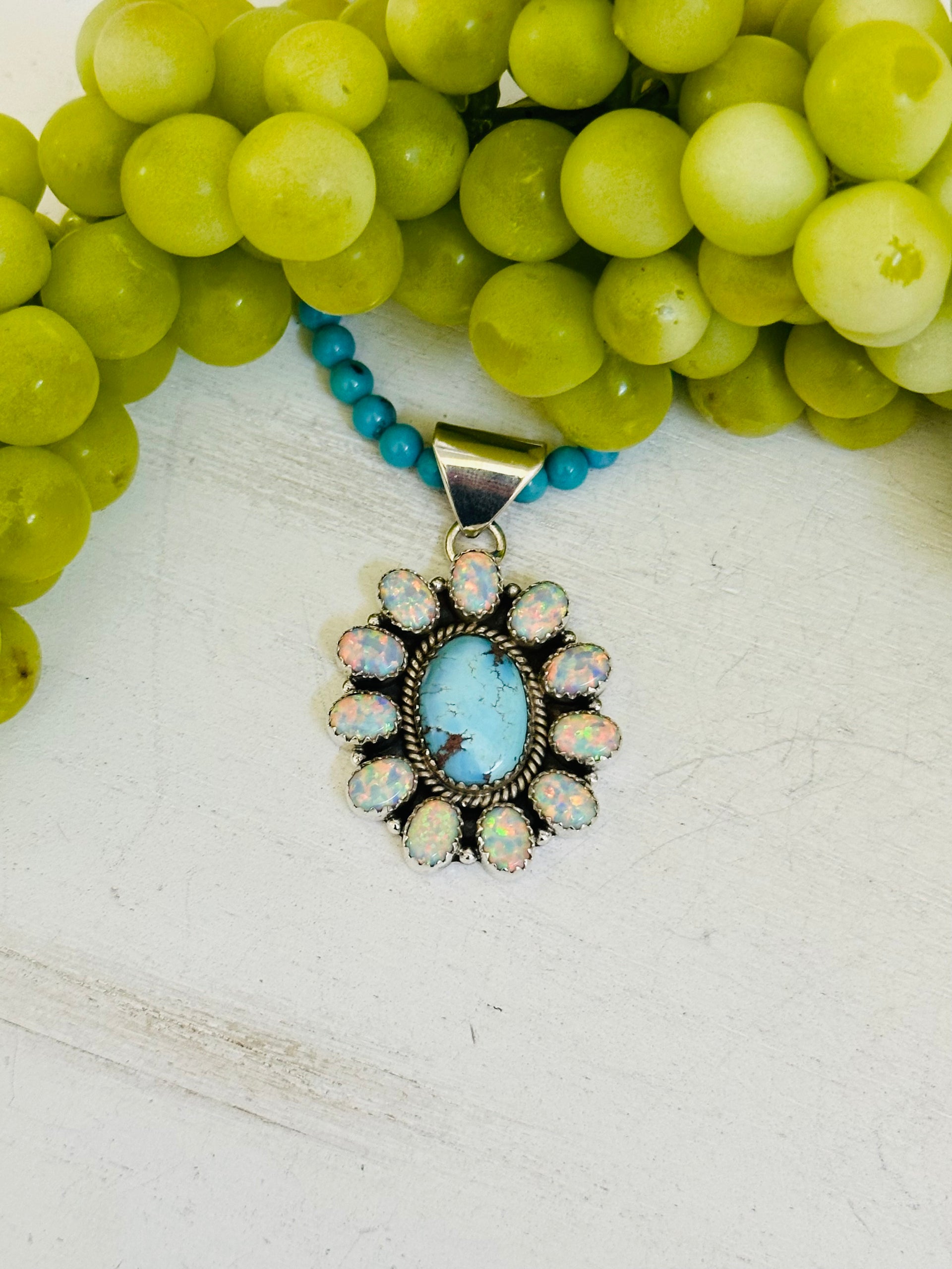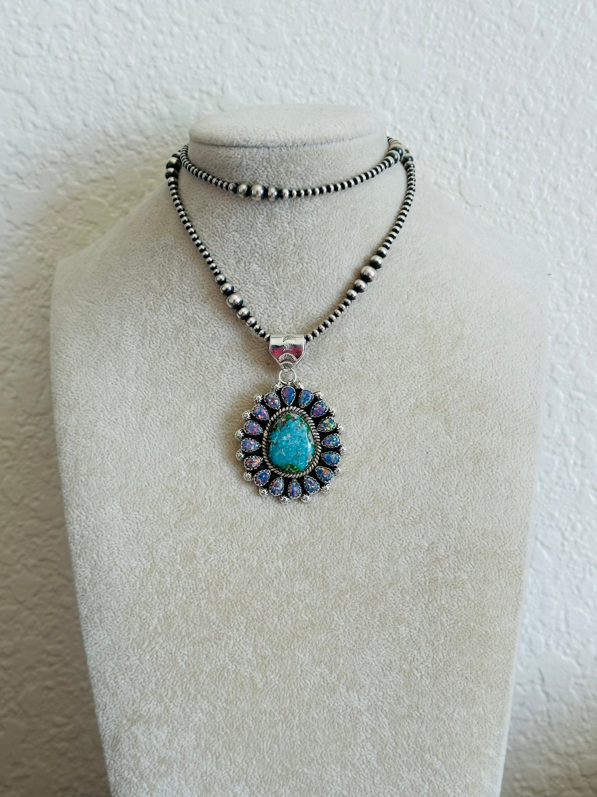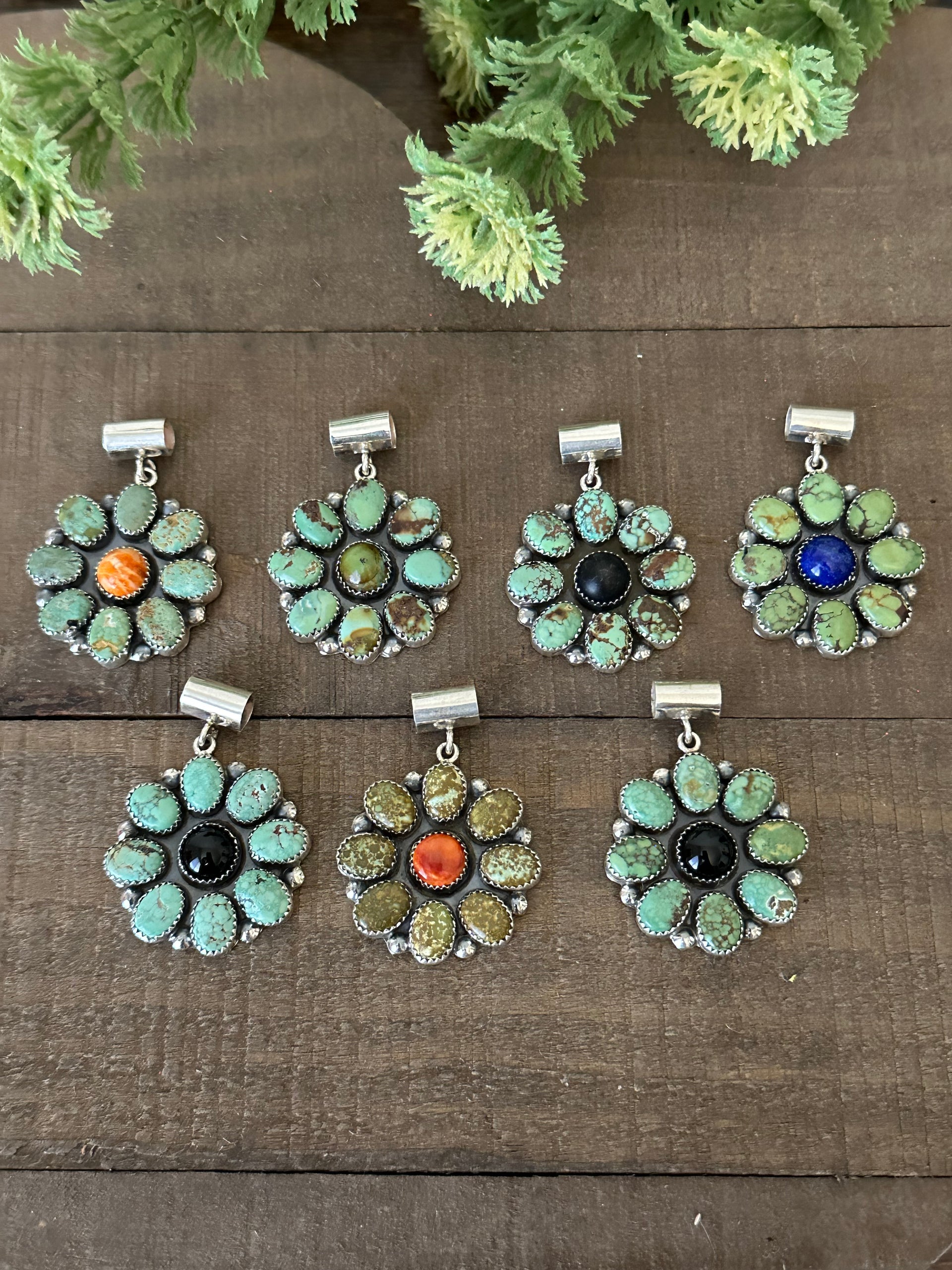 Southwest Handmade Multi Stone & Sterling Silver Cluster Pendant
