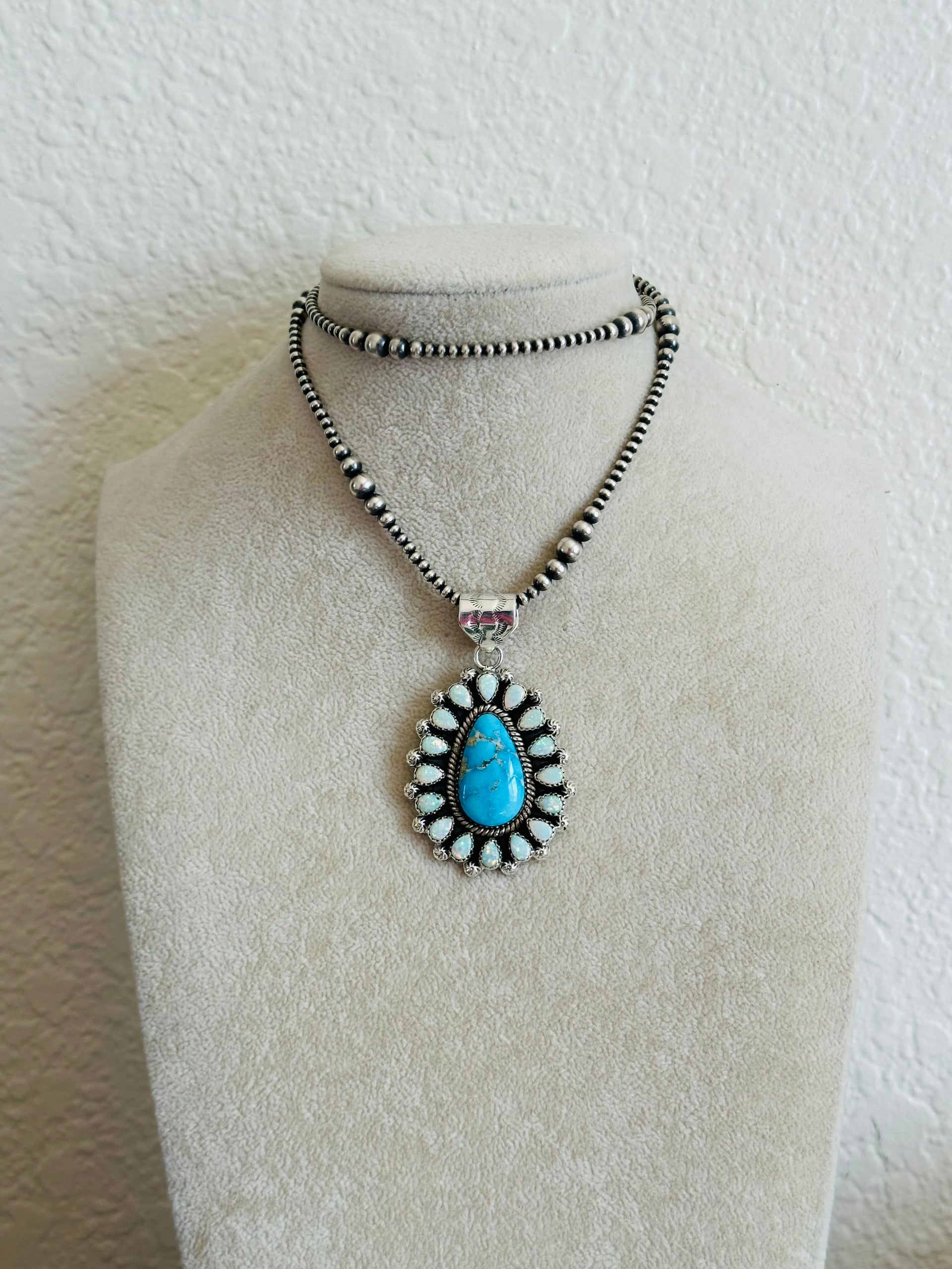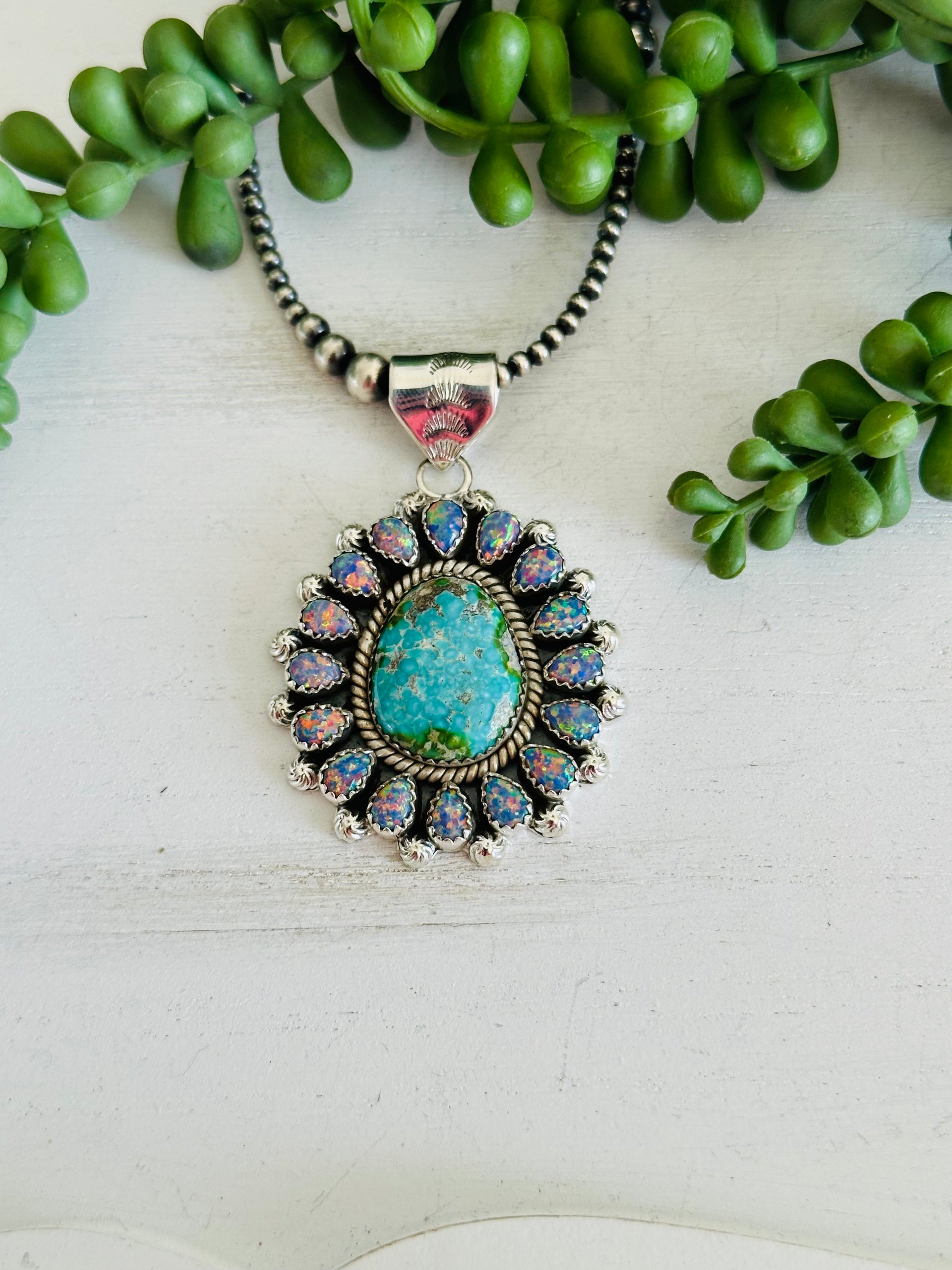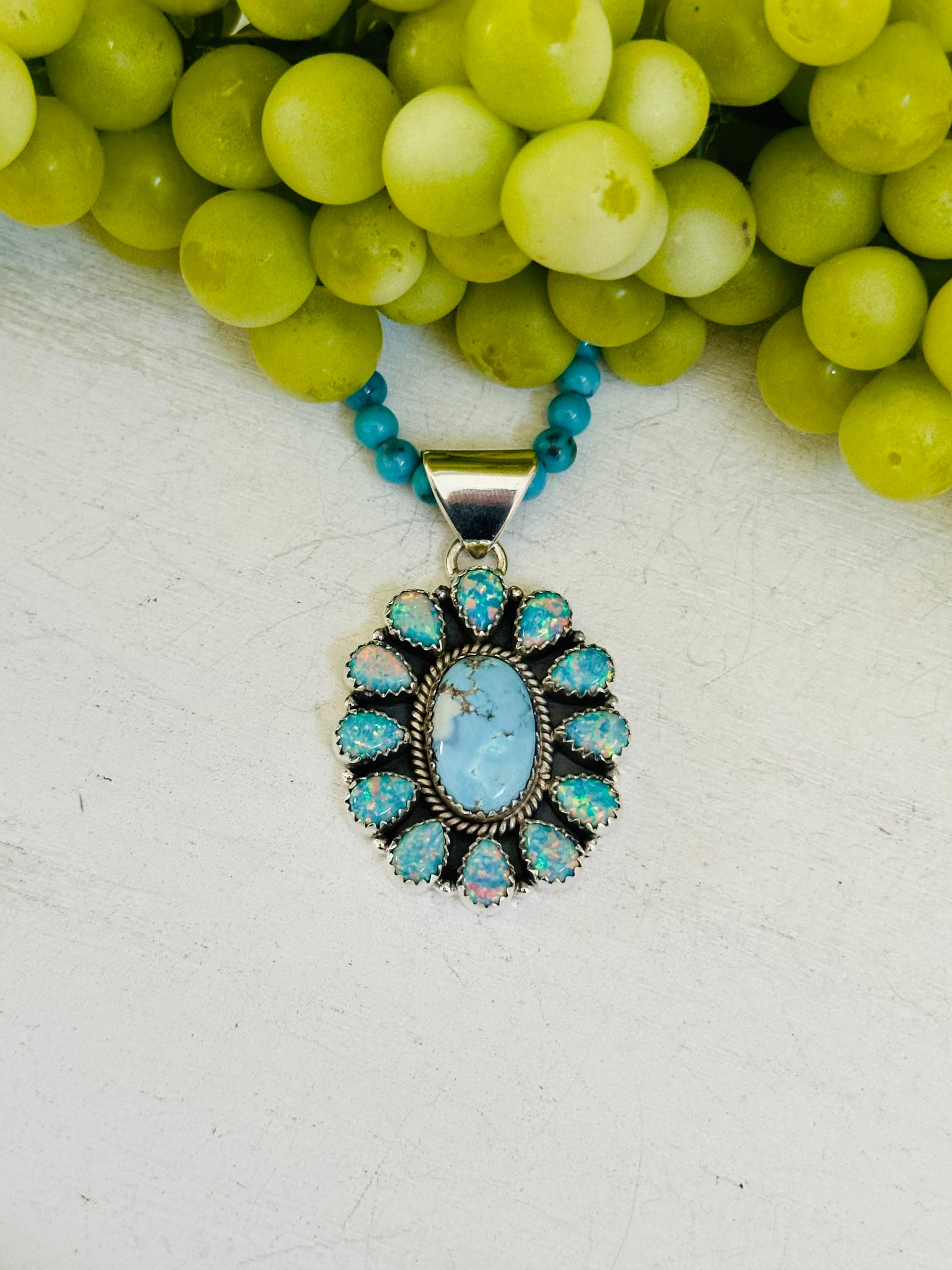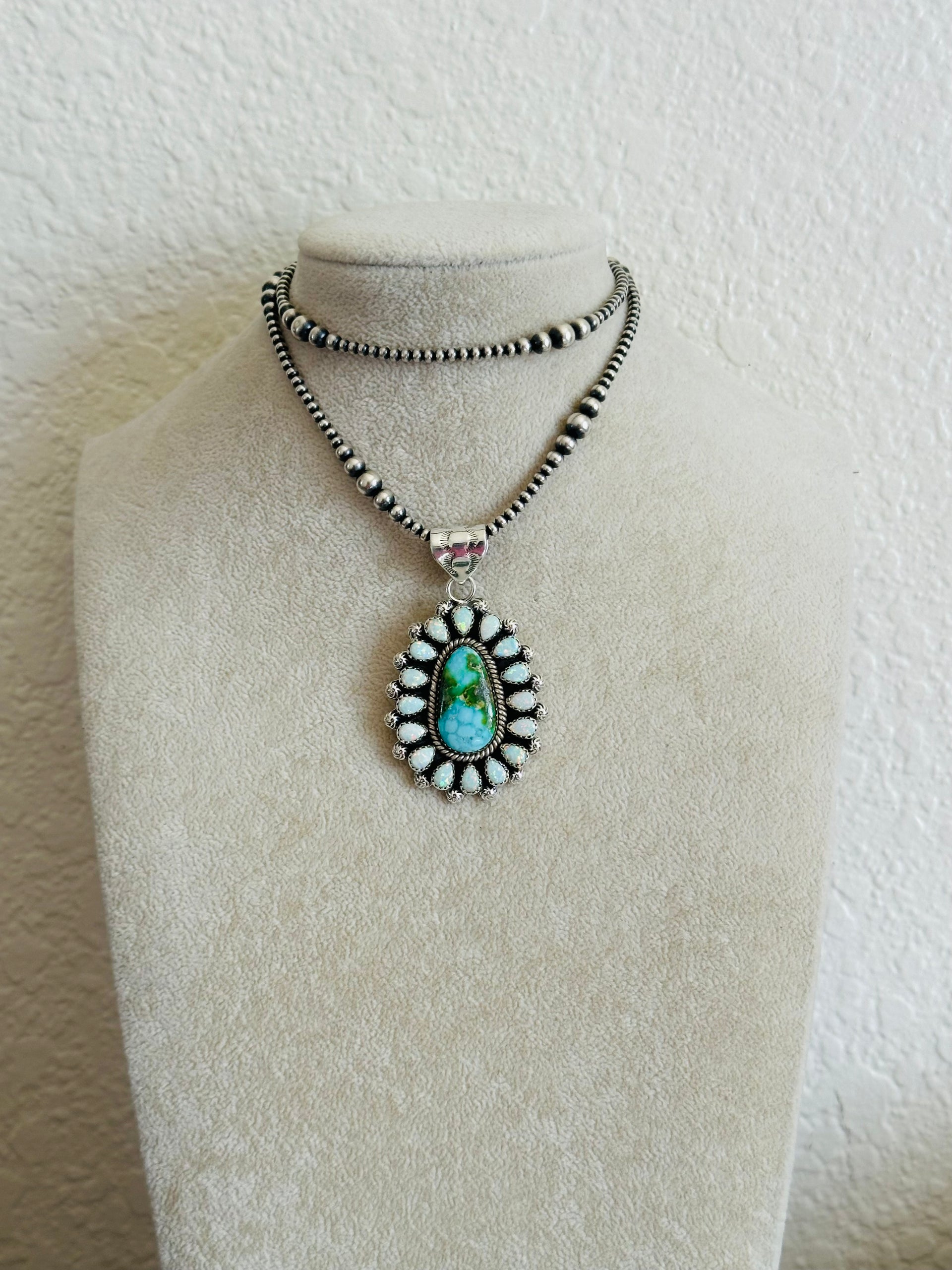 Southwest Handmade Multi Stone & Sterling Silver Cluster Pendant