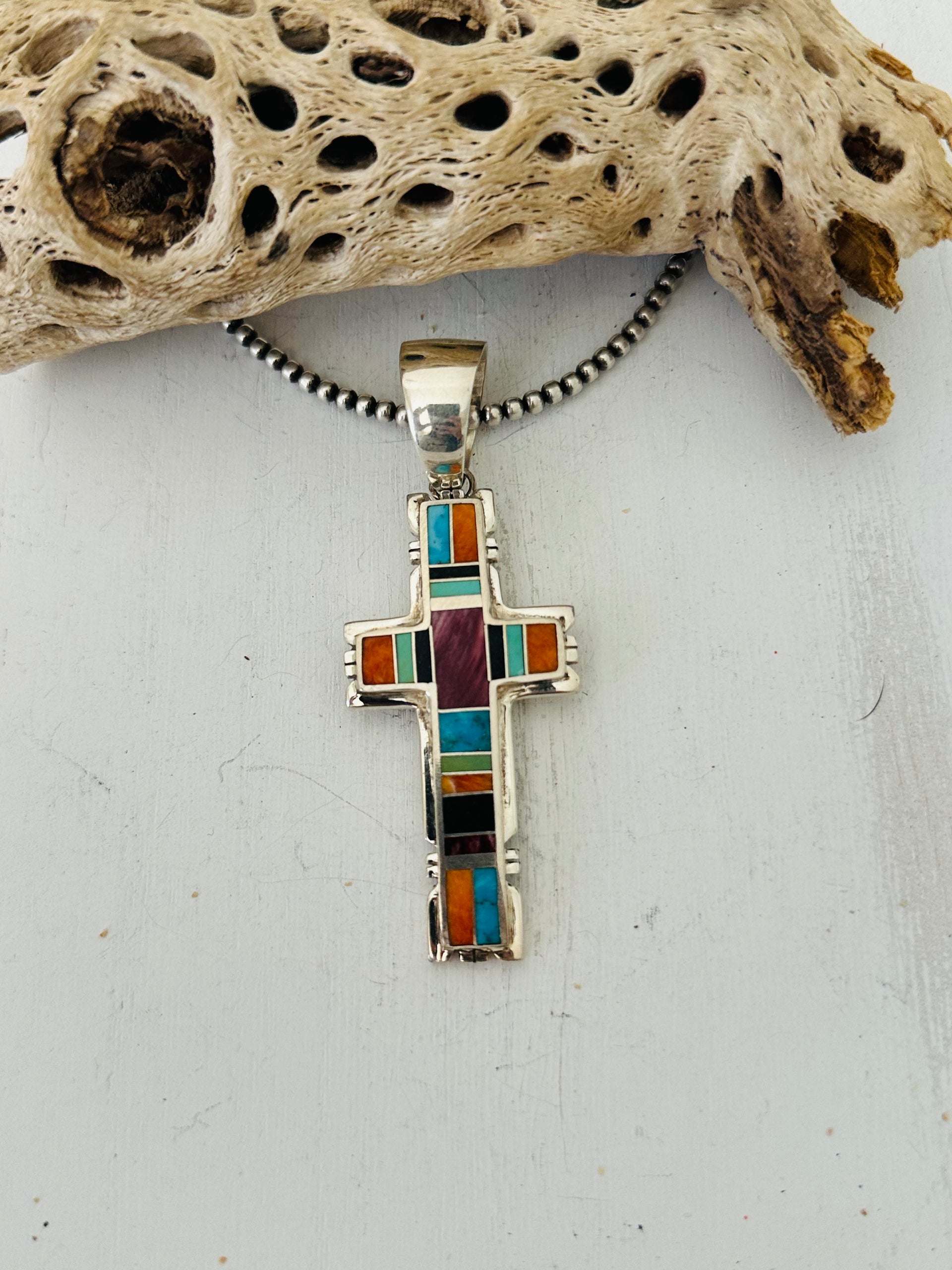 Joseph Martinez Multi Stone & Sterling Silver Inlay Hand Pendant