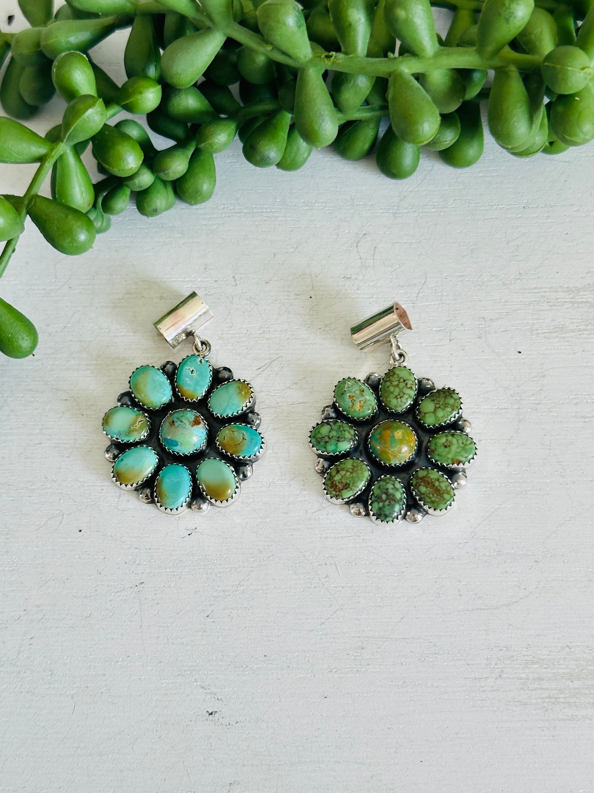 Southwest Handmade Multi Stone & Sterling Silver Cluster Dangle Pendant