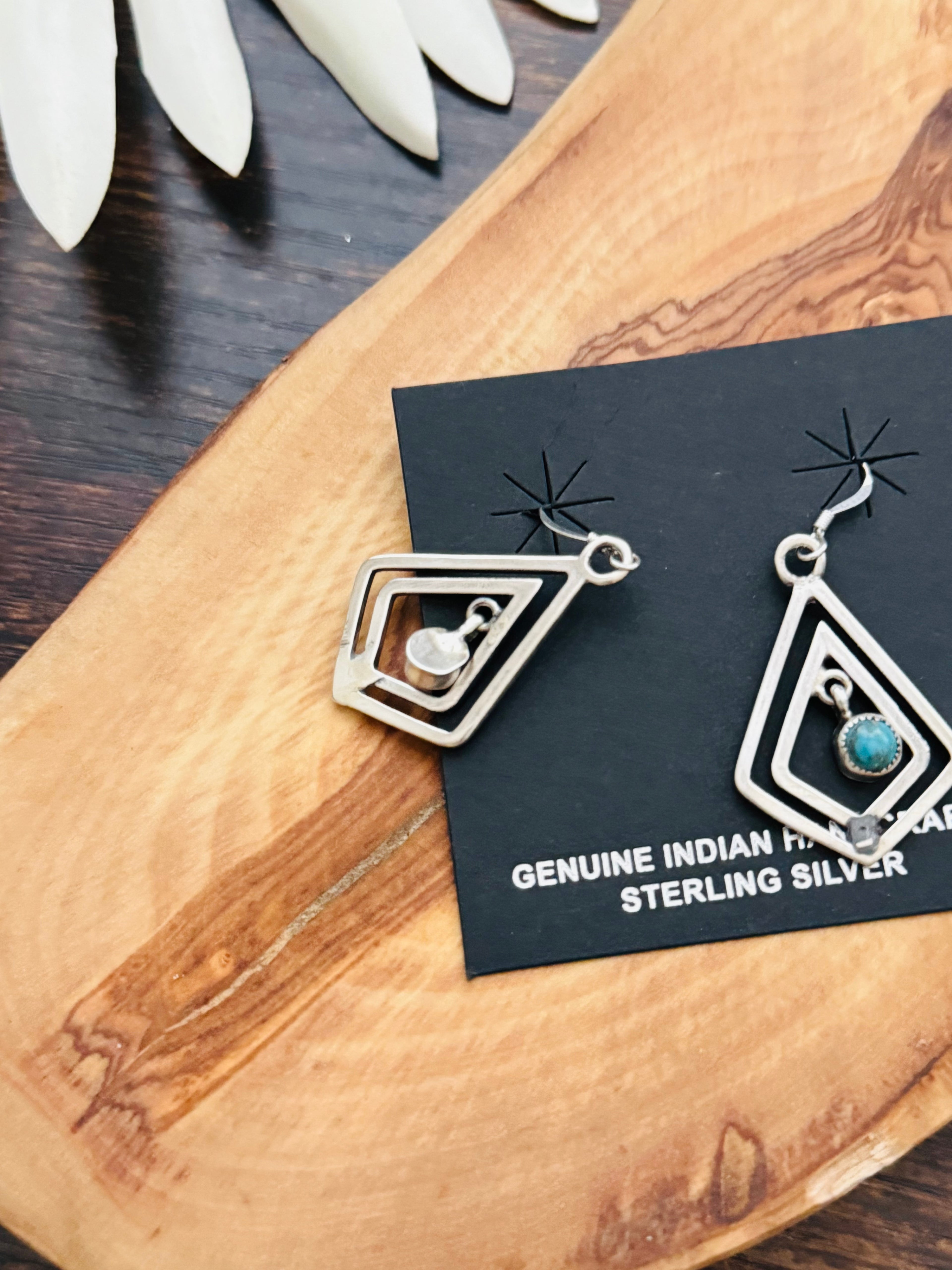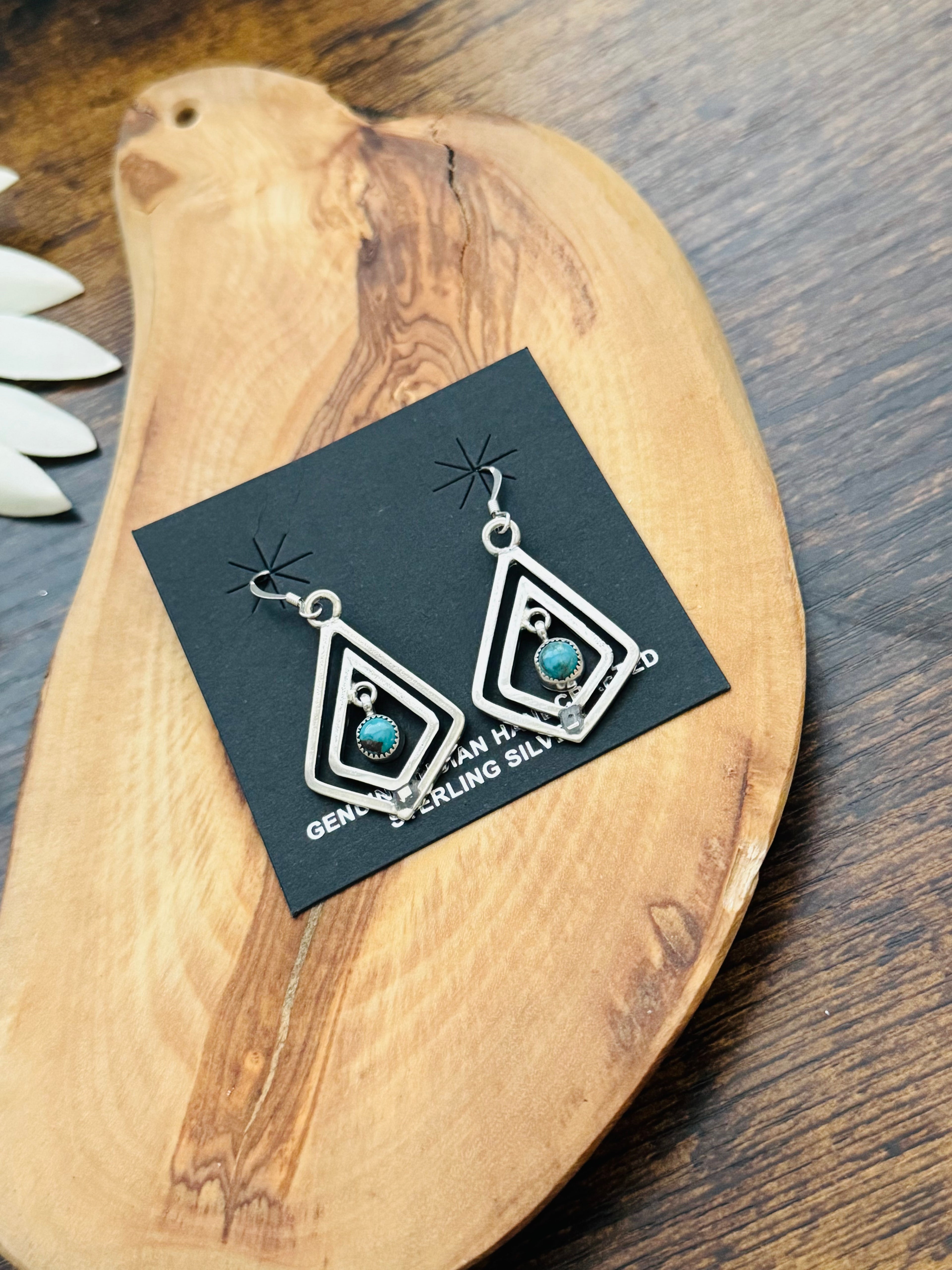 Navajo Made Kingman Turquoise & Sterling Silver Dangle Earrings