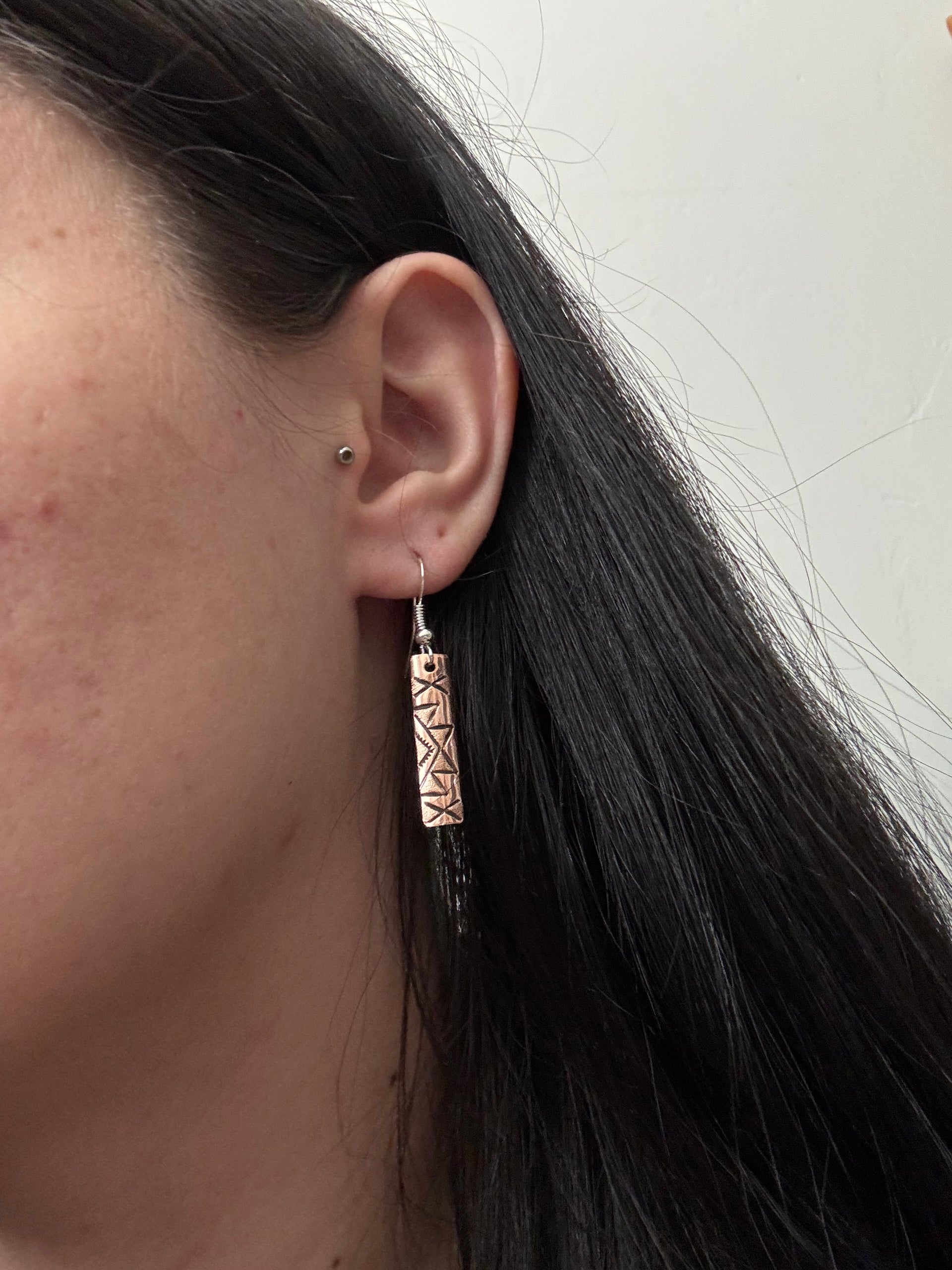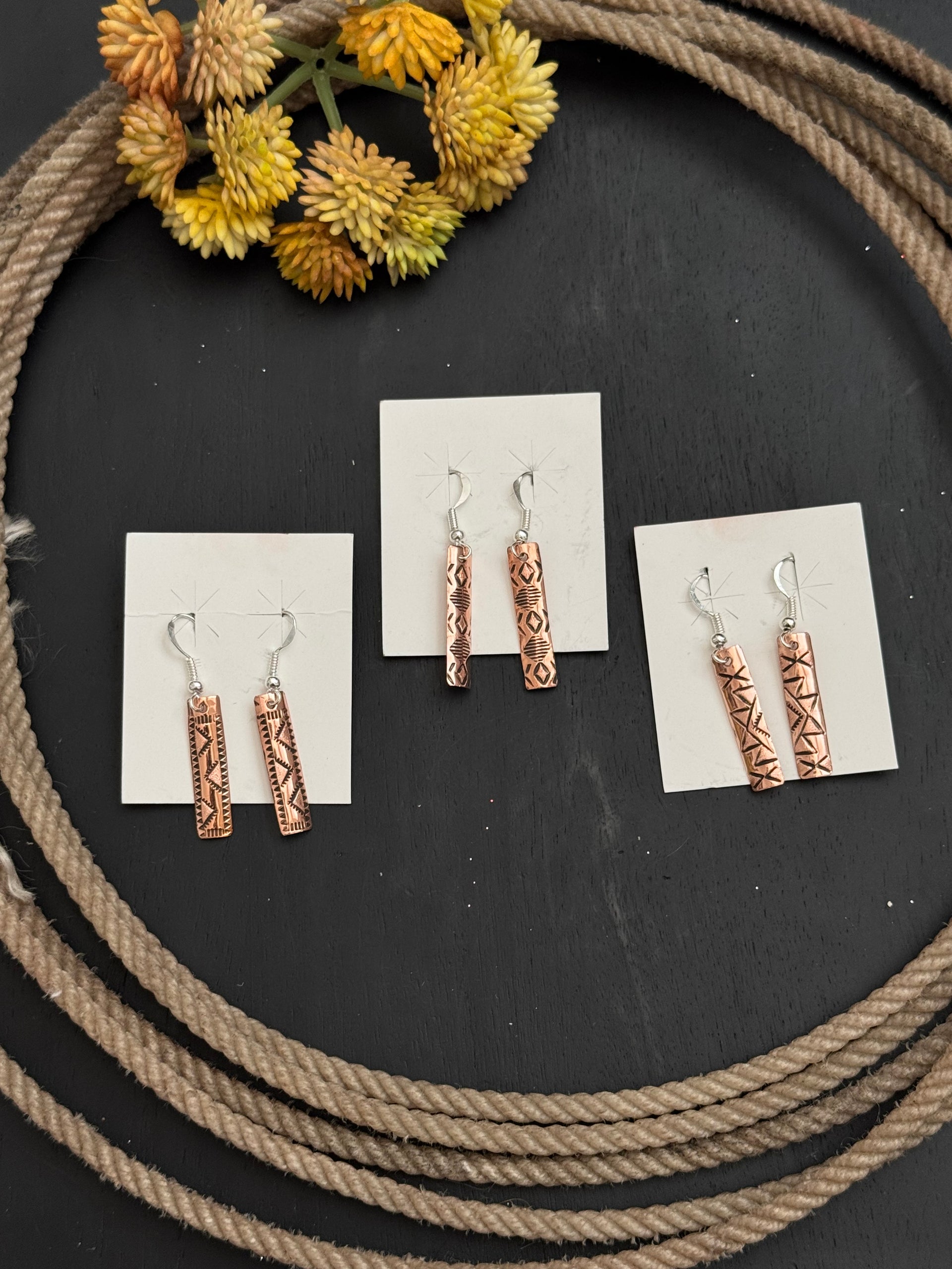 Navajo Strung Copper & Sterling Silver Pearls Dangle Earrings
