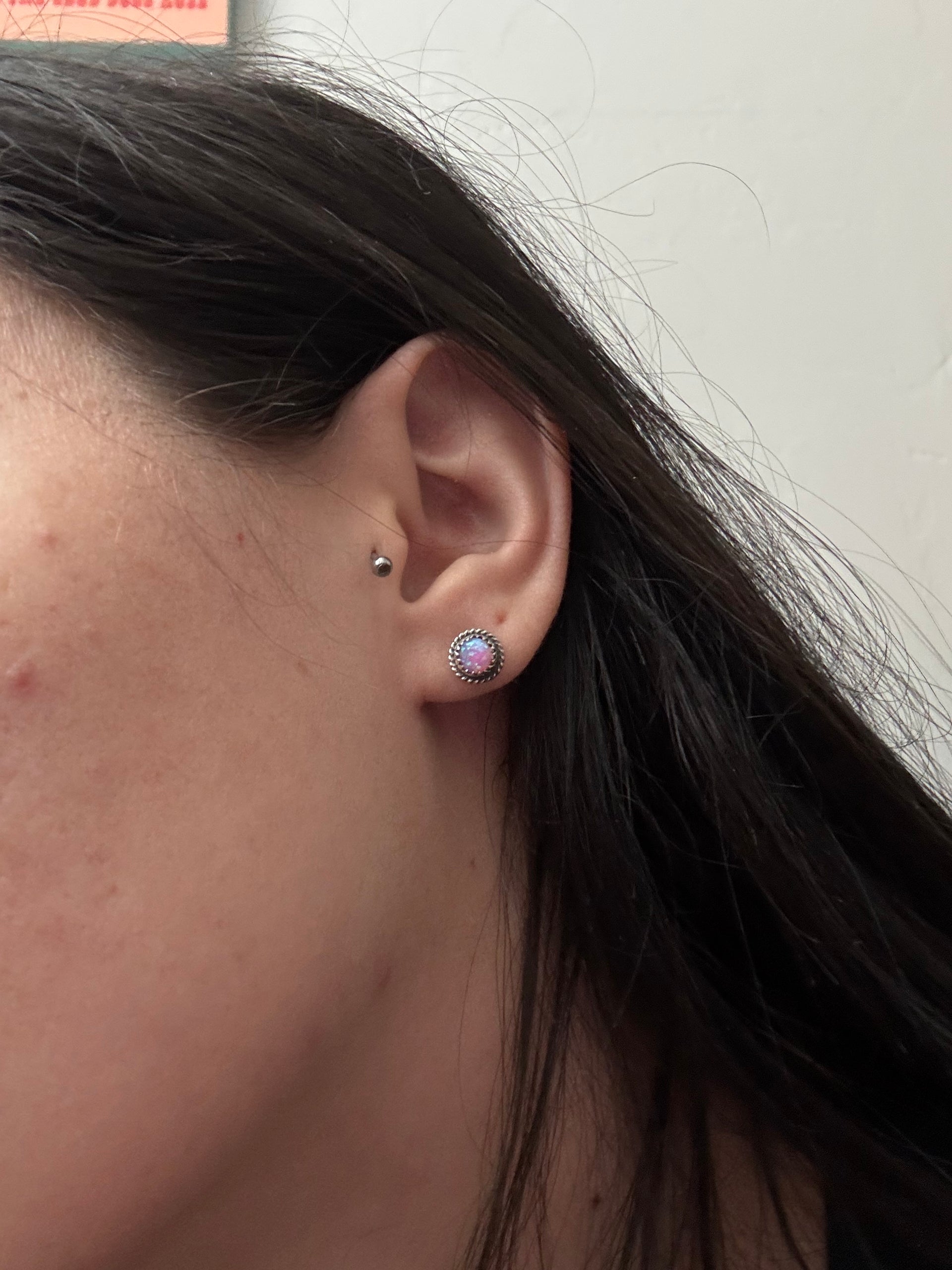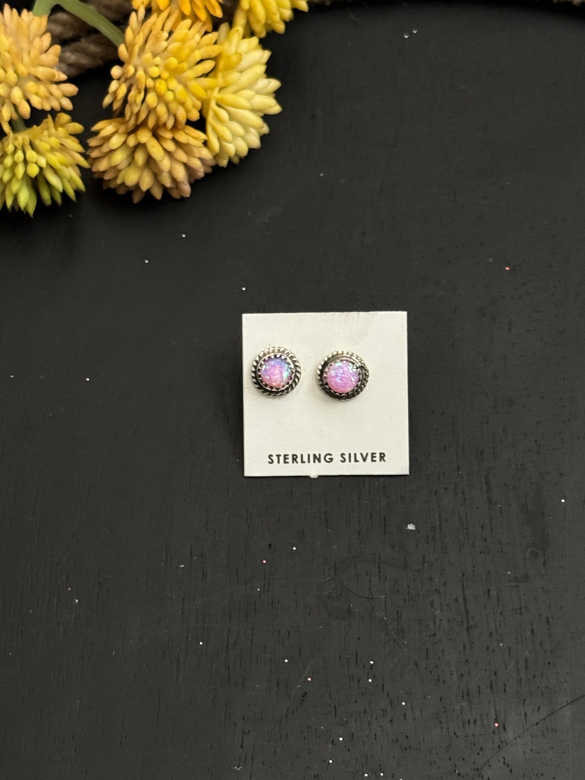 Navajo Made Dahlia Rose & Sterling Silver Post Earrings