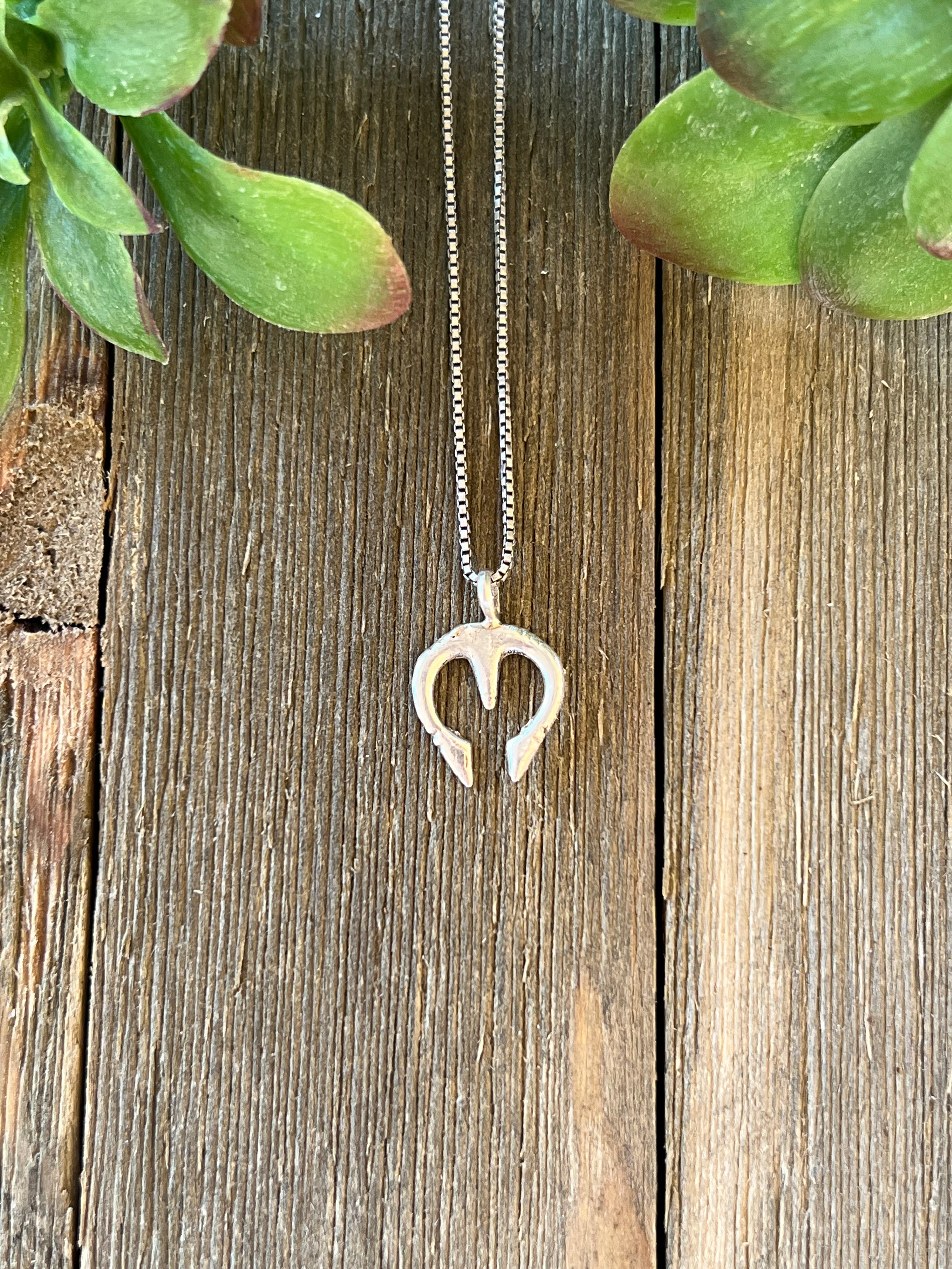 Navajo Made Sterling Silver Naja Pendant. It measures 3/4 of an inch long and just over 1/2 of an inch wide. Pendant Only!! Signed by the artist and stamped sterling silver.