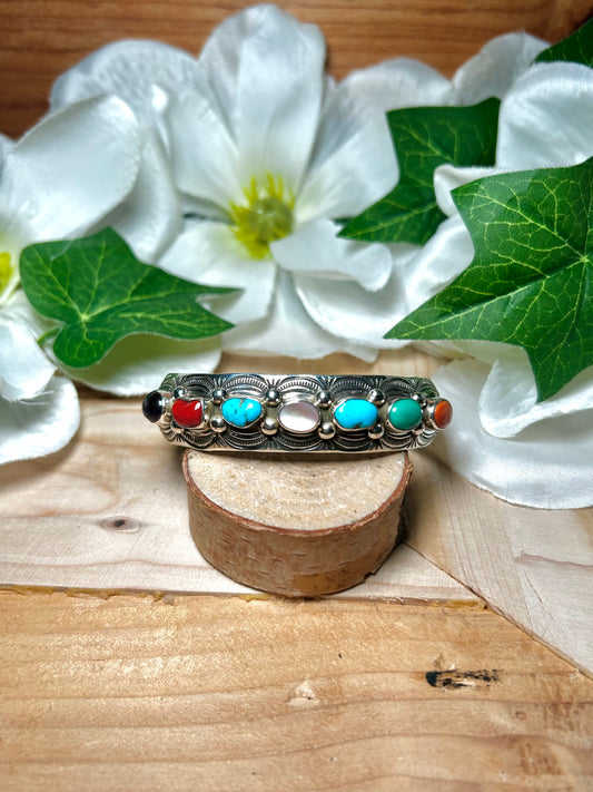 Navajo Made Spiny Oyster & Sterling Silver Cuff Bracelet