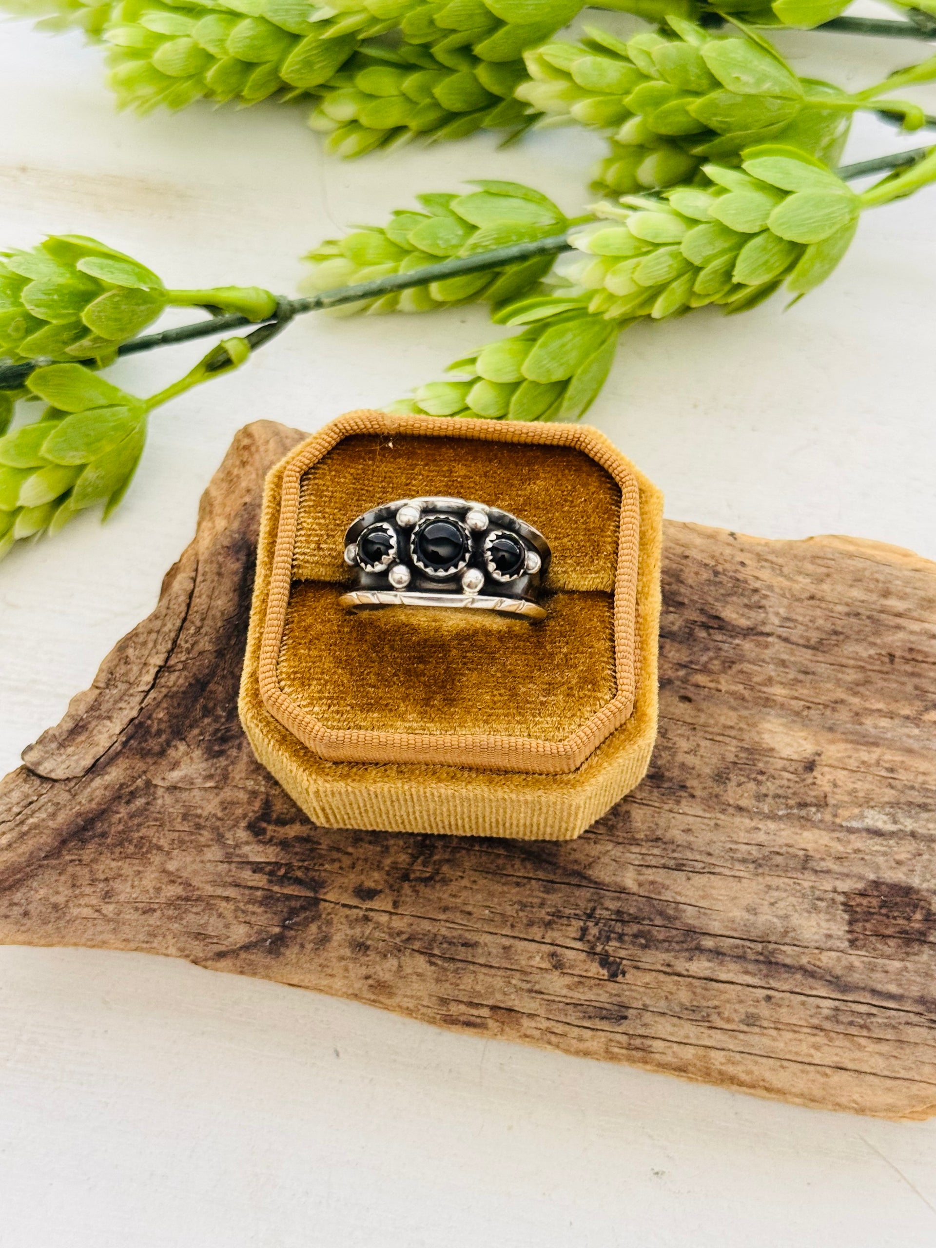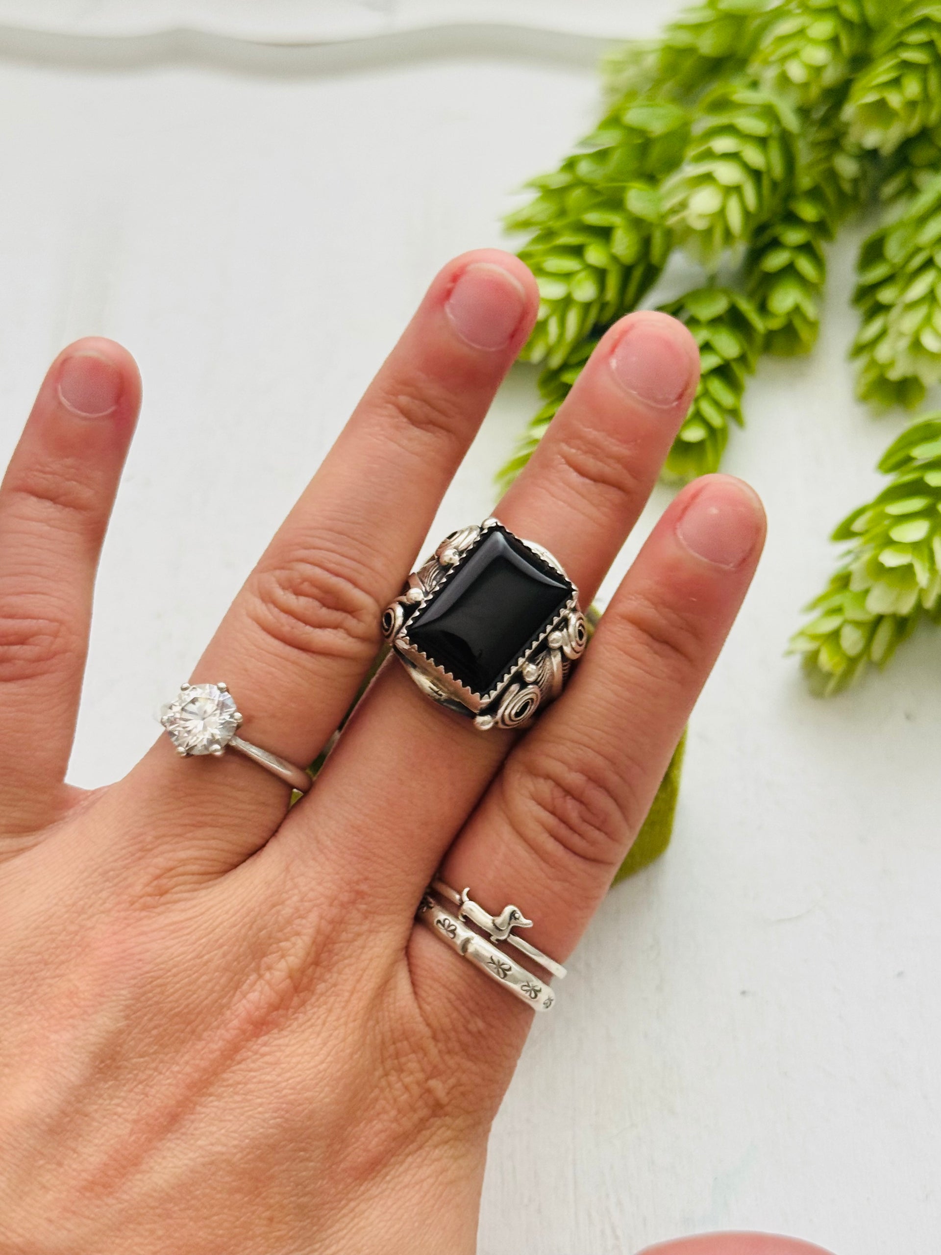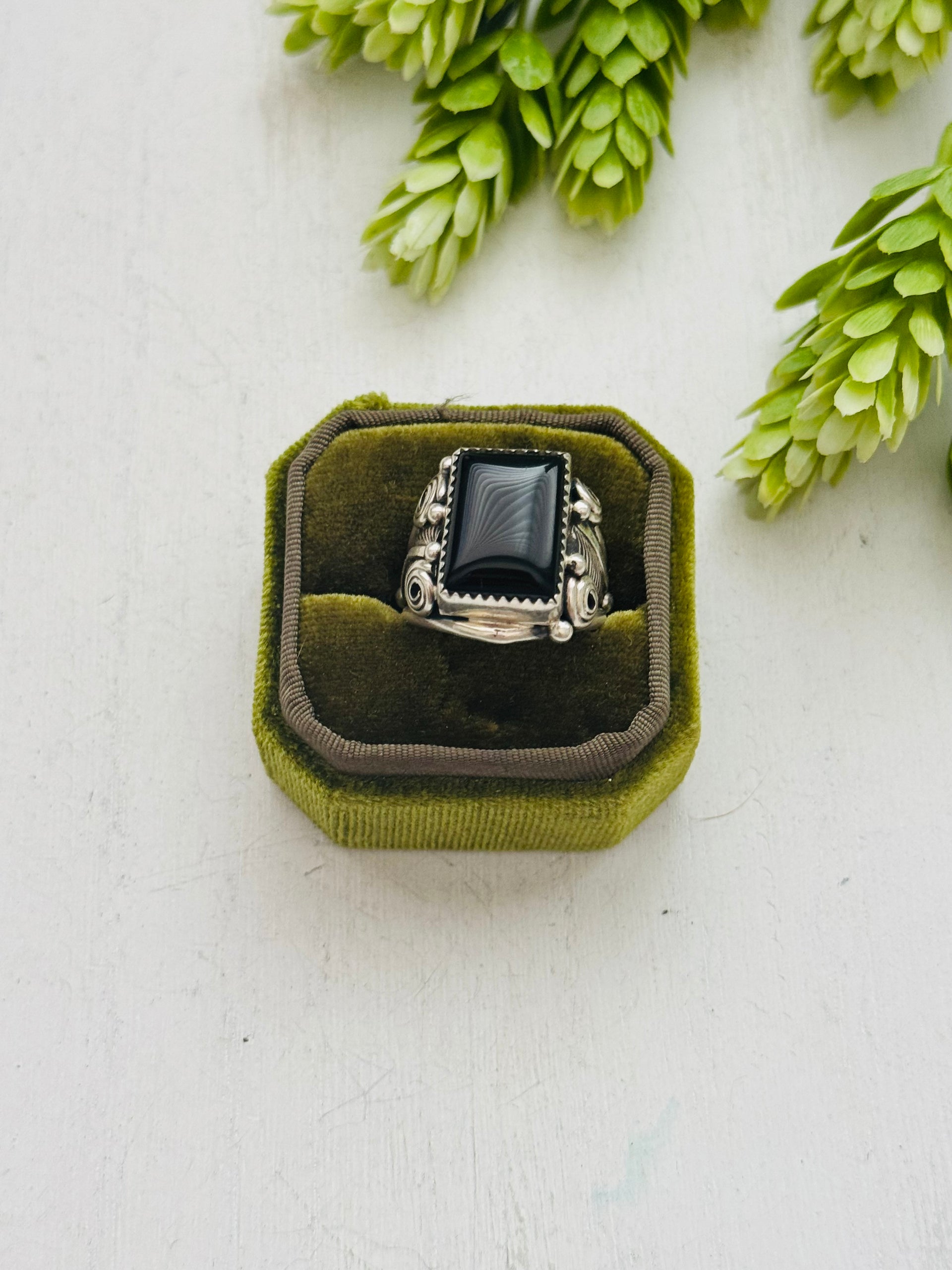 Navajo Made Onyx & Sterling Silver Adjustable Ring
