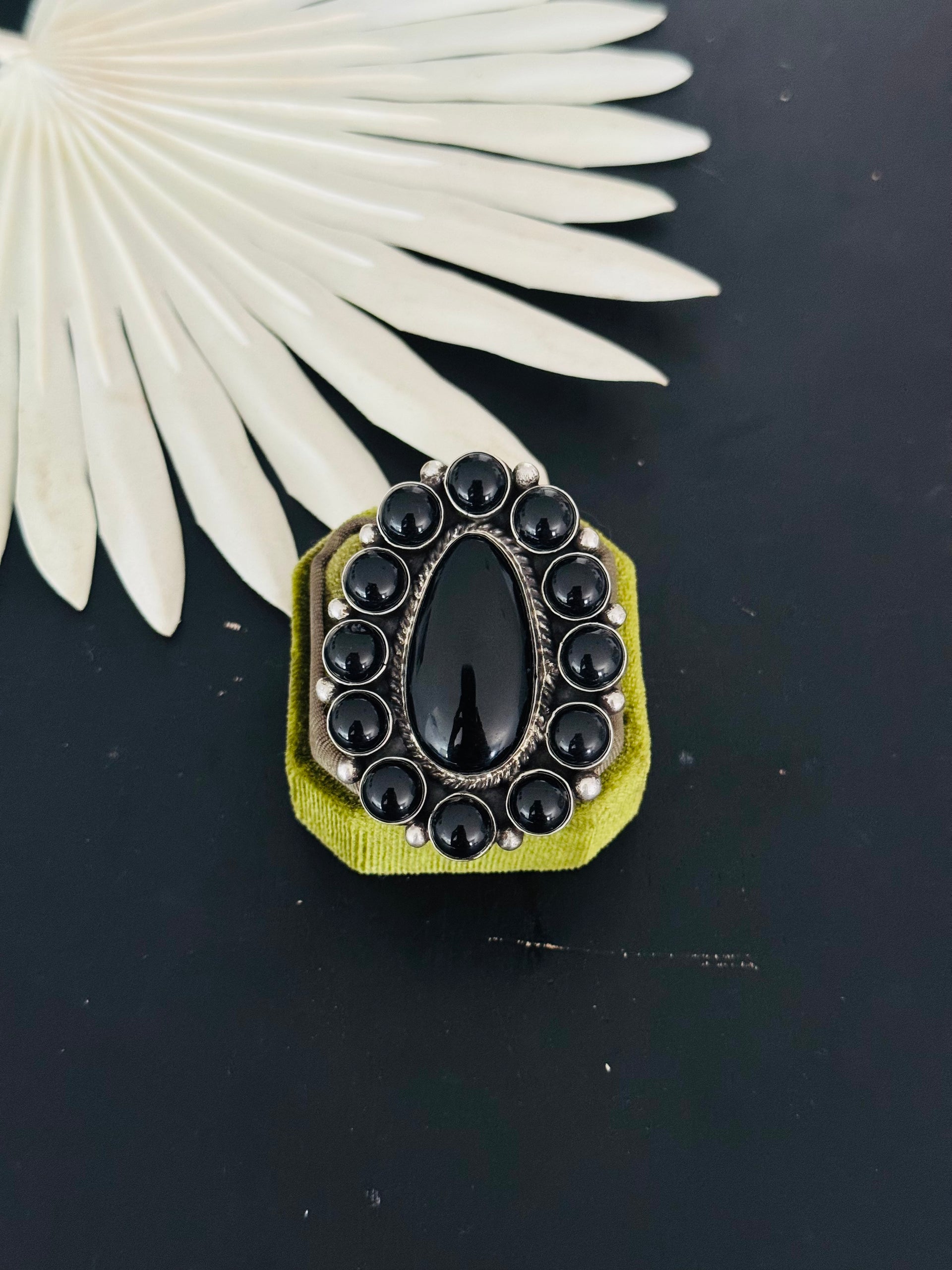 Sheila Becenti Onyx & Sterling Silver Adjustable Cluster Ring