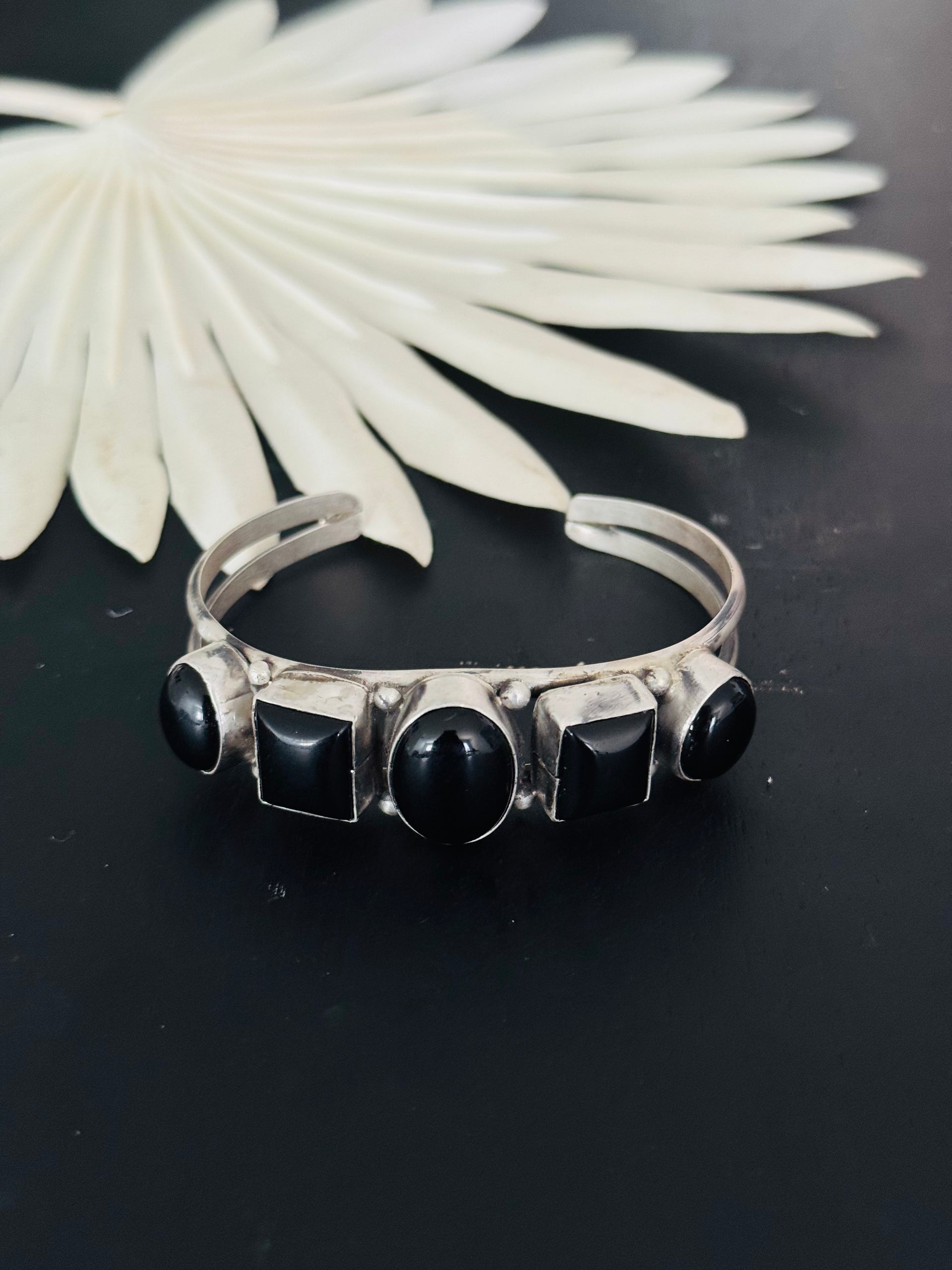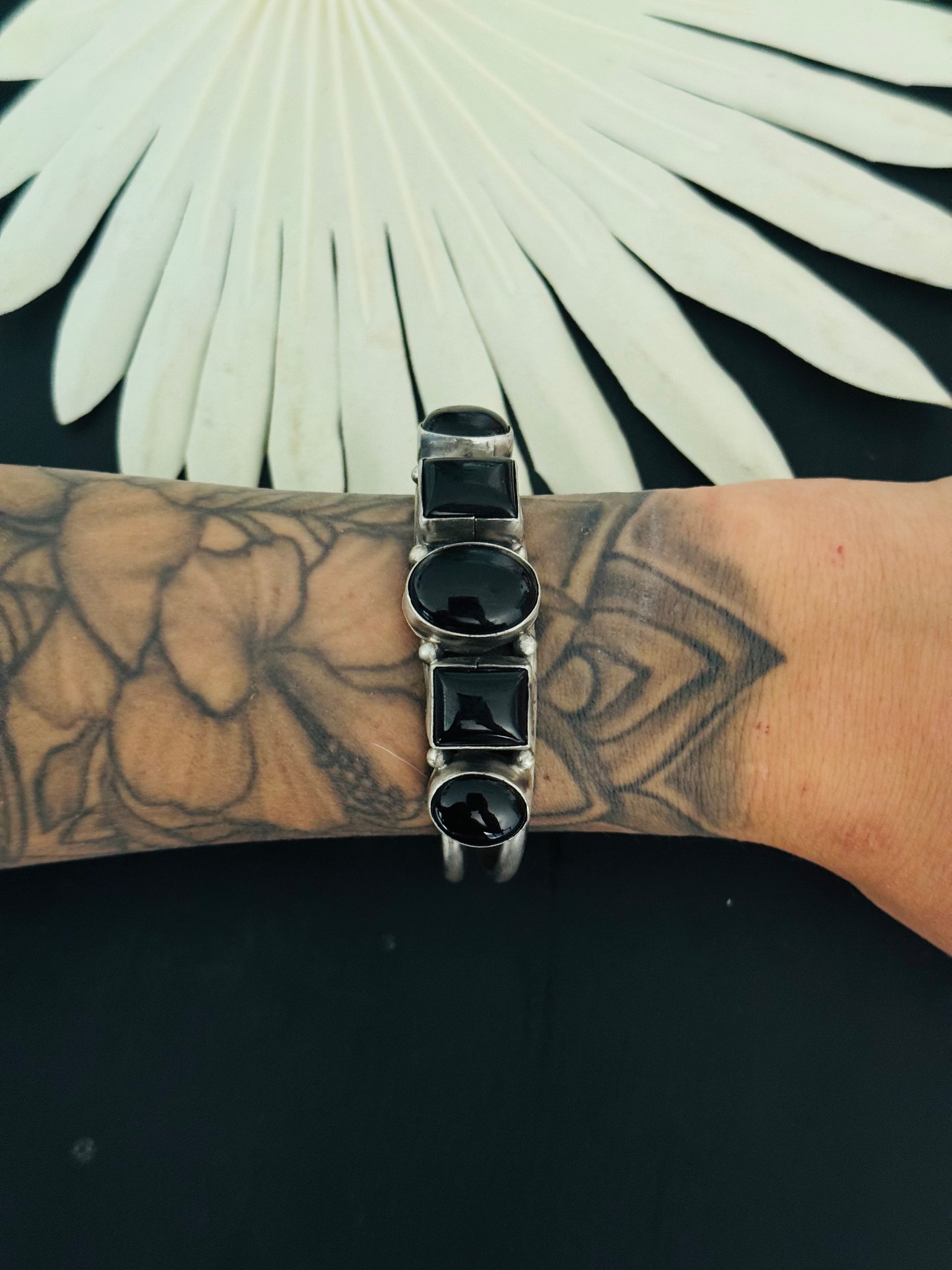 Navajo Made Onyx & Sterling Silver Cuff Bracelet
