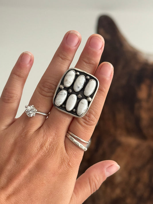 Navajo Made Onyx & Sterling Silver Cluster Ring Size 6.75