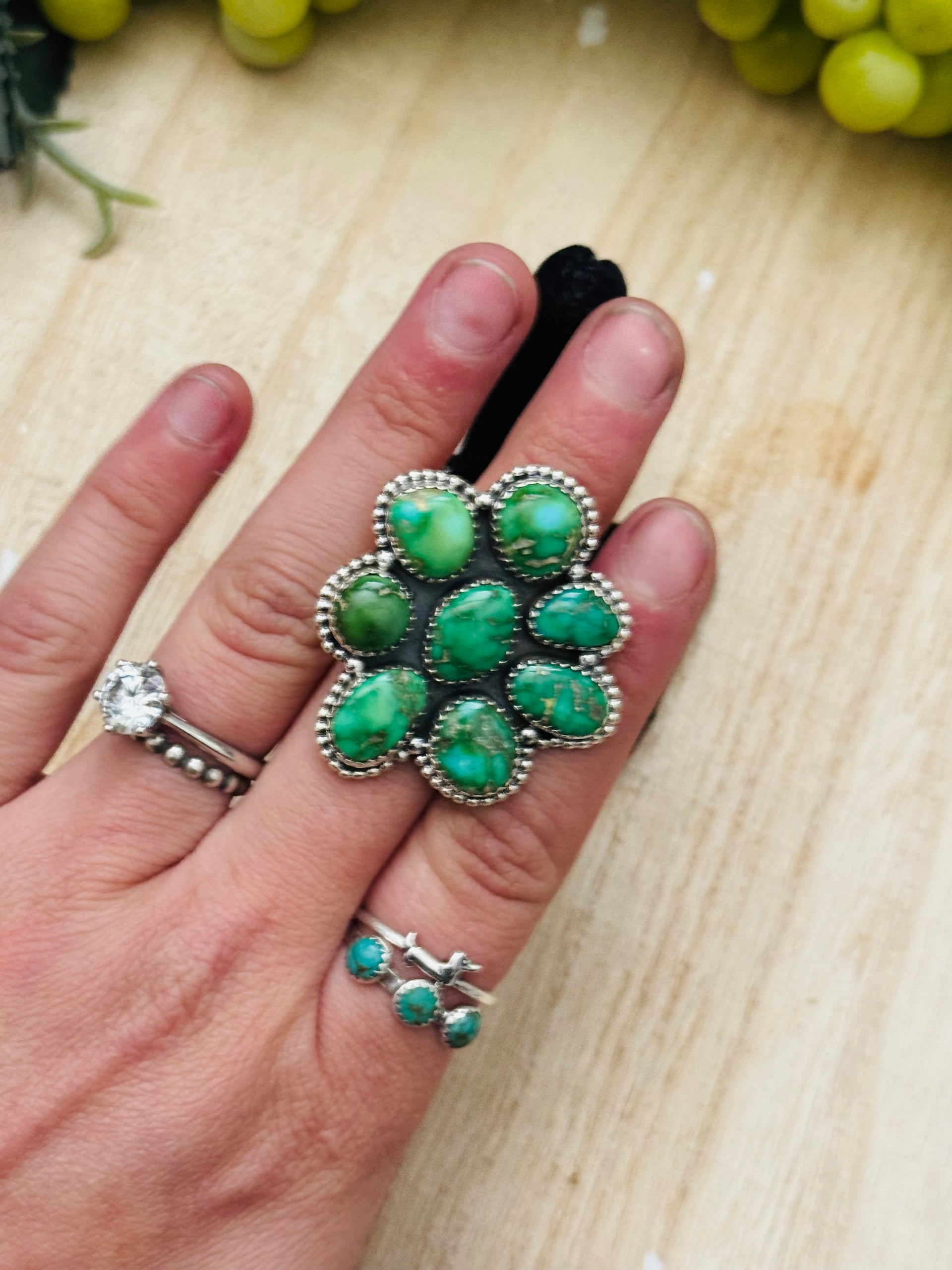 Sam Yellowhair Sonoran Mountain Turquoise & Sterling Silver Ring Size 6.25
