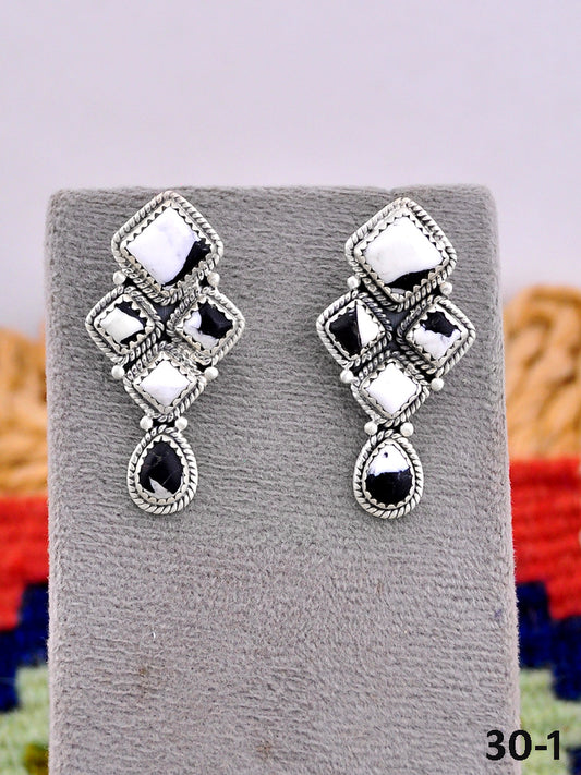 Navajo Made Kingman Turquoise & Sterling Silver Post Dangle Earrings