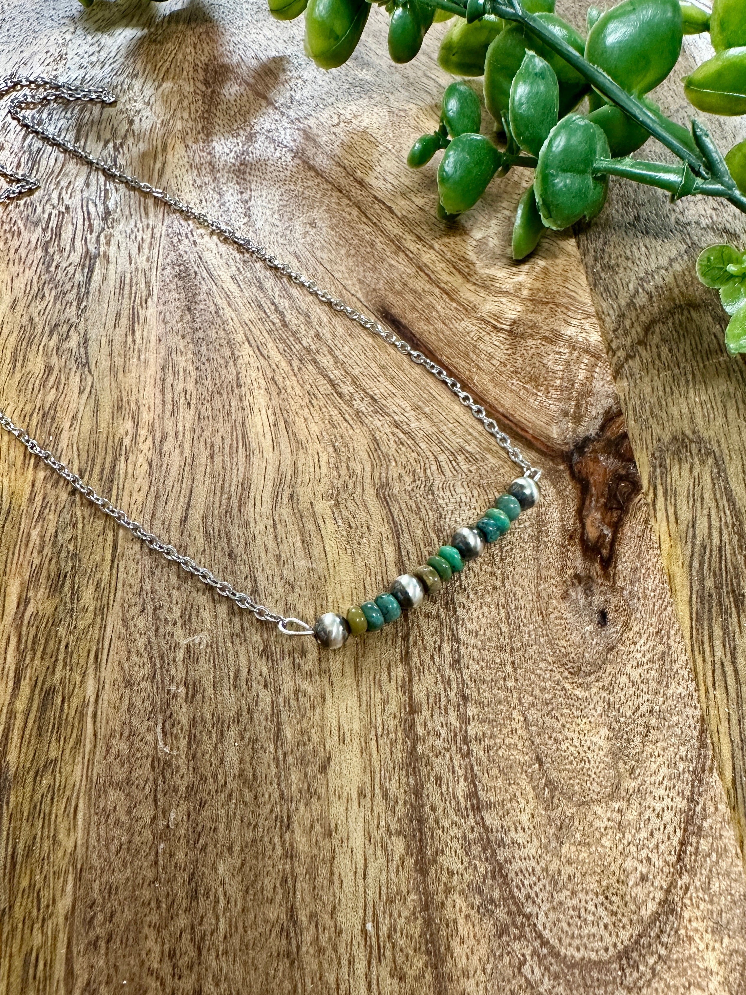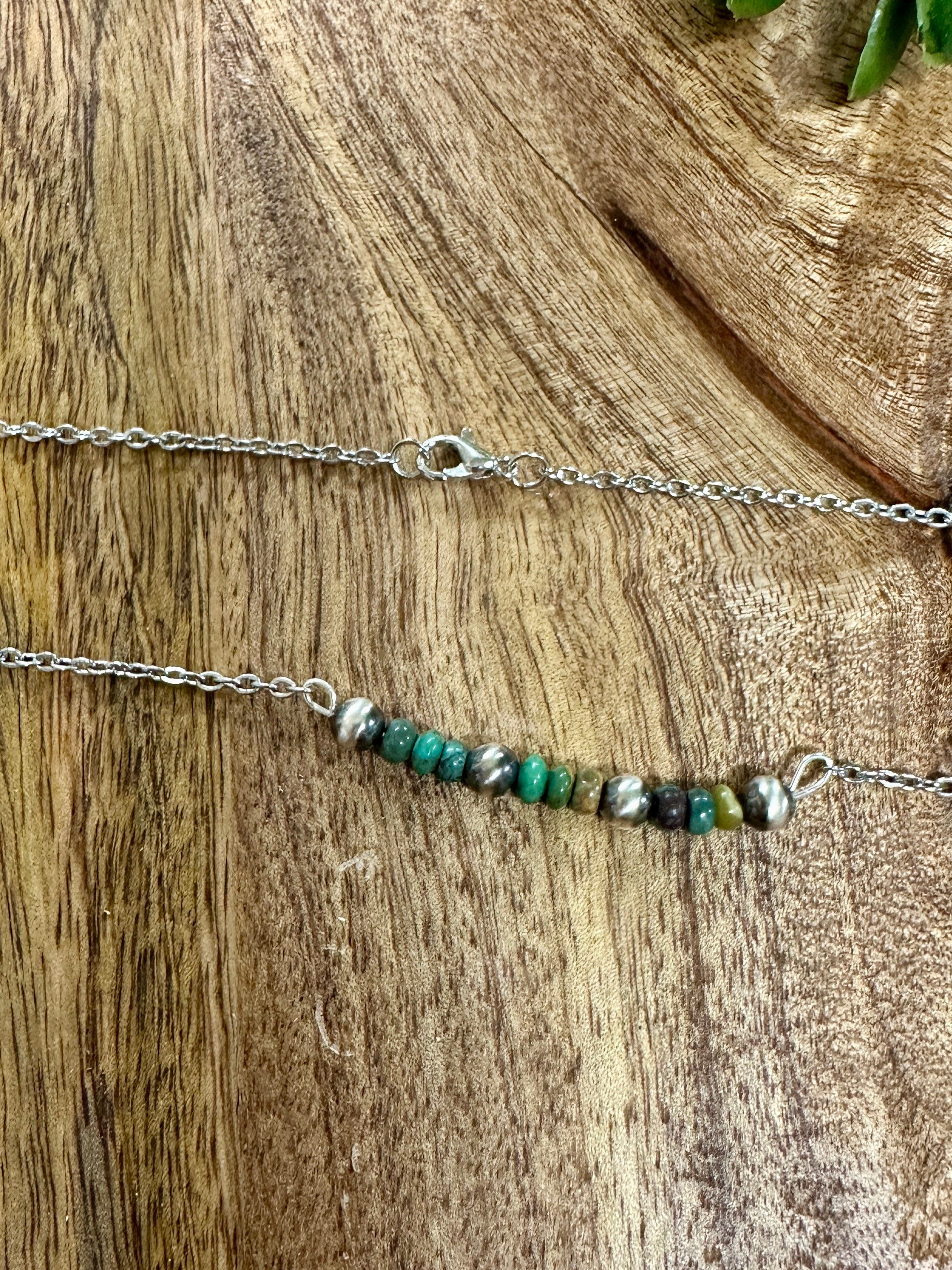 Handmade Kingman Turquoise & Sterling Silver Pearl Necklace. Measures just over 18 inches long.