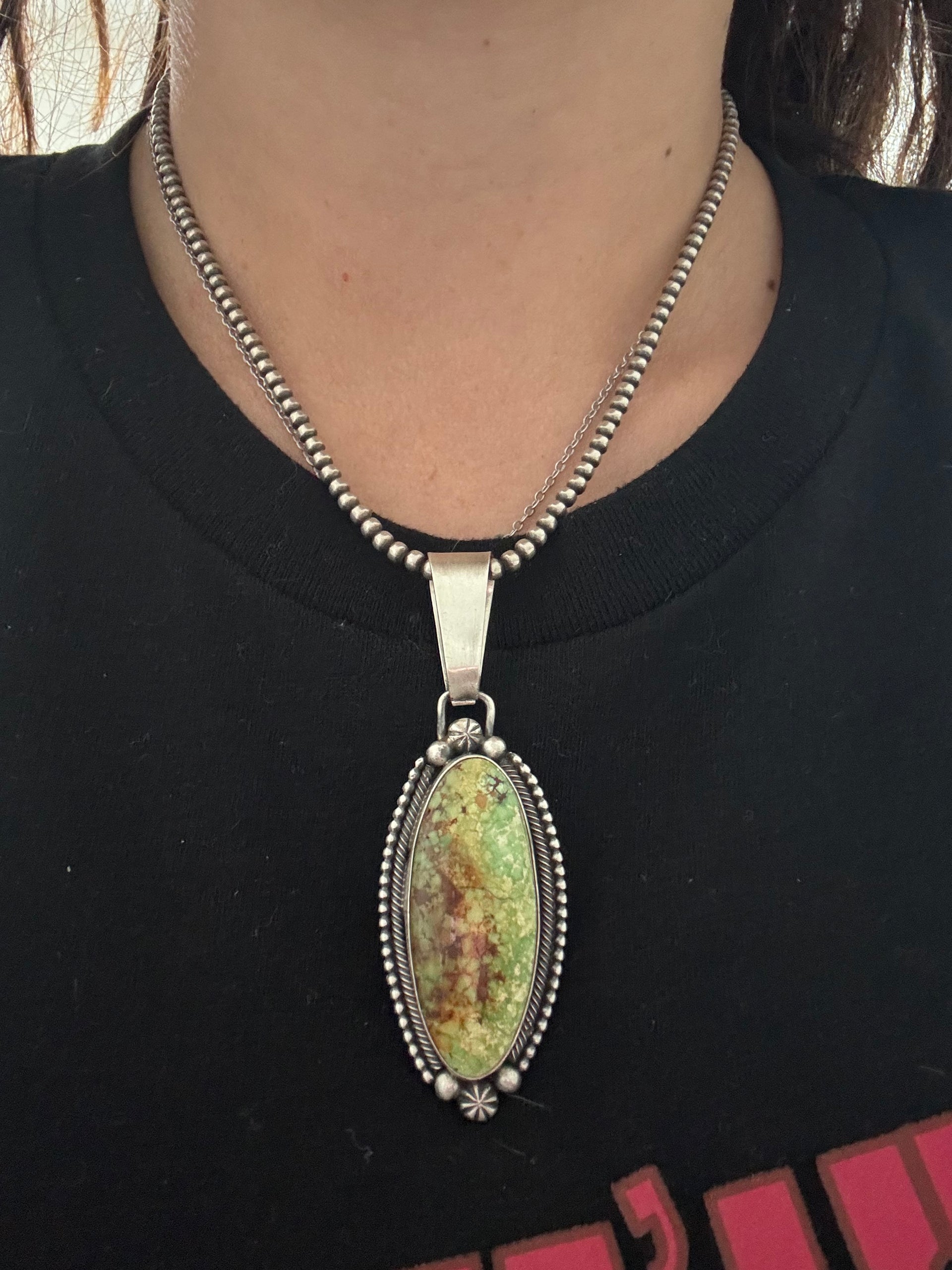 Navajo Made Royston Turquoise & Sterling Silver Pendant