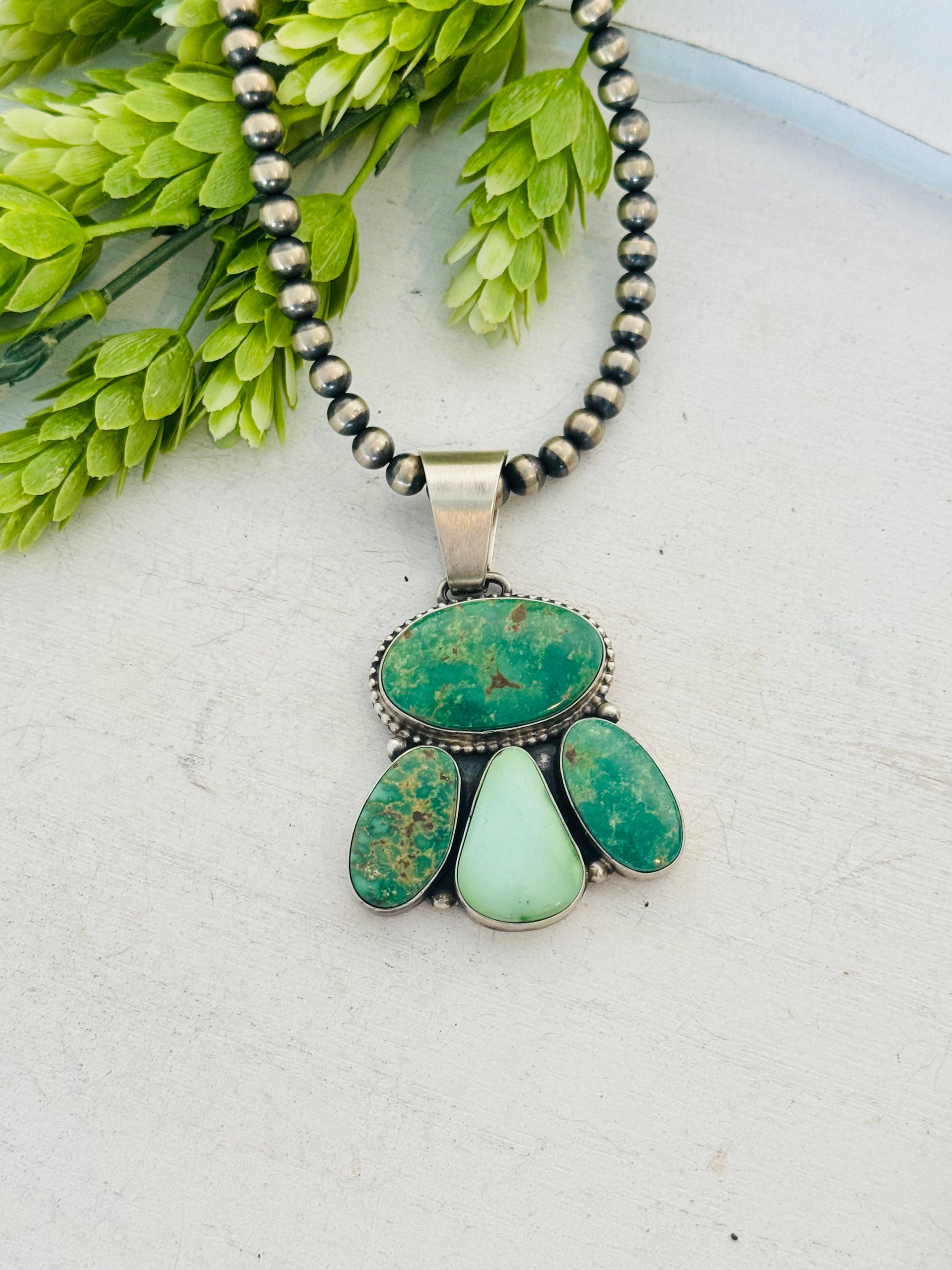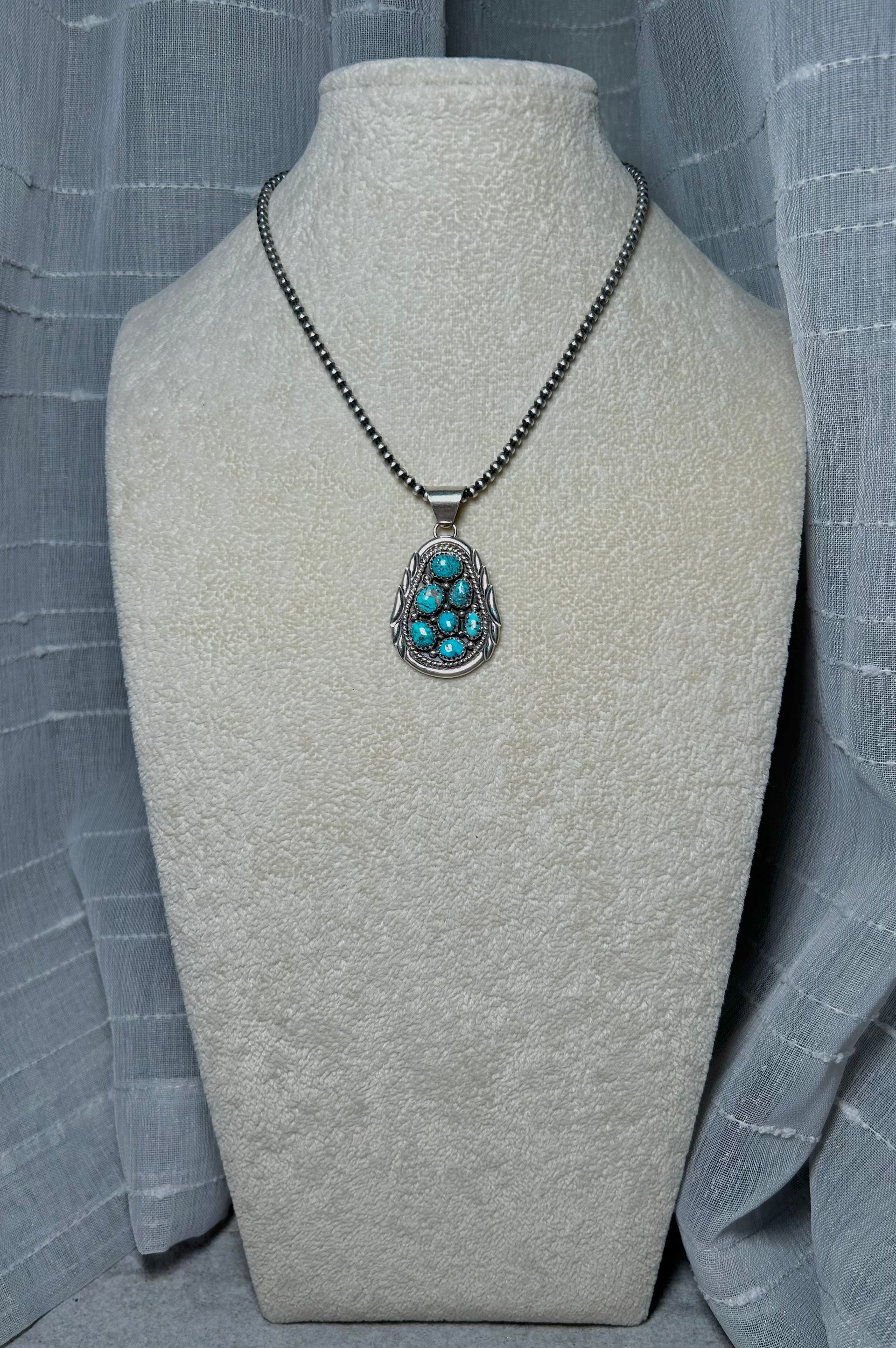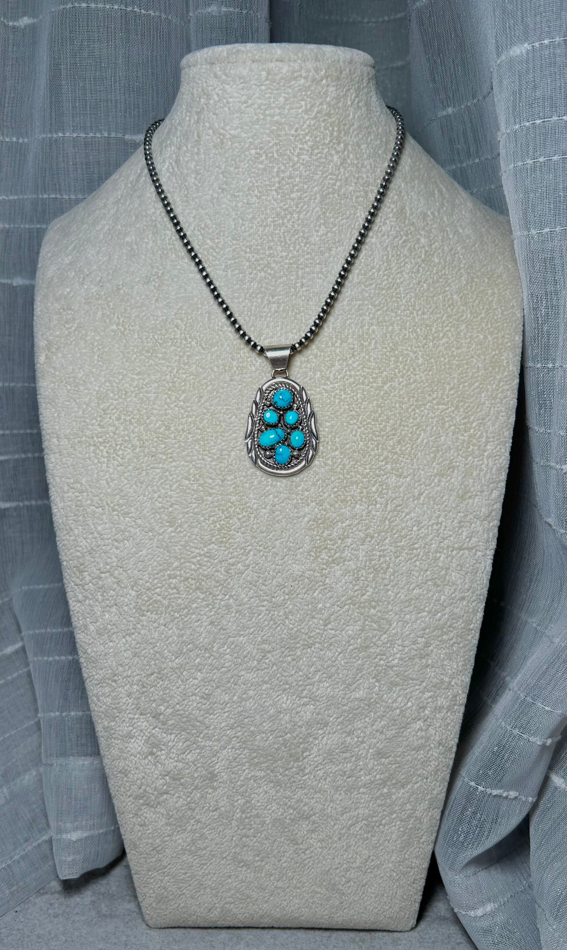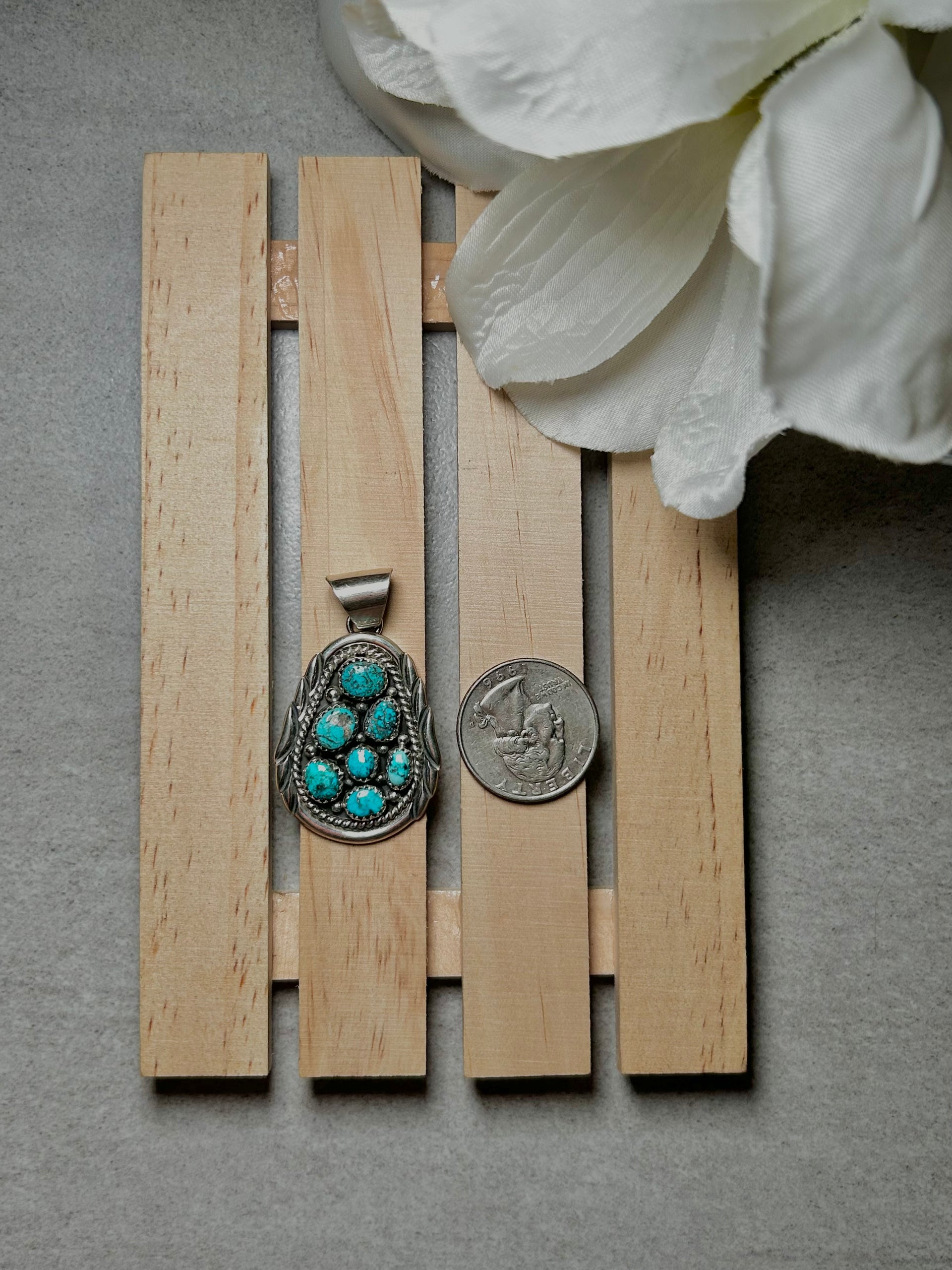 Navajo Made Kingman Turquoise & Sterling Silver Cluster Pendant