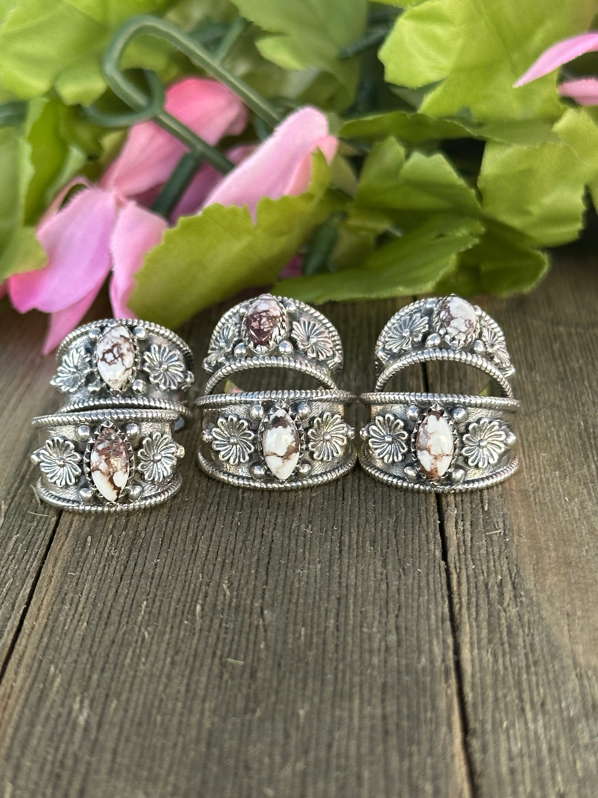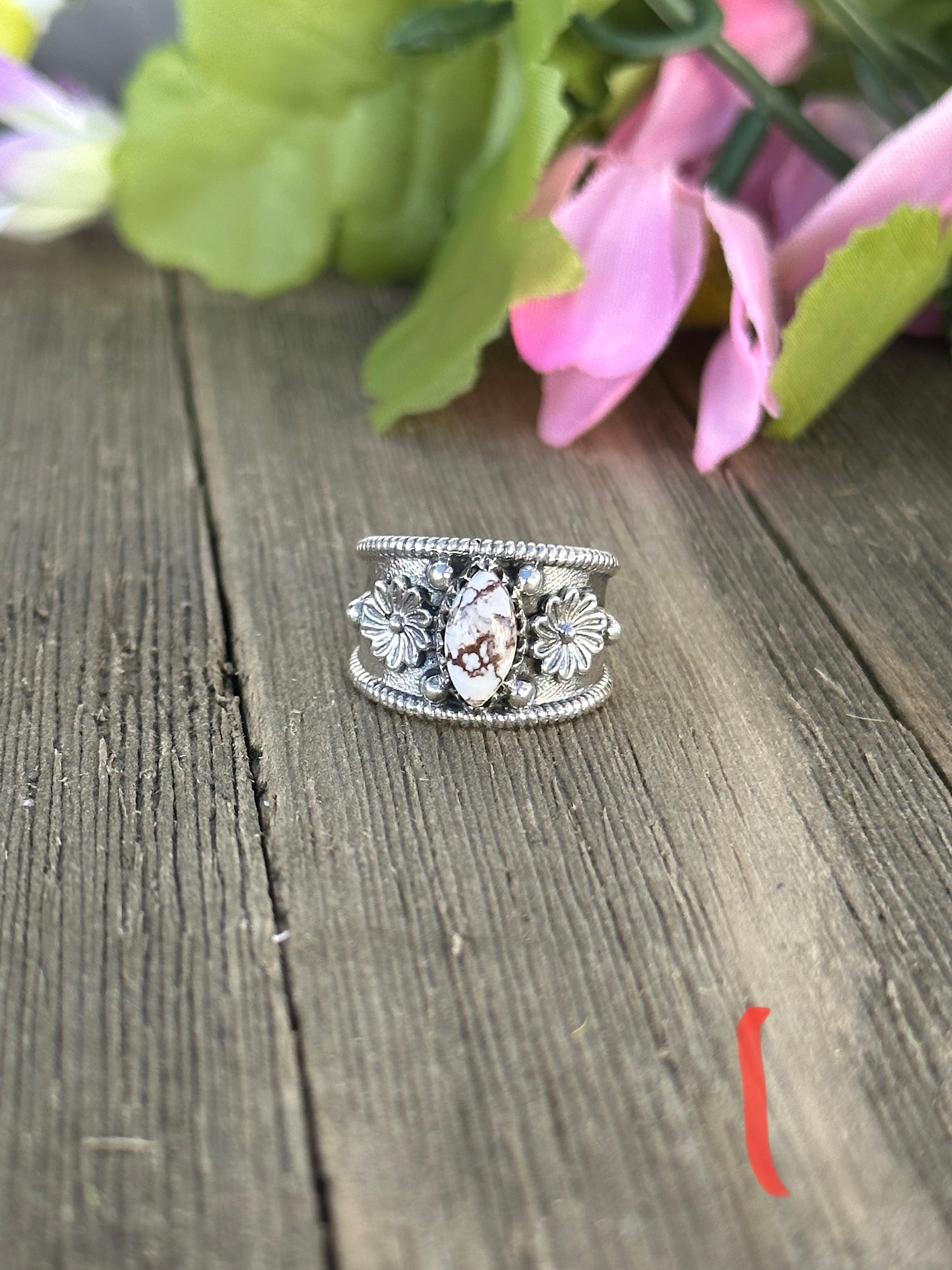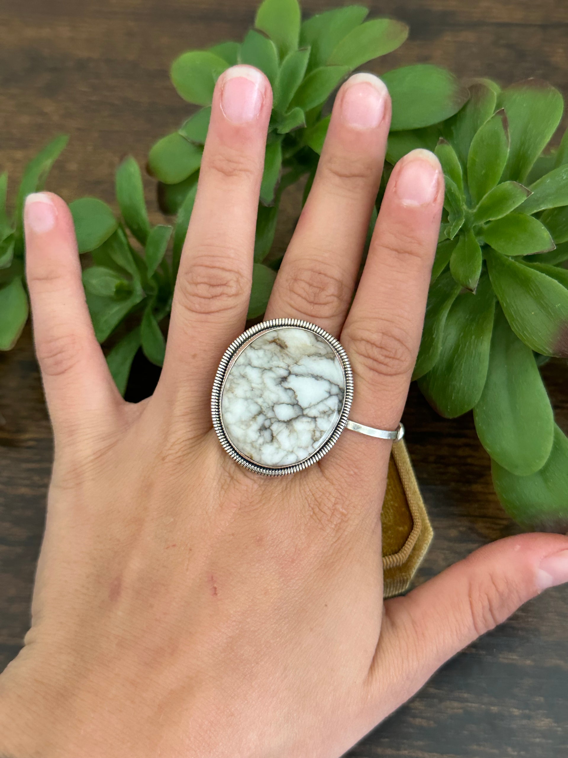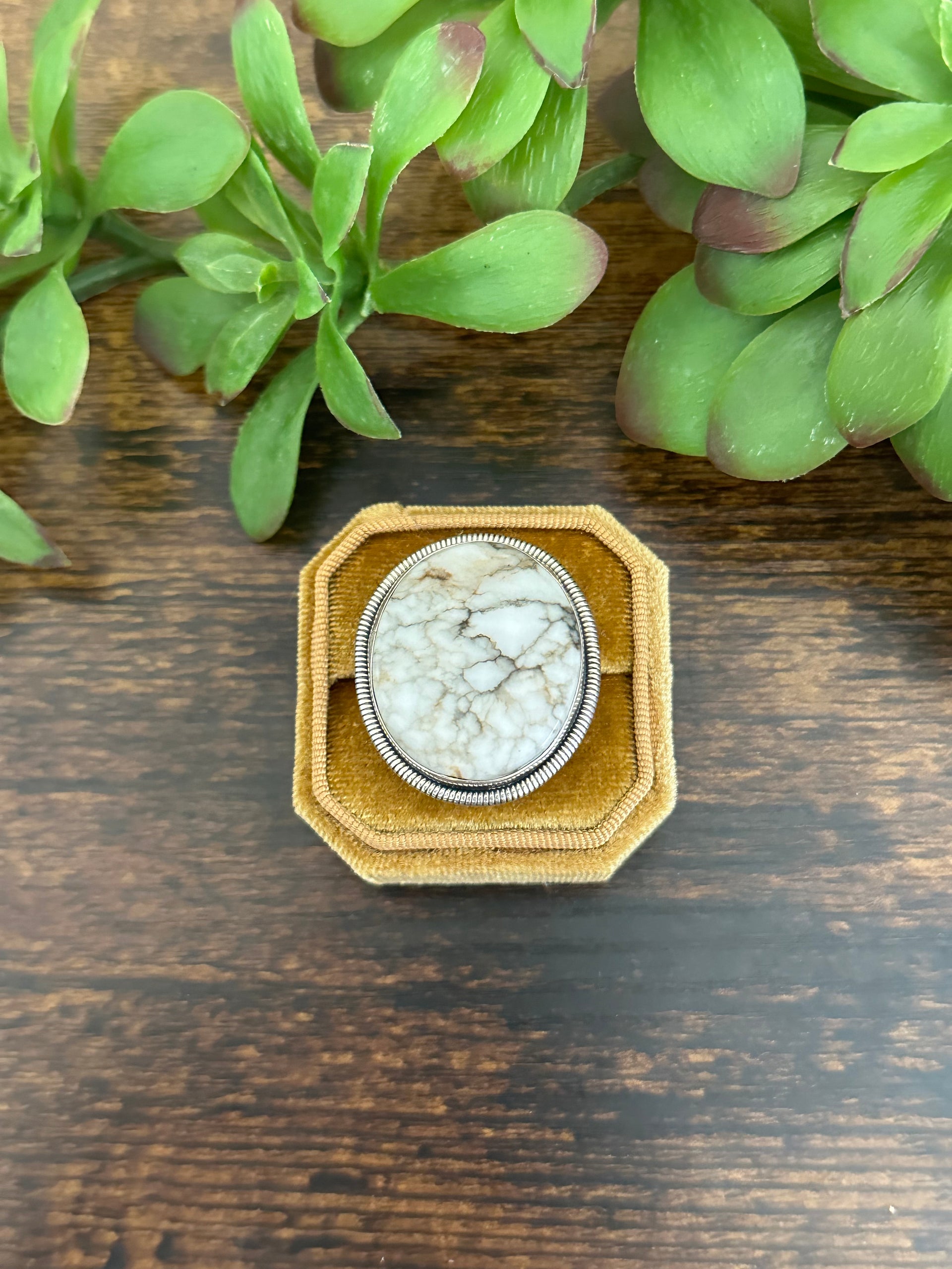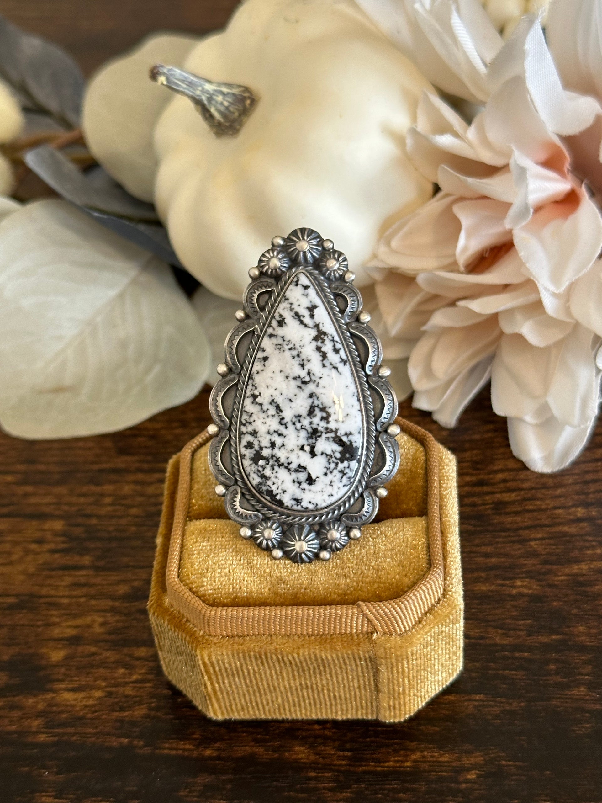 Navajo White Buffalo & Onyx Sterling Silver Inlay Ring Size 6.5