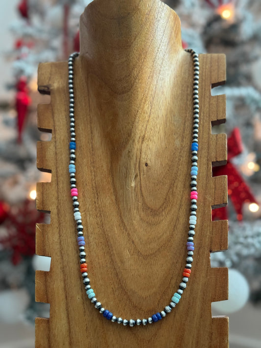 Navajo Made Wild Horse & Sterling Silver Cluster Necklace