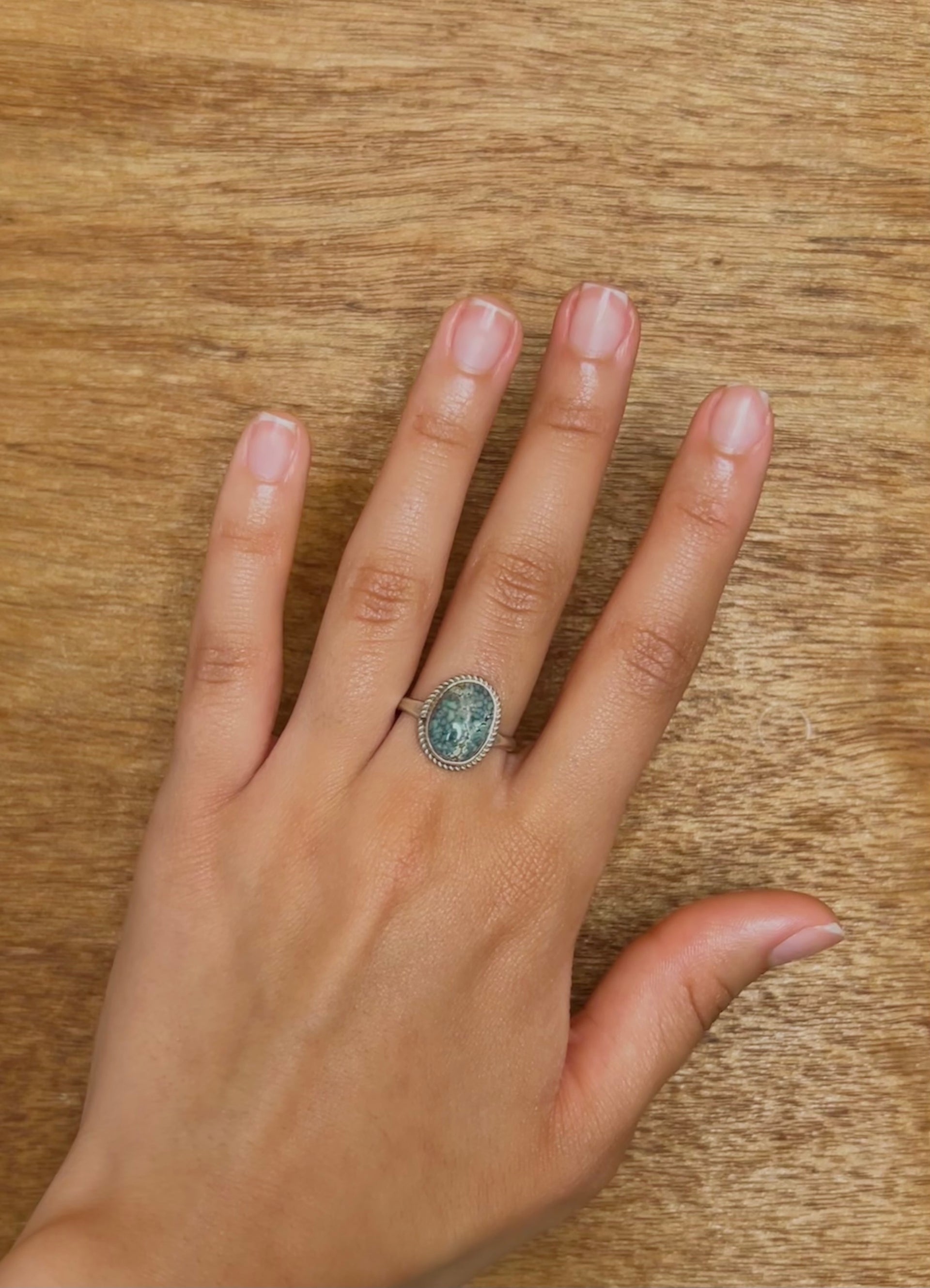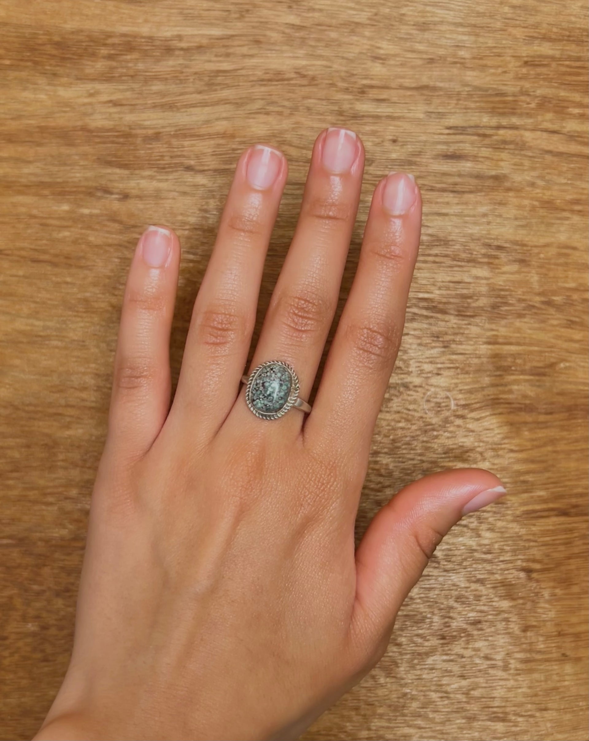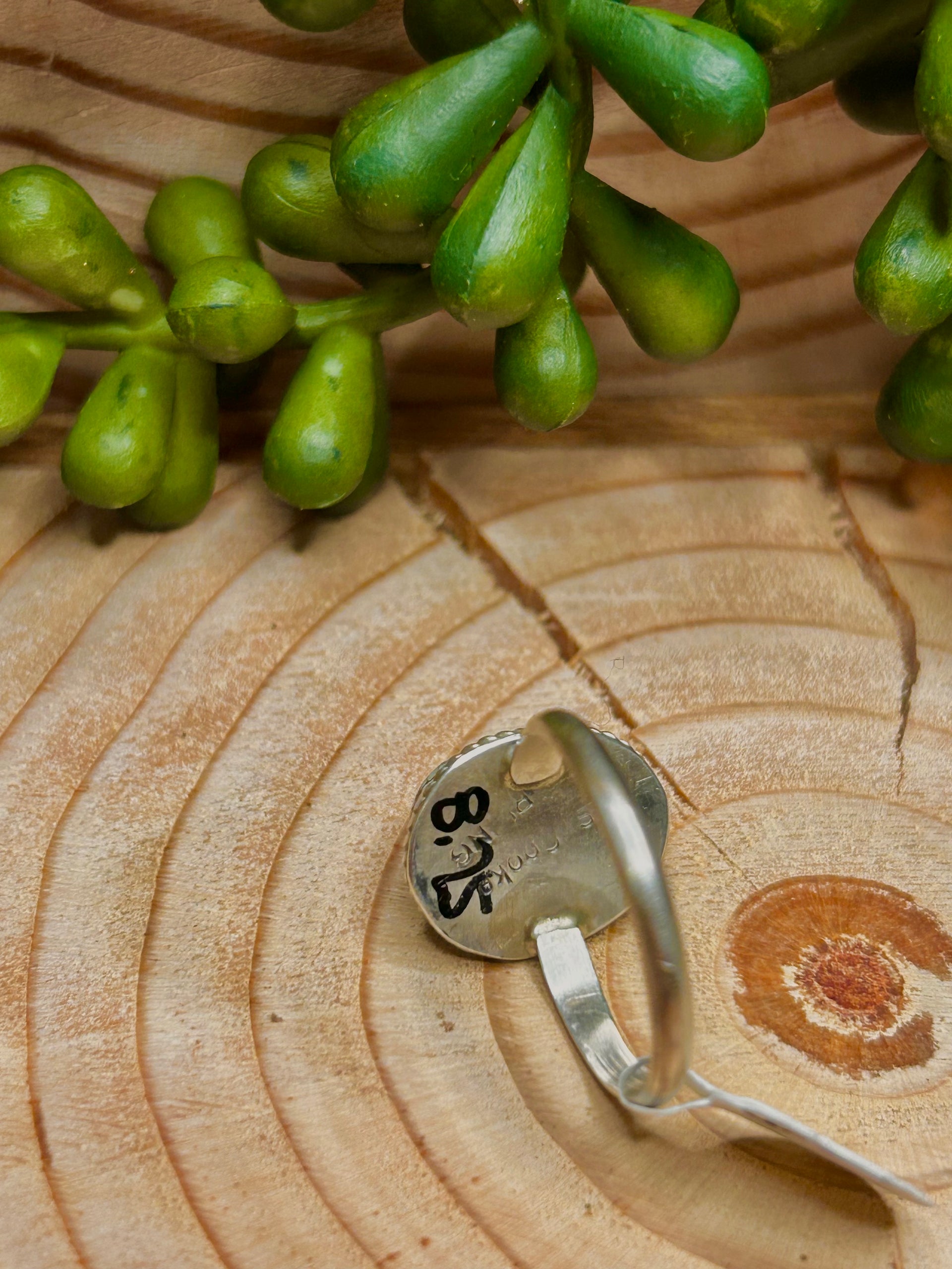 Navajo Made #8 Turquoise & Sterling Silver Ring Size 6.5