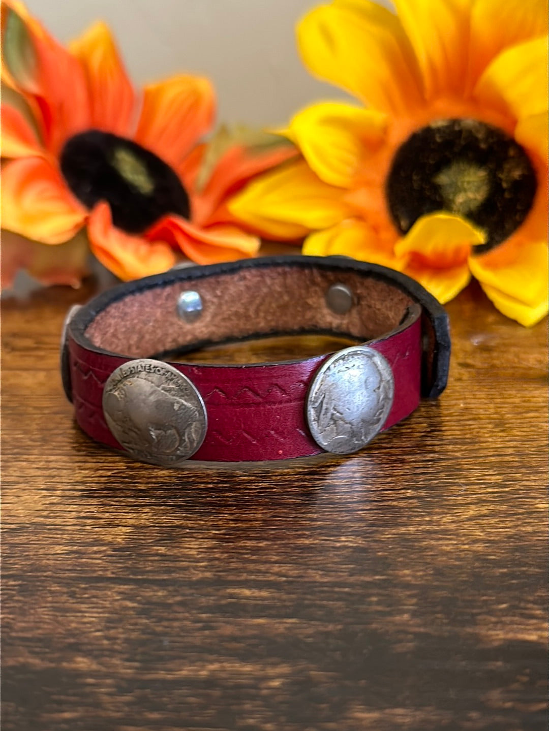 Navajo Made Leather & Sterling Silver Coin Bracelet