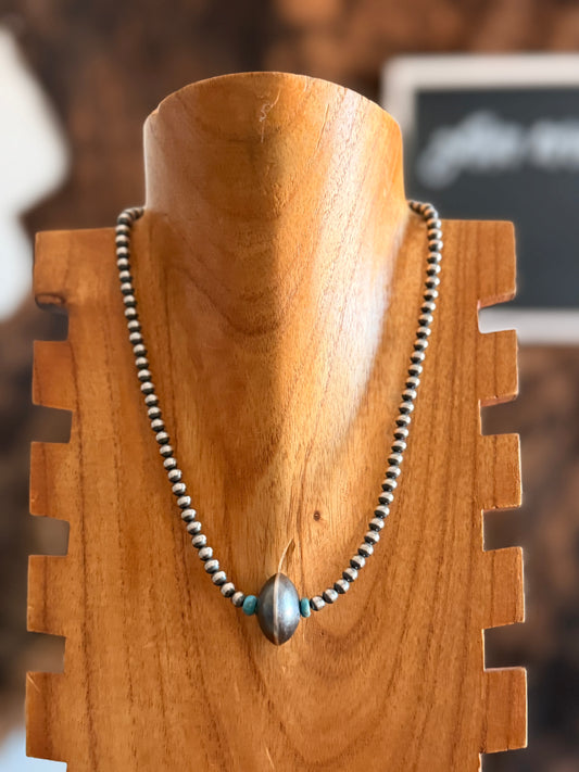 Navajo Made Red Coral & Sterling Silver Necklace