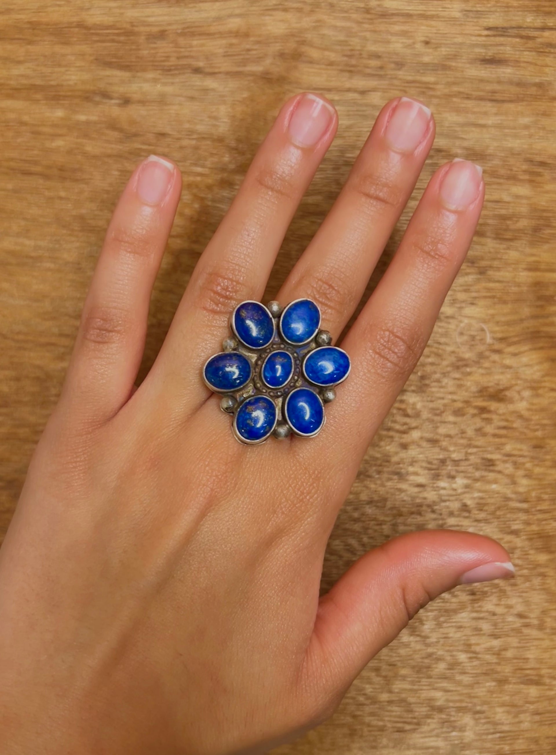 Navajo Made Lapis & Sterling Sliver Ring Size 6.75
