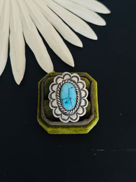 Southwest Handmade Black Jack Turquoise with South Hill & Sterling Silver Adjustable Ring