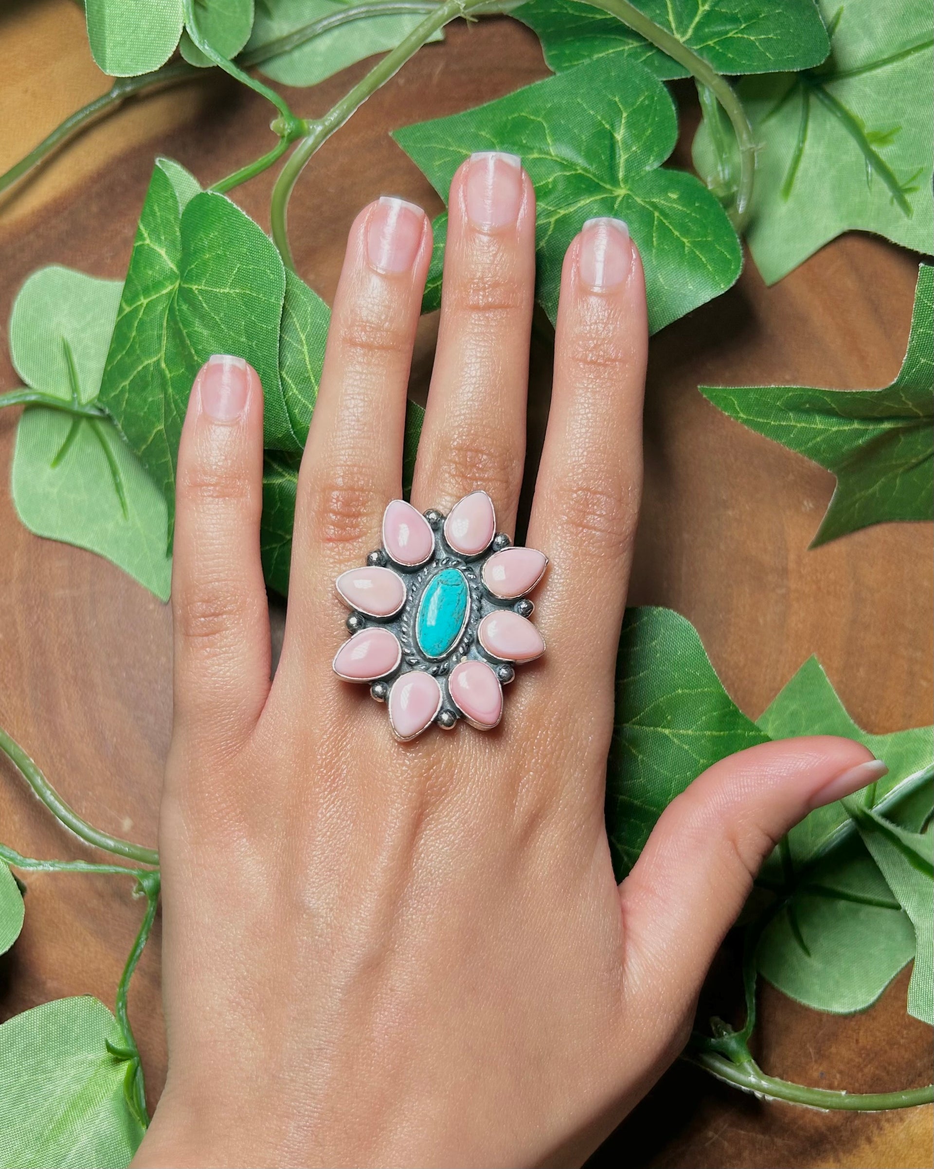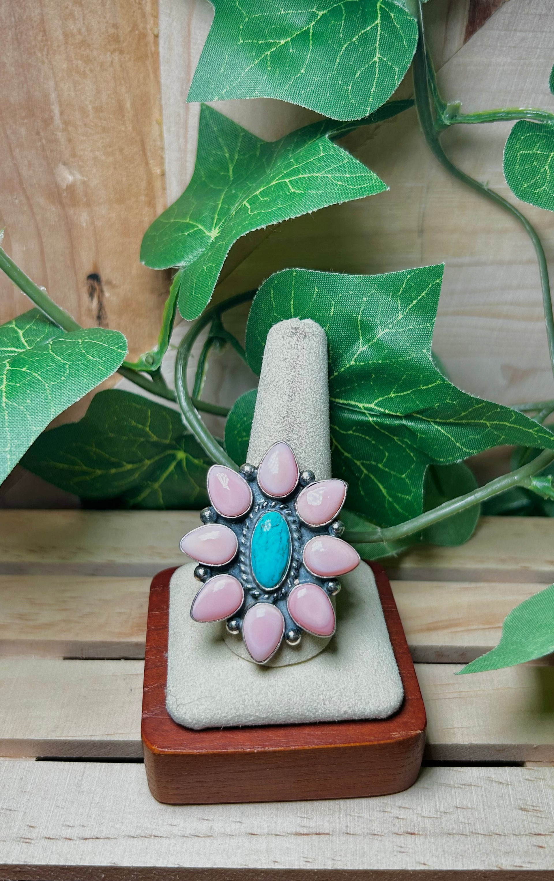 Southwest Made Mother of Pearl & Sterling Silver Adjustable Cluster Ring