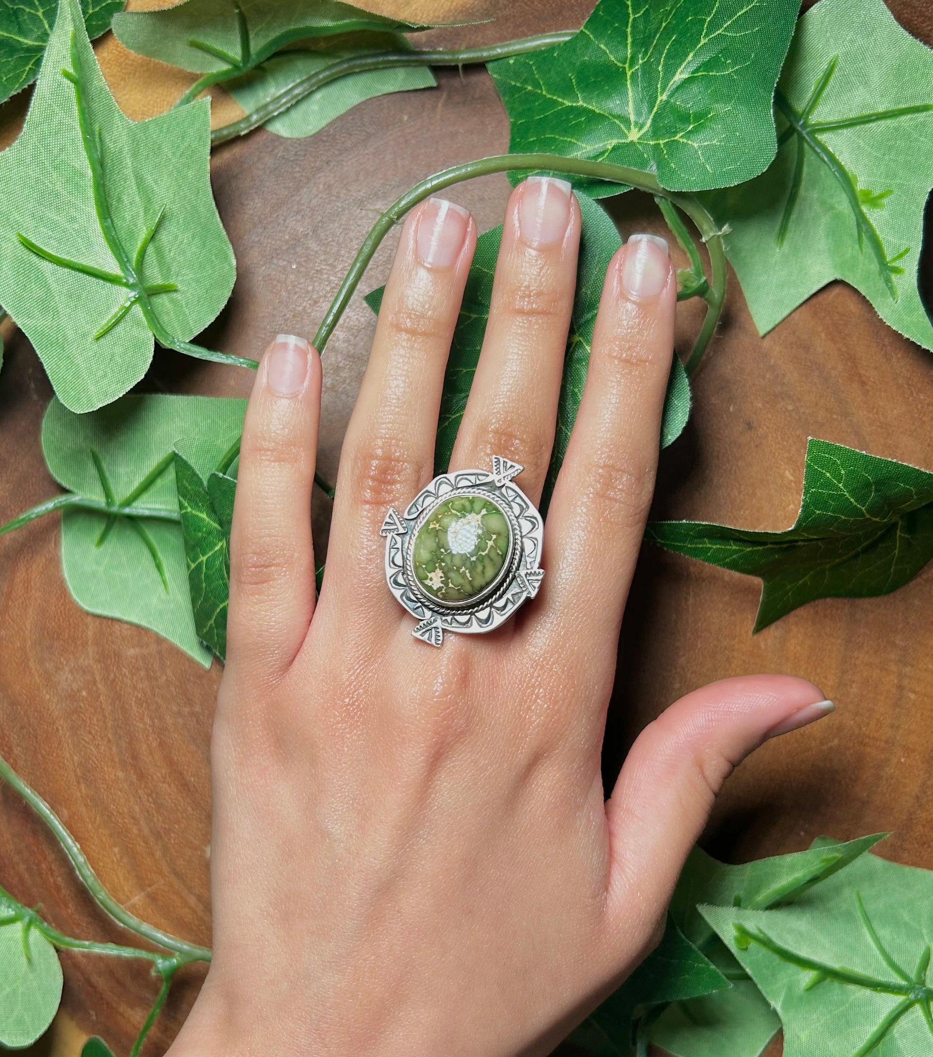 Southwest Handmade Golden Hills with Emerald Valley & Sterling Silver Adjustable Ring