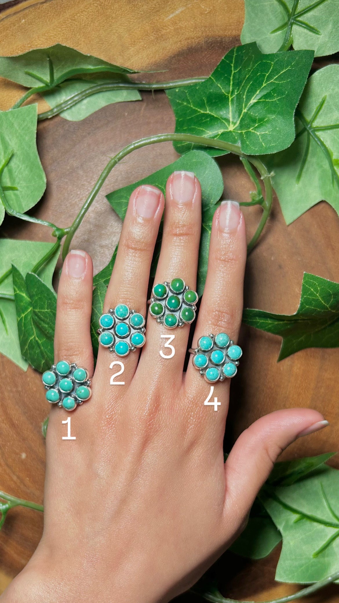 Blaine Yellowhorse Mixed Turquoise & Sterling Silver Cluster Ring Size 6