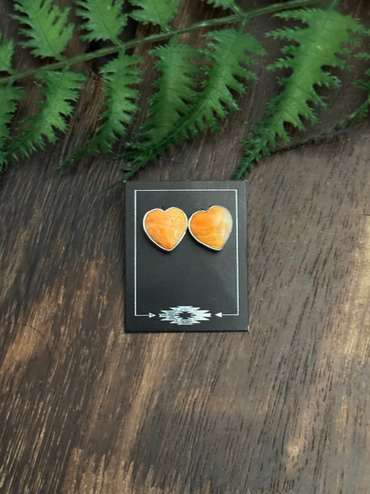 Southwest Made White Buffalo & Sterling Silver Post Heart Earrings