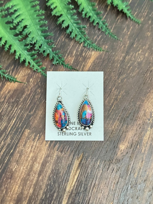 Southwest Made White Buffalo & Sterling Silver Post Dangle Earrings