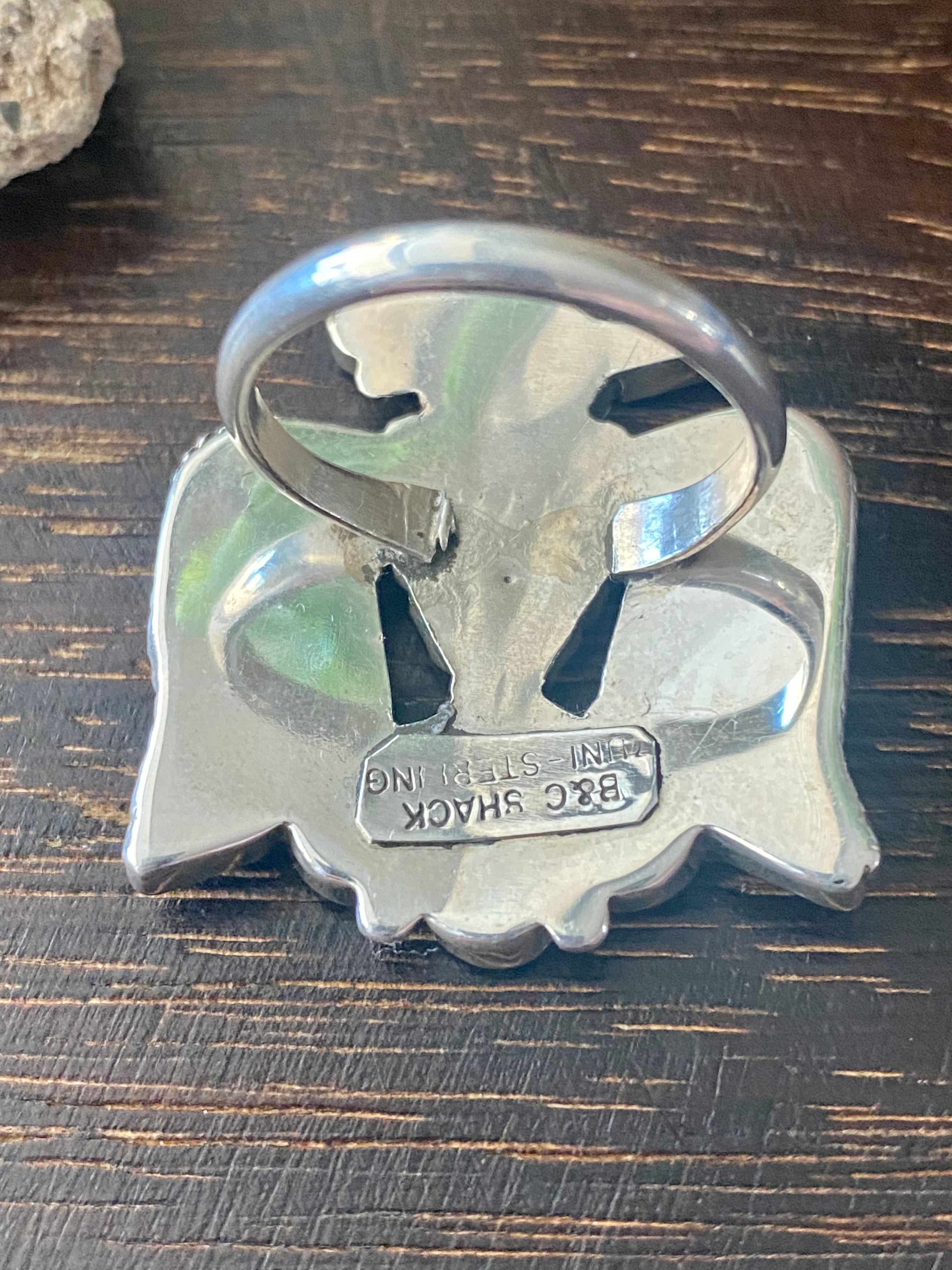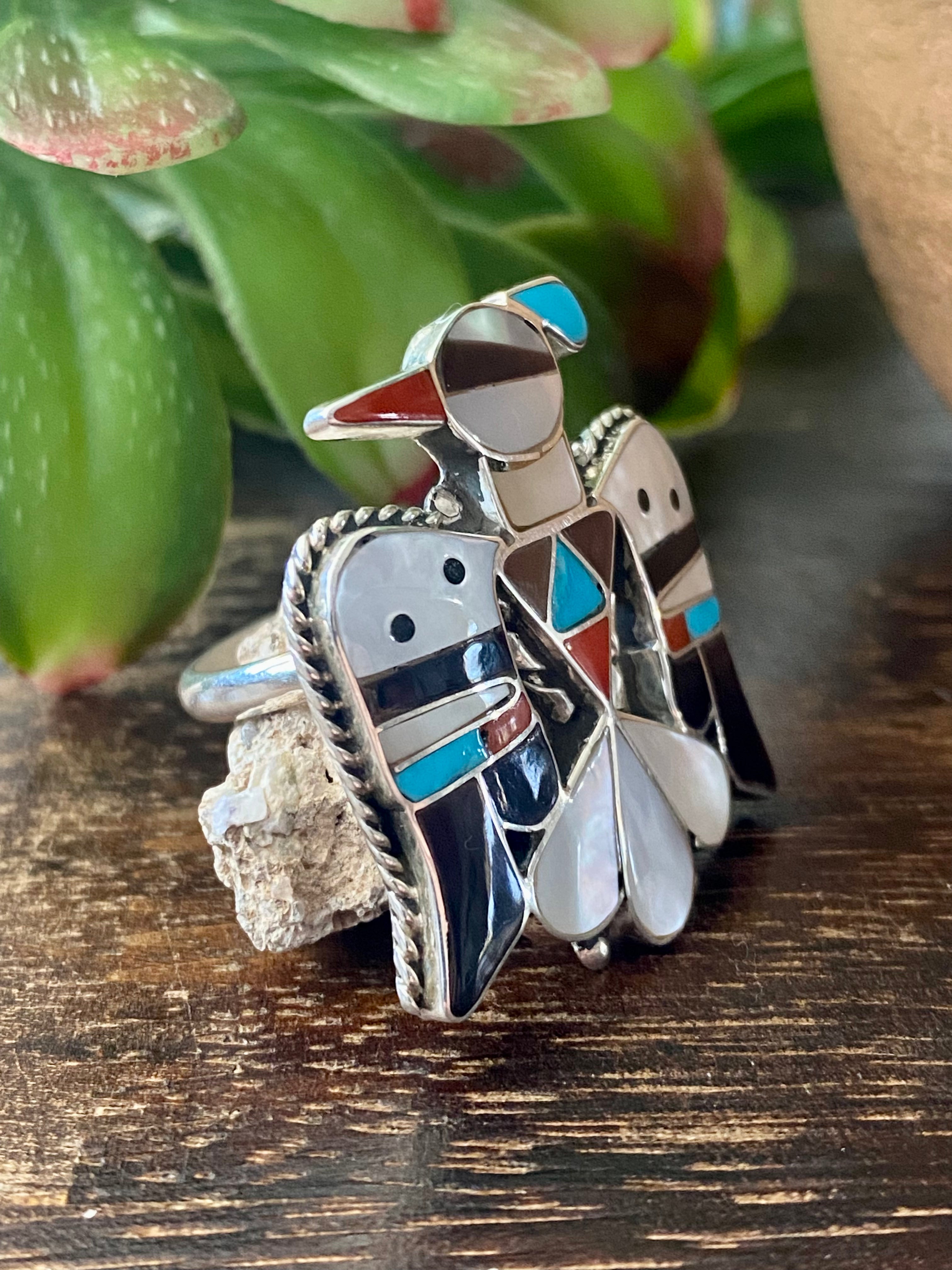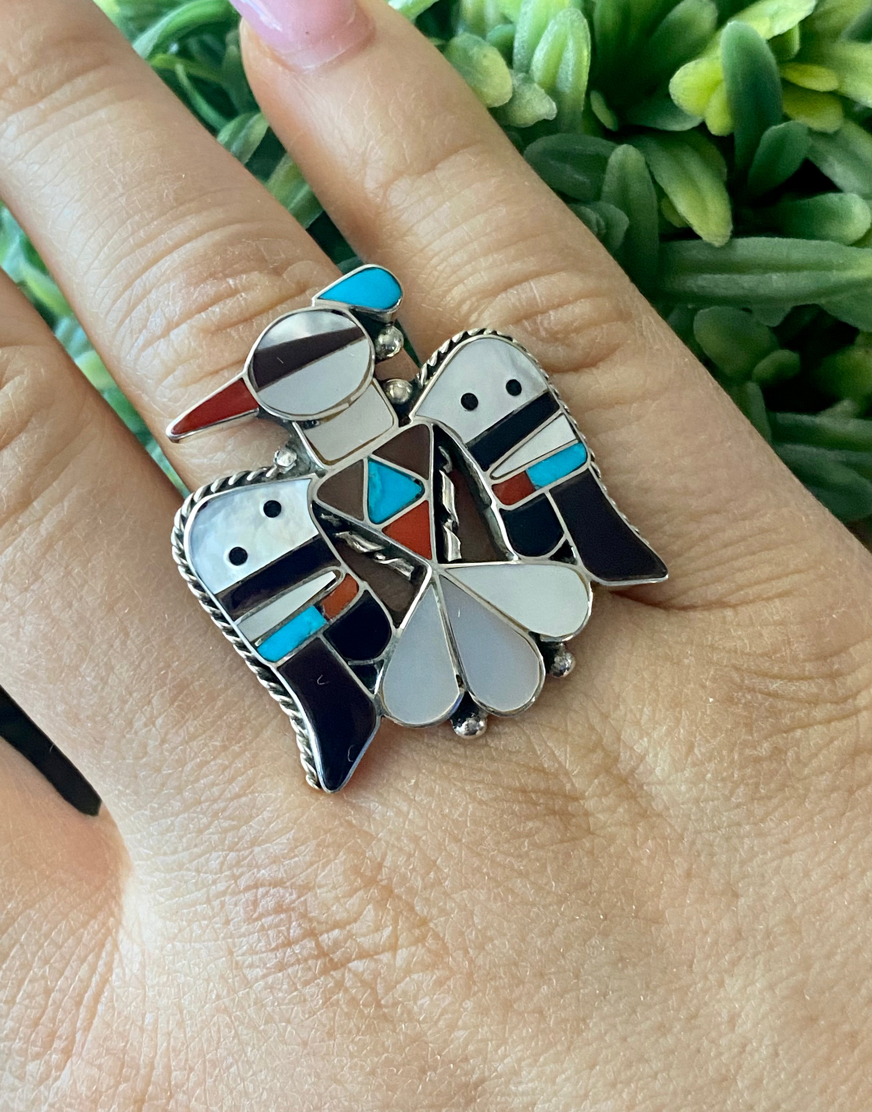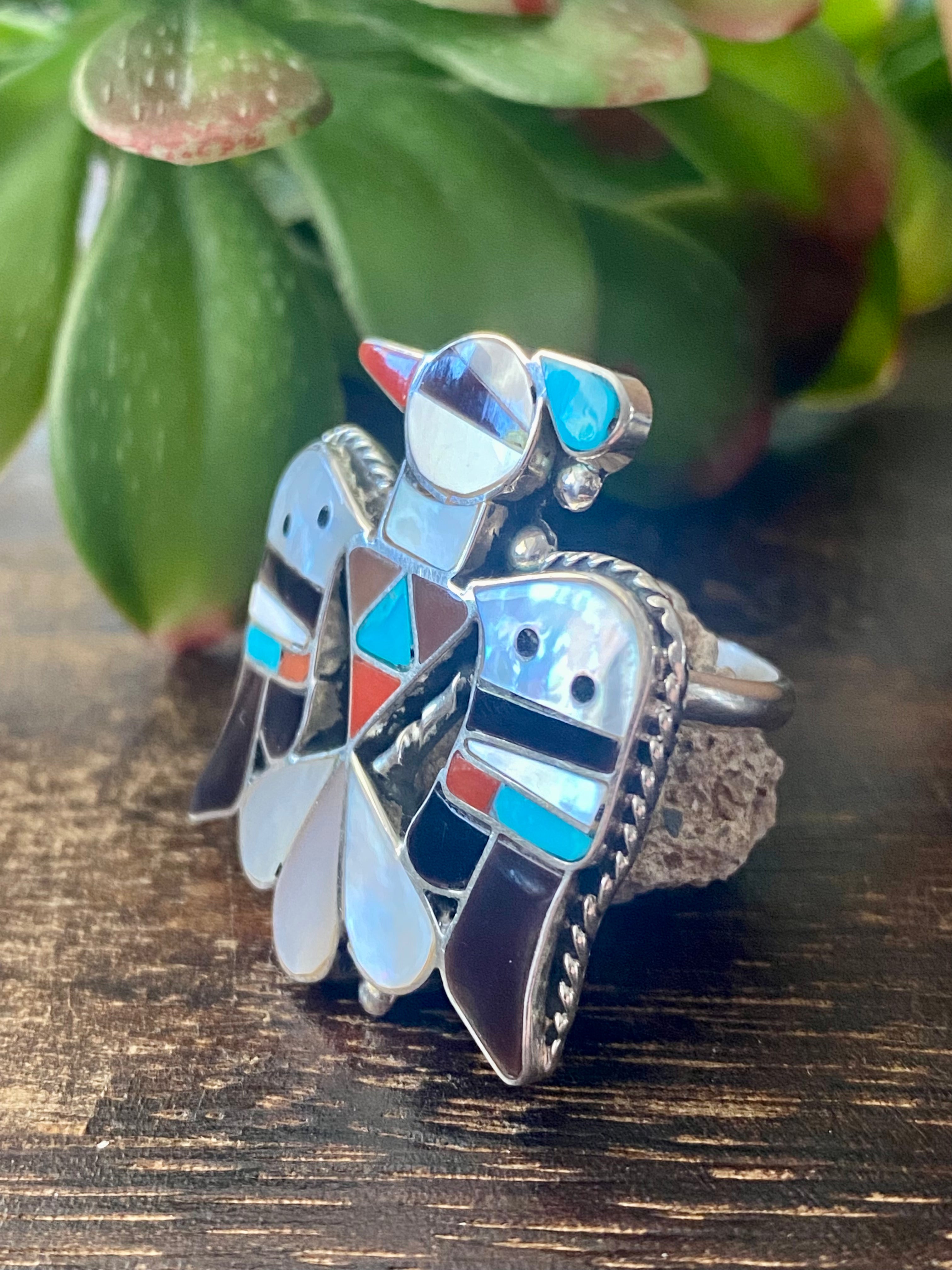 Bobby Shack Multi Stone & Sterling Silver Inlay Thunderbird Ring Size 10.25
