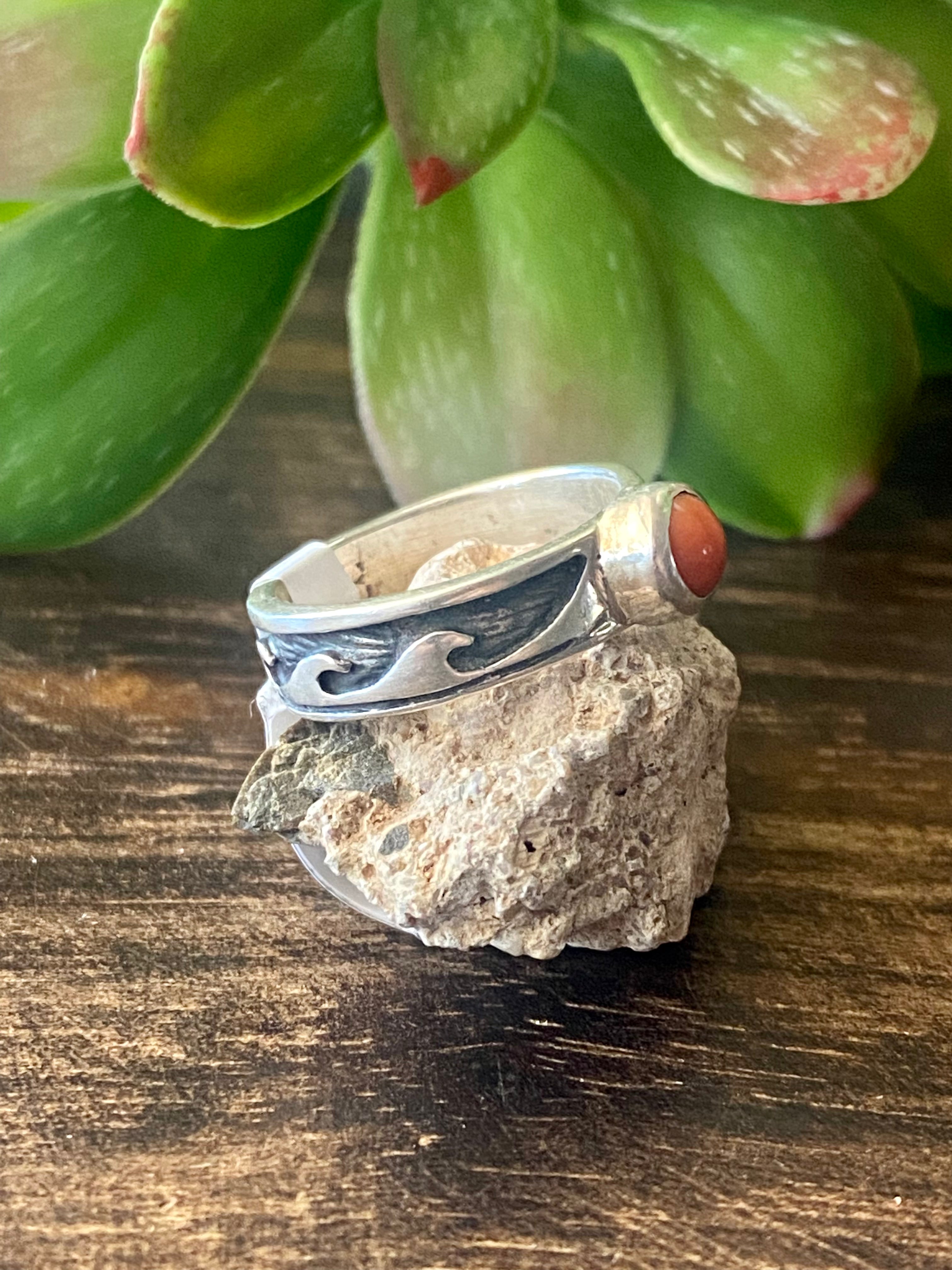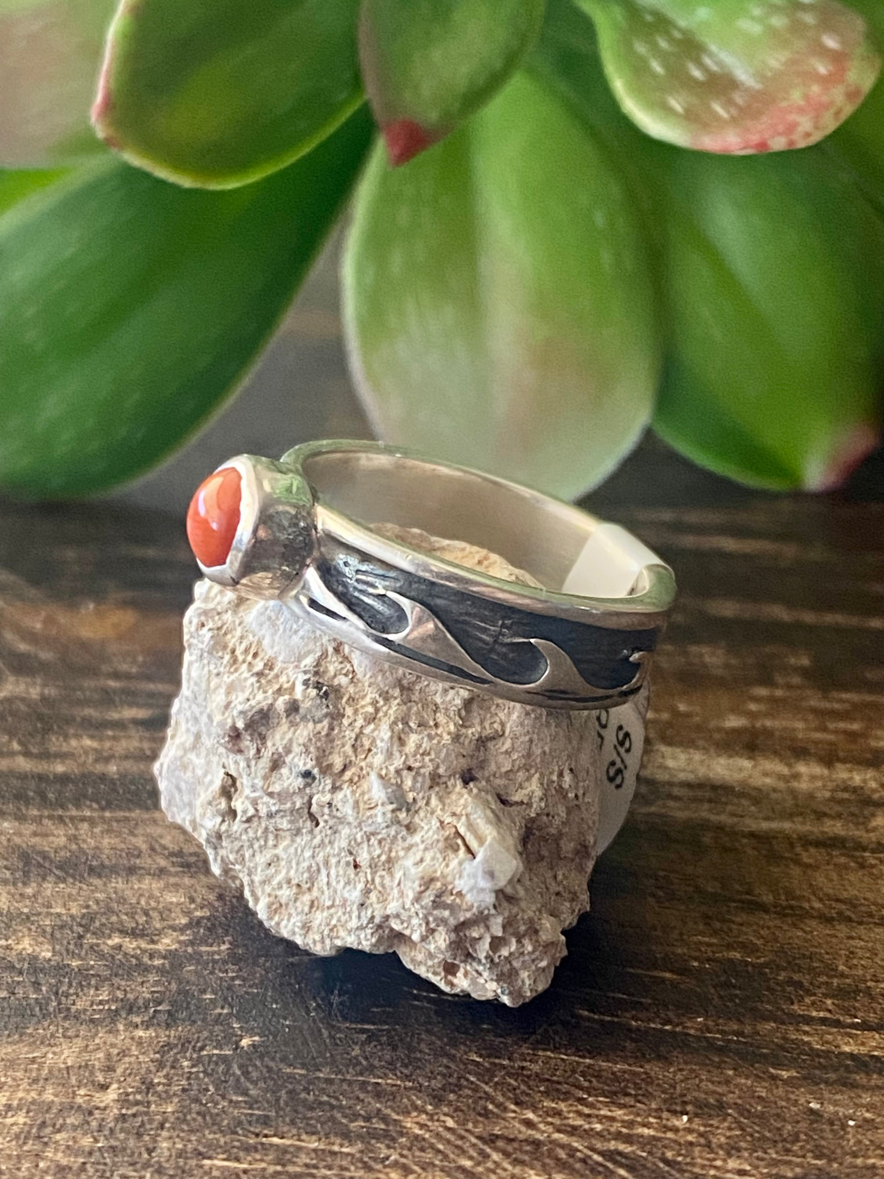 Carson Blackgoat Coral & Sterling Silver Ring Size 5.75