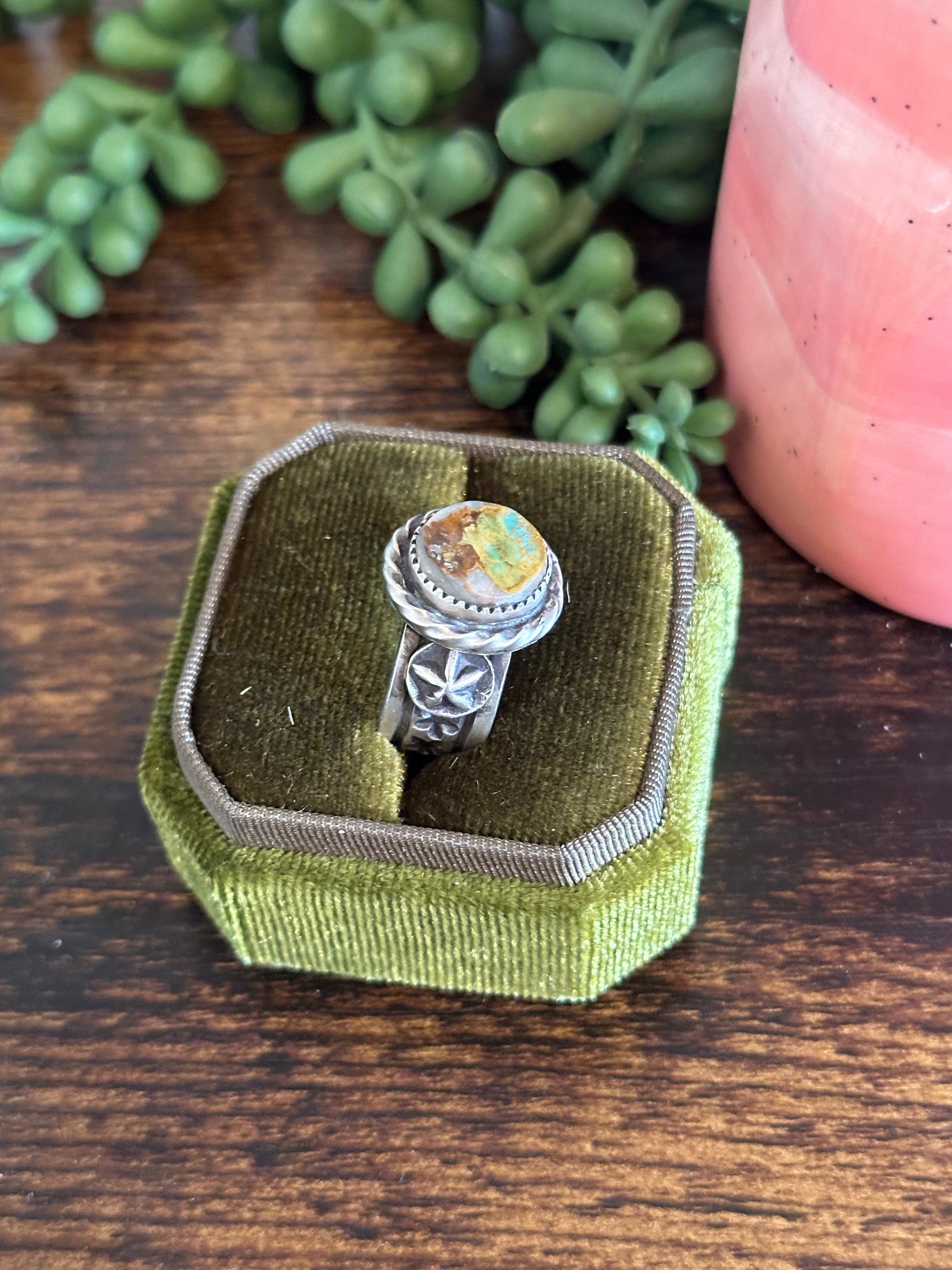 Chris Etsitty Royston Turquoise & Sterling Silver Ring Size 6.5