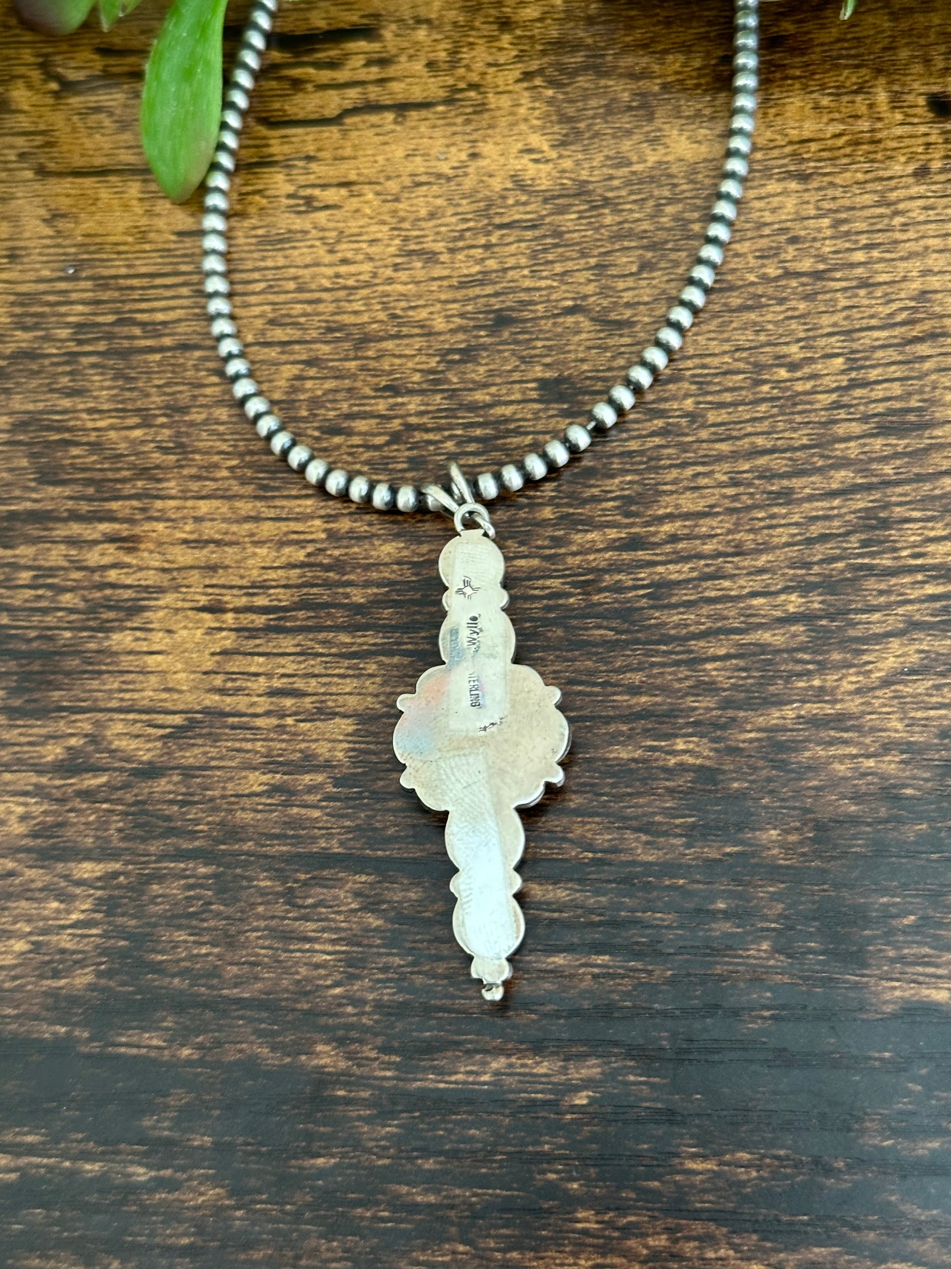The most stunning pendant, very well made. Chris Wylie Turquoise & Sterling Silver Pendant. It measures 2 5/8 inches long and 3/4 of an inch wide. Pendant Only. Signed by the artist and stamped sterling silver.