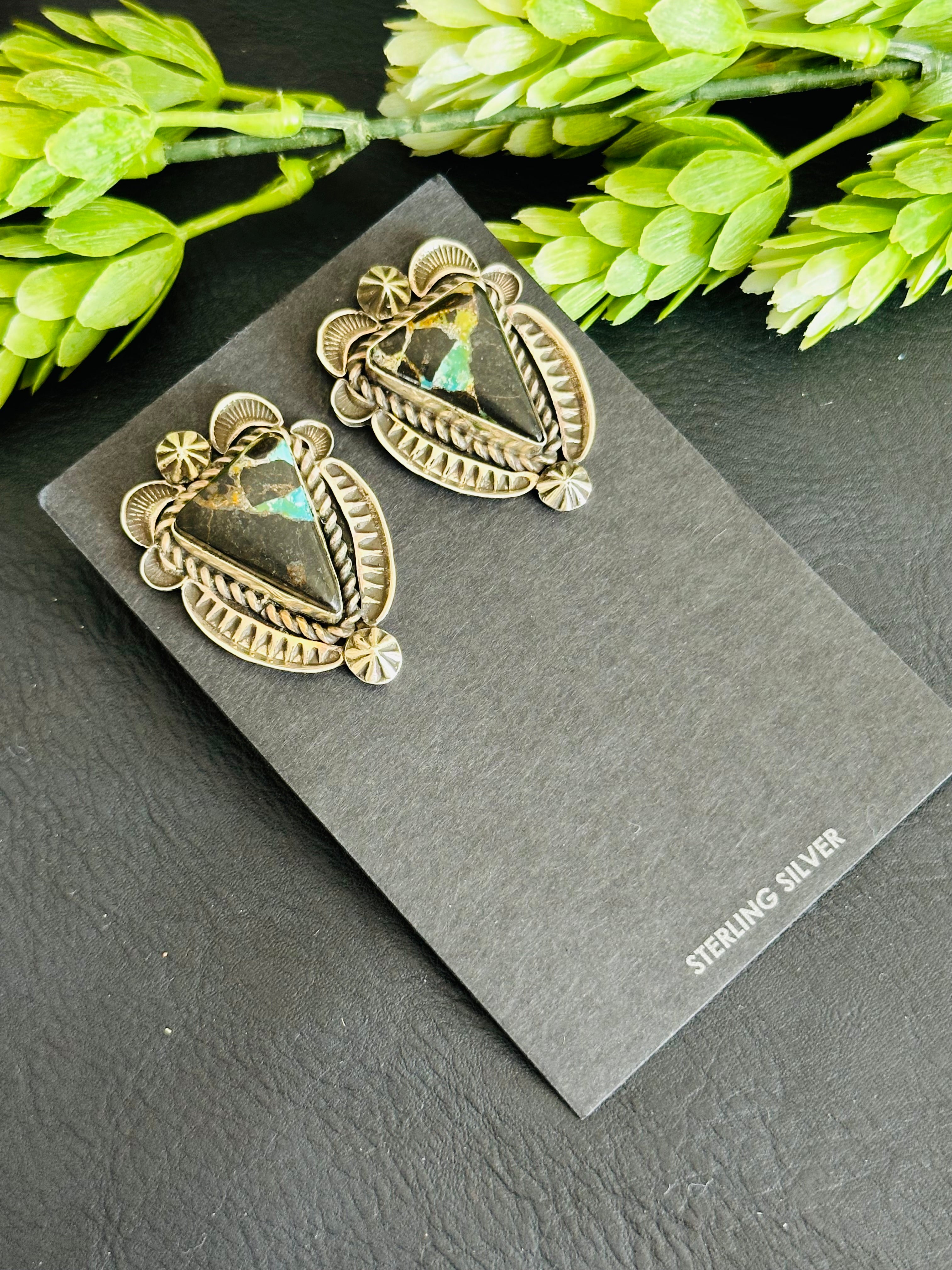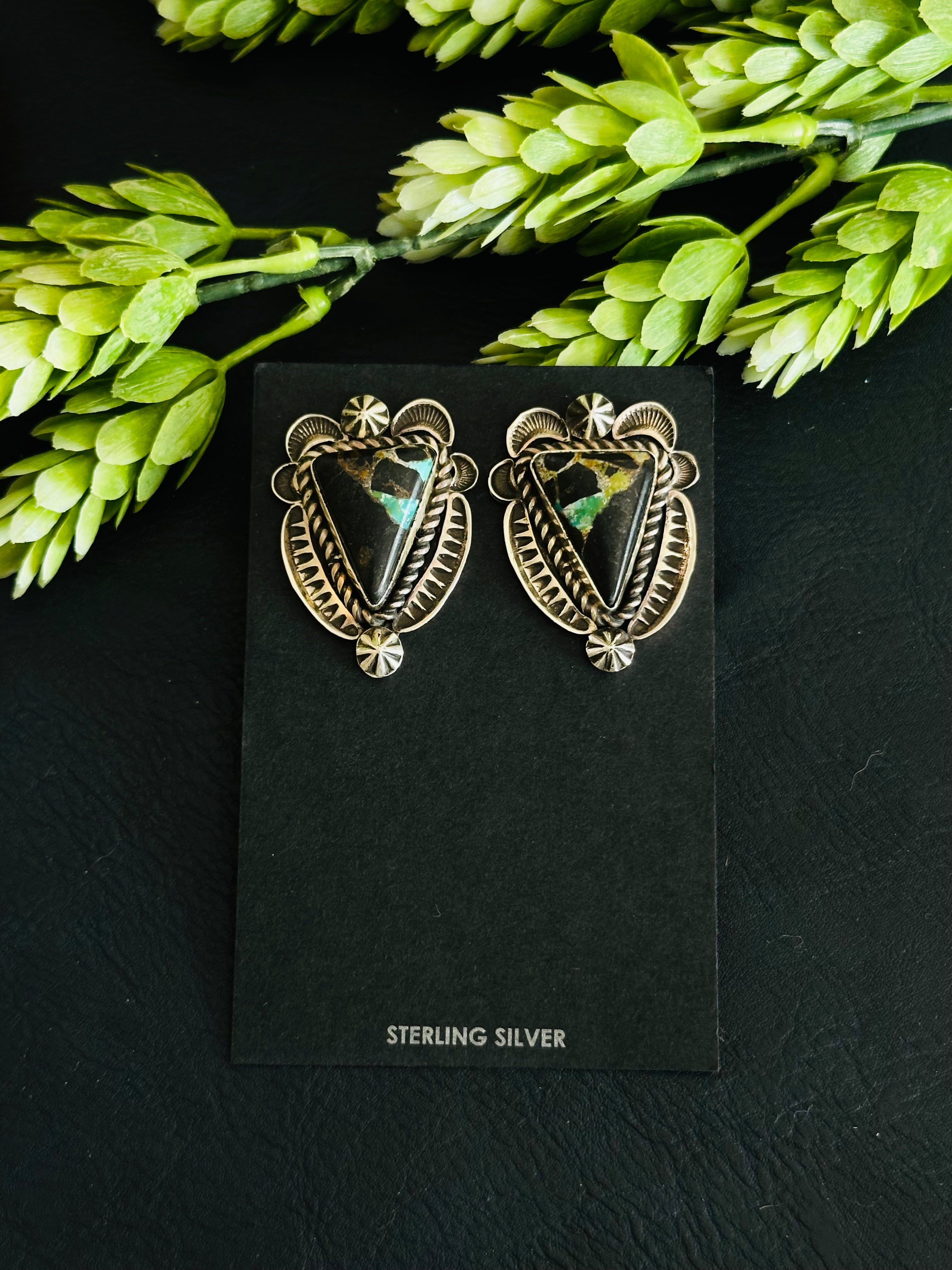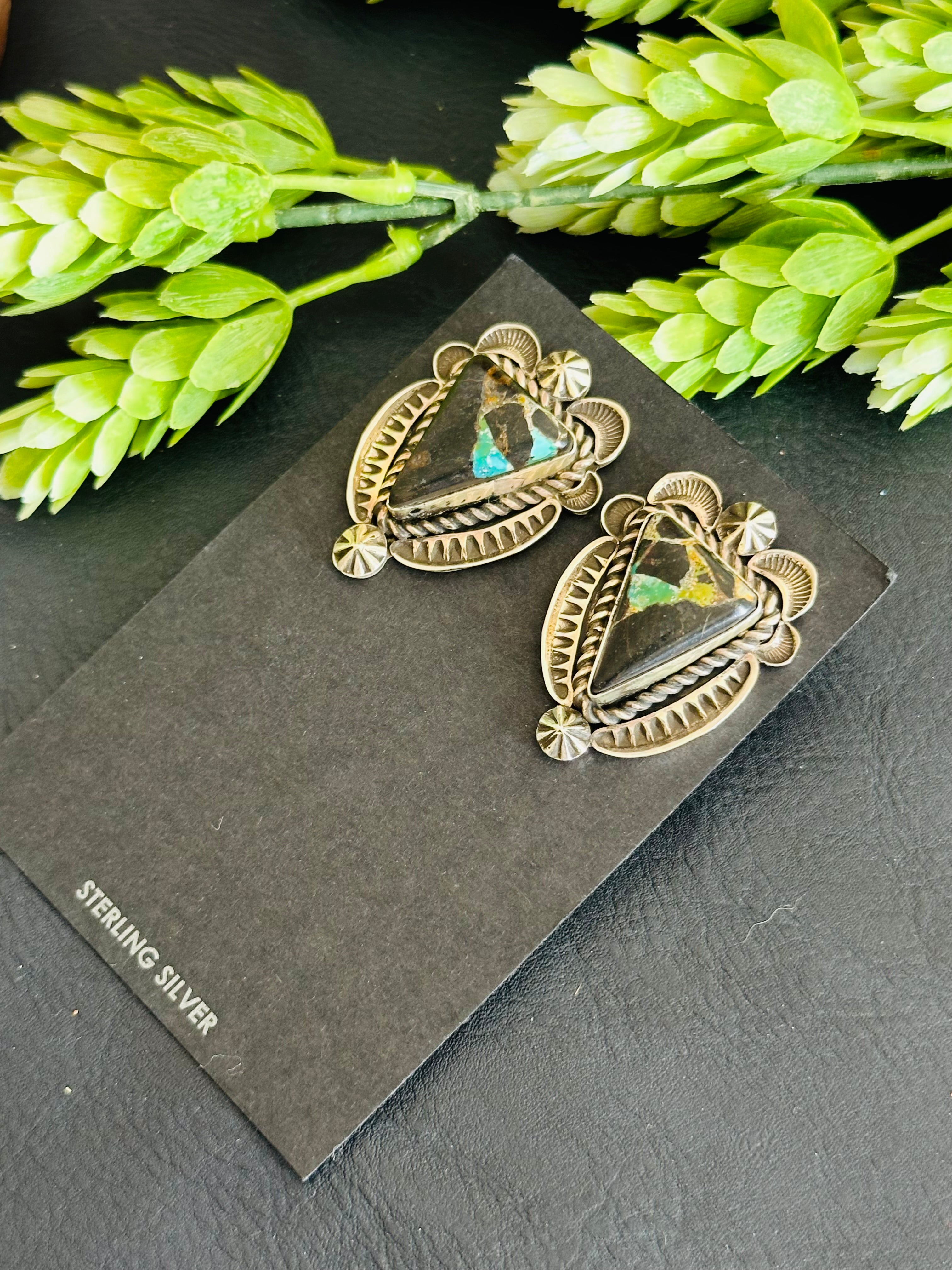 Alex Sanchez Black Jack Turquoise & Sterling Silver Post Earrings