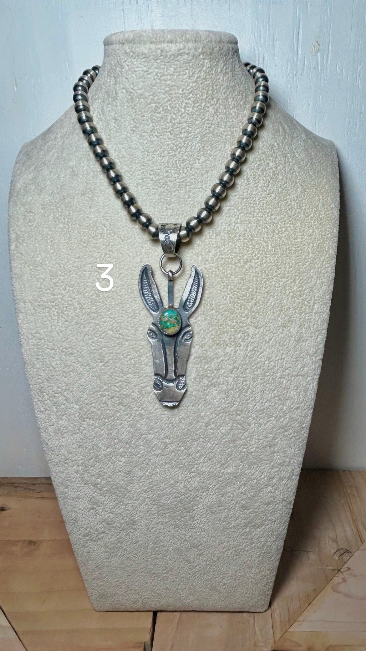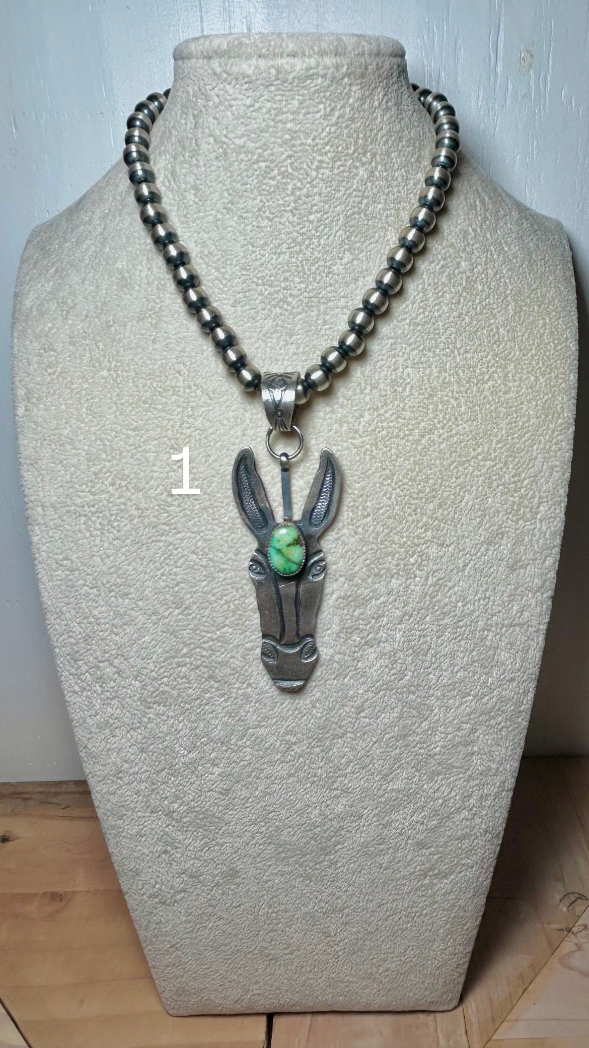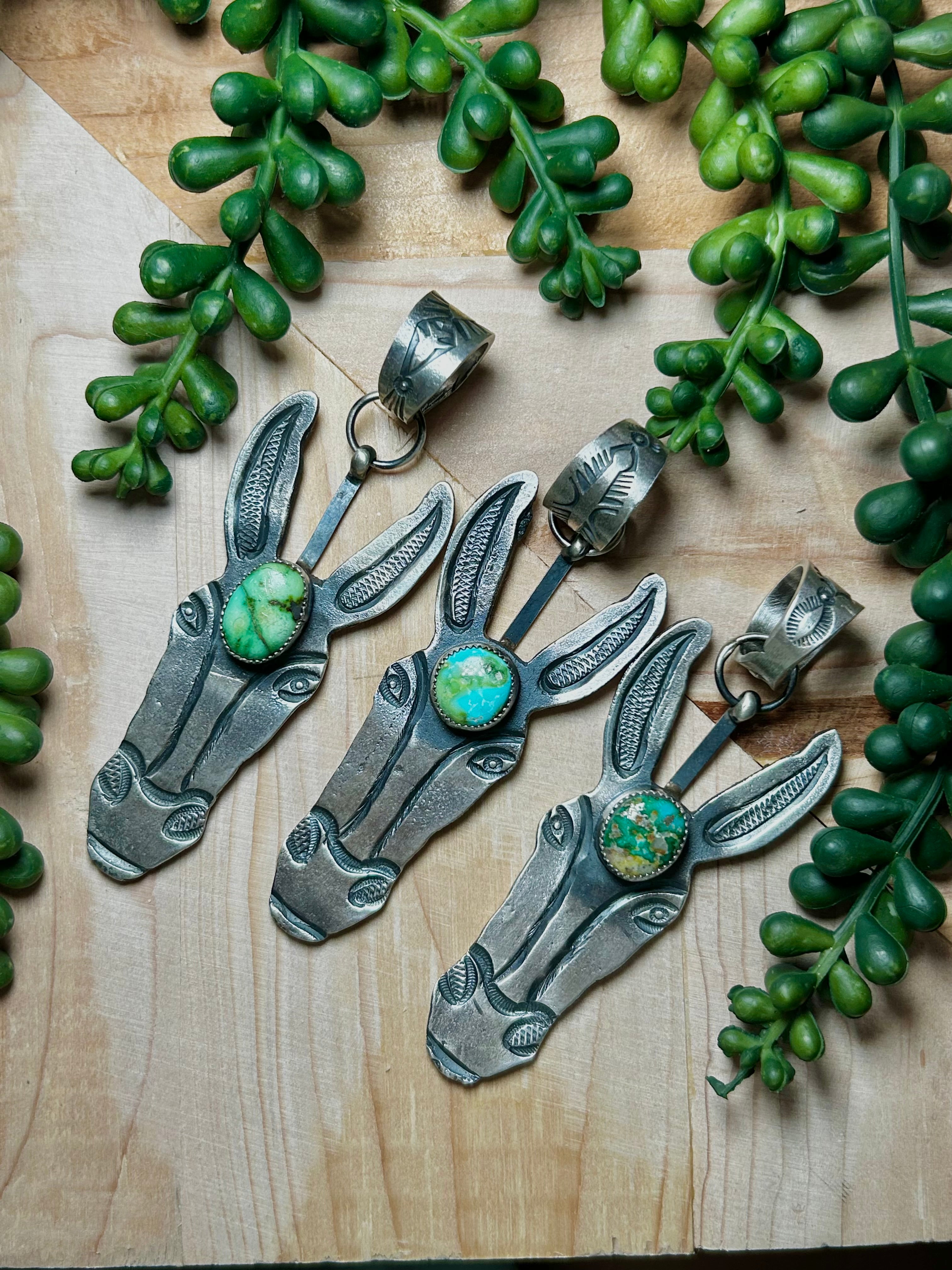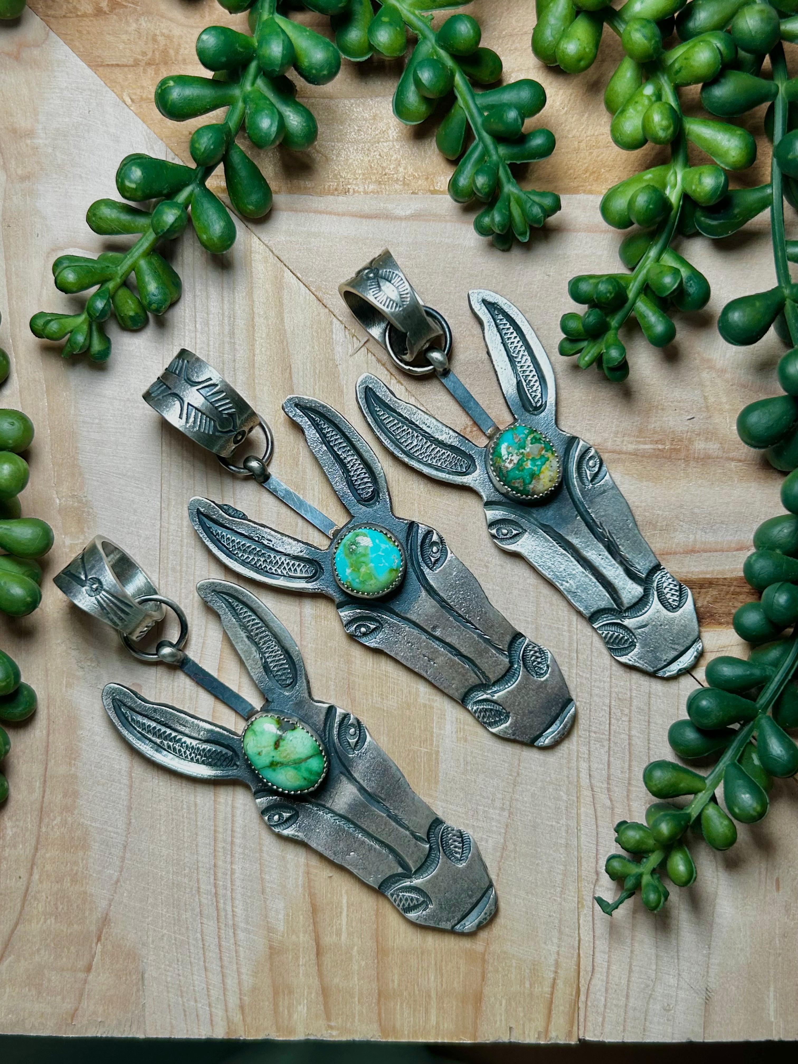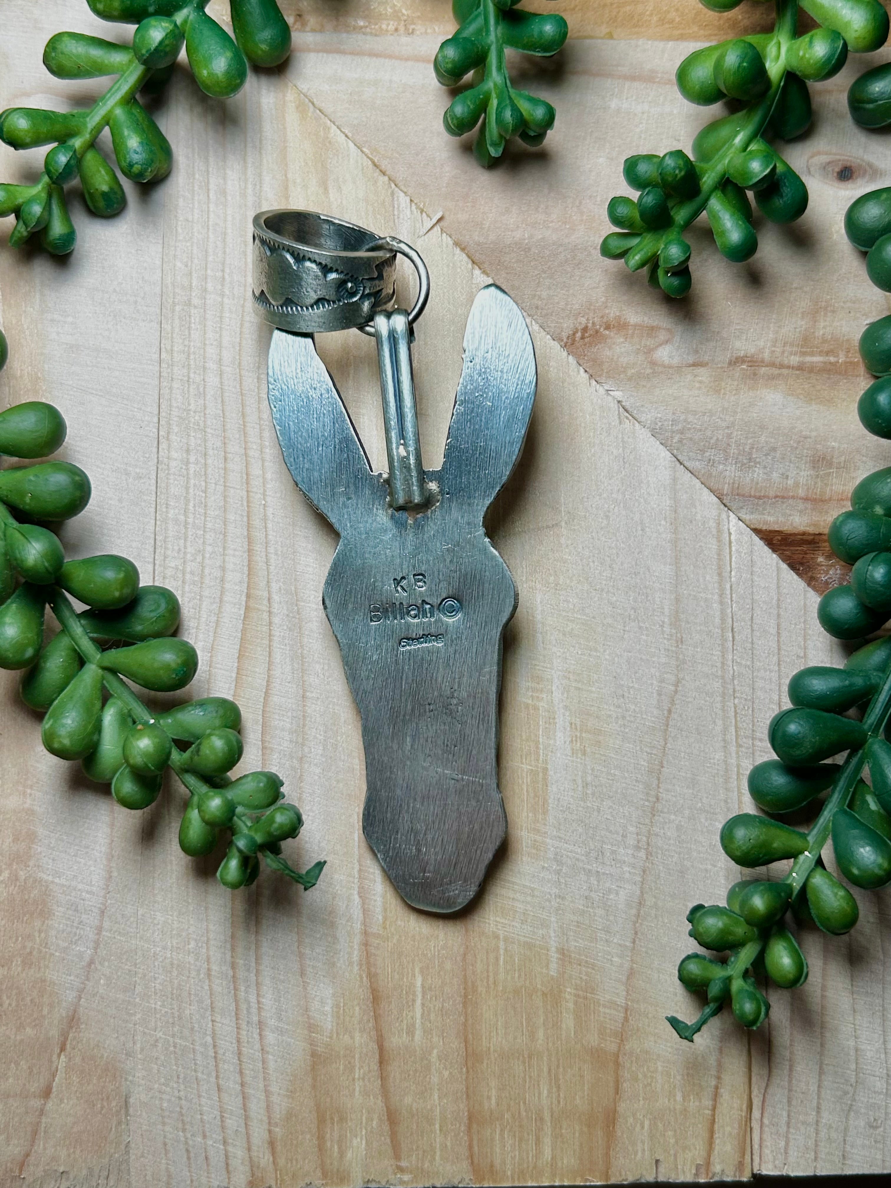 Kindale Billah Sonoran Gold Turquoise & Sterling Silver Pendant. It measures 3 3/4 inches long and 1 1/8 inches wide. Signed by the artist and stamped sterling silver.