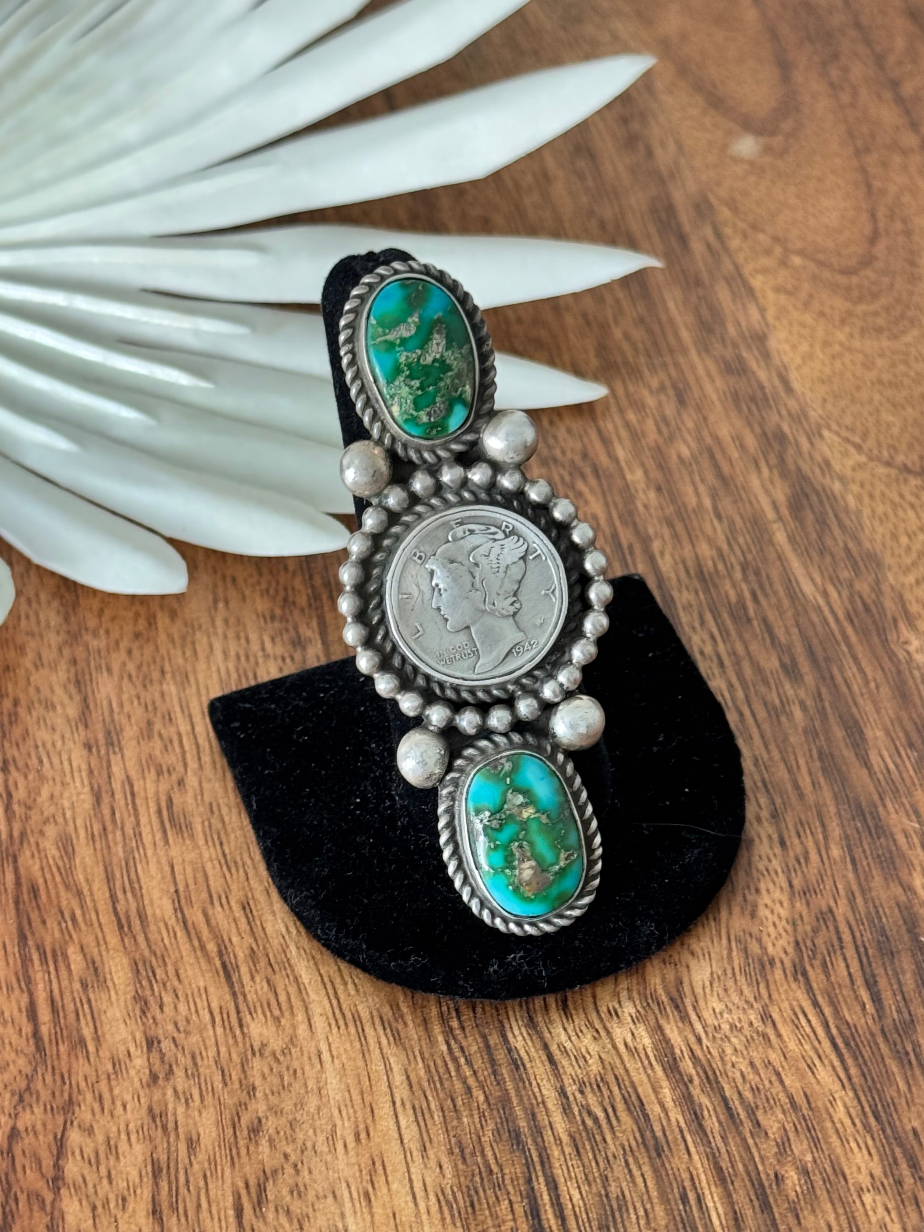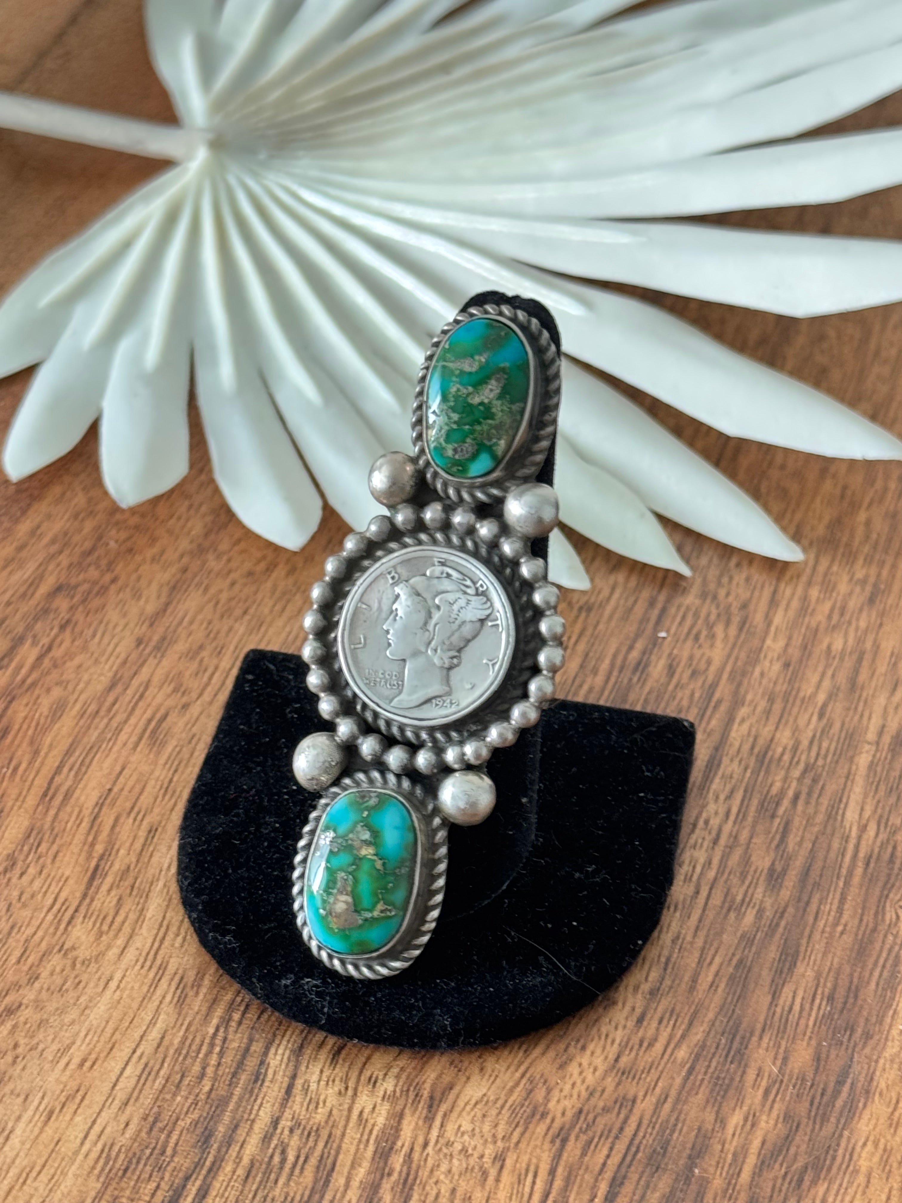 Alex Sanchez Sonoran Mountain Turquoise & Sterling Silver Adjustable Liberty Coin Ring
