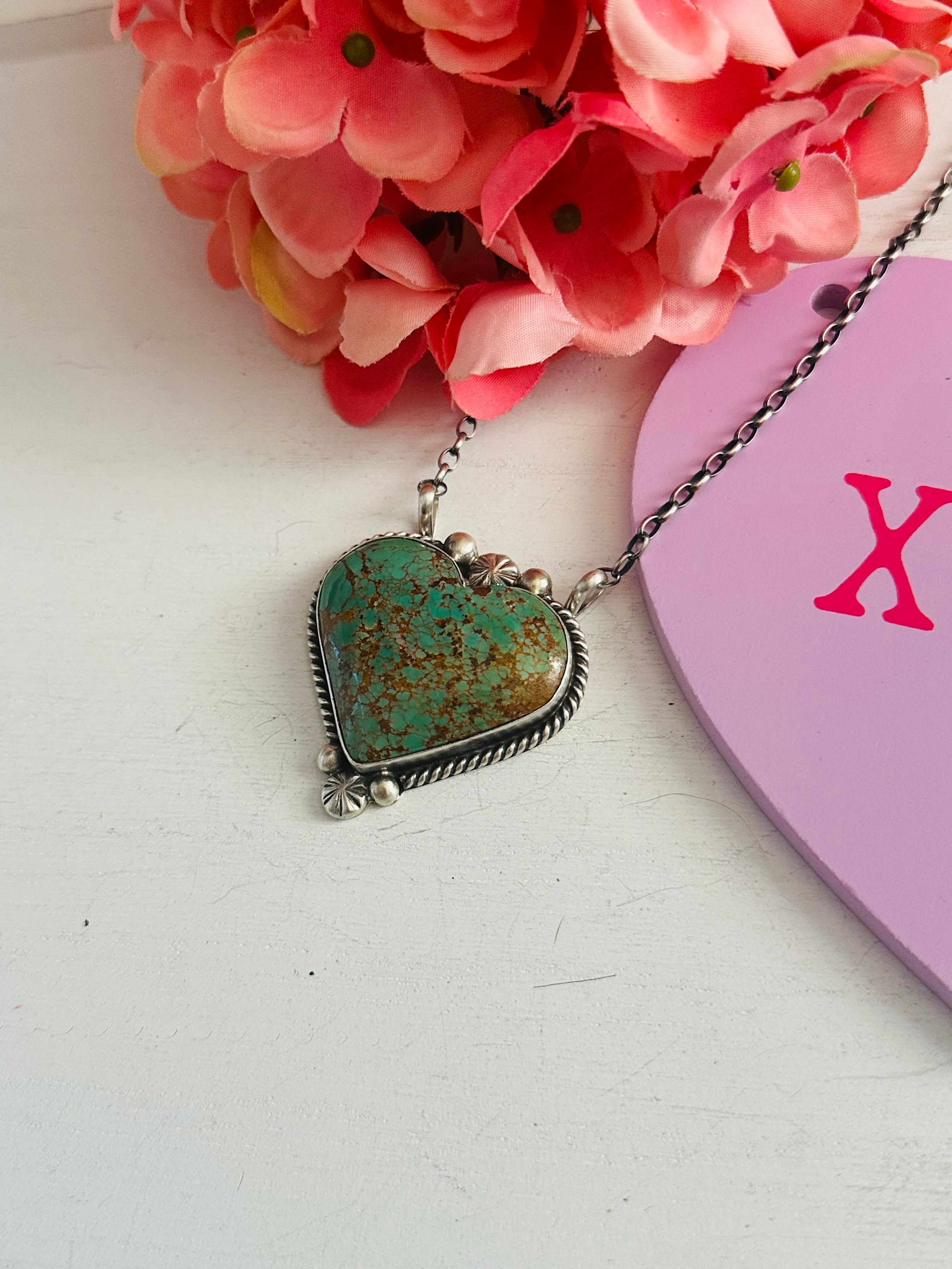 Alfred Martinez Kingman Turquoise & Sterling Silver Heart Necklace